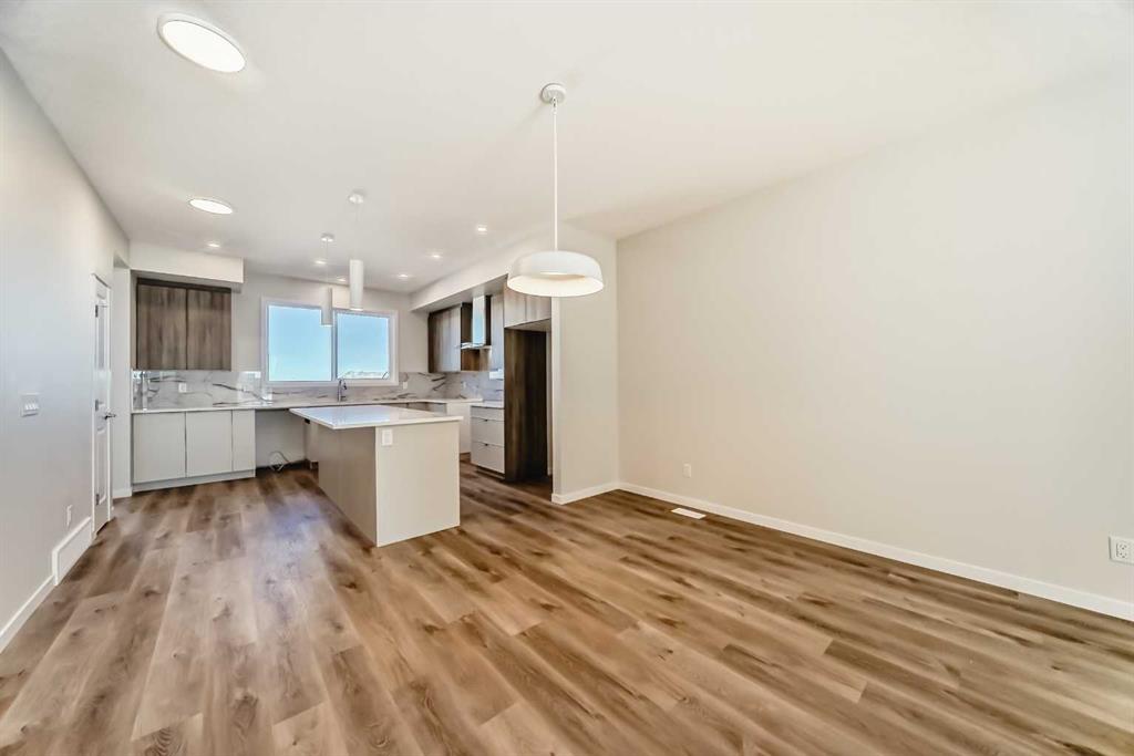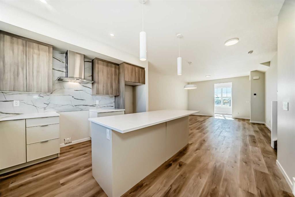 Welcome to the Heath, a thoughtfully designed 1,686 sq ft two-storey home that offers style, function, and space for the whole family. Situated on a sunshine lot with a garage-ready 20’ x 21’ concrete parking pad, this home ready for possession! This home comes with premium features like Hardie board siding, which is known for its durability and low maintenance. Hardie Board is resistant to fire, moisture, and pests, it’s a smart investment that protects your home while looking great for years to come. Inside, you'll find 3 bedrooms, 2.5 bathrooms, and a layout that blends open-concept living with modern finishes. The main floor showcases spindle railing, knockdown ceiling texture, and an upgraded rear L-shaped kitchen that is as functional as it is beautiful. Highlights include quartz countertops, pot lights, a chimney-style hood fan, built-in microwave, and an extra bank of drawers for added storage. The stunning two-tone cabinets elevate the design, while the open dining and living space are perfect for entertaining. The main floor even has a handy flex room perfect for a home office! Upstairs, the primary suite features a tile-to-ceiling shower surround in the ensuite, quartz counters, and a spacious layout. Two additional bedrooms and a full bathroom complete the upper level, along with convenient laundry access. This home also includes a separate side entrance and 9' foundation wall height—ideal for future basement development, it even has a wet bar rough-in! Additional features include an exterior gas line for a future BBQ—making it easy to enjoy sunny days outdoors and backyard gatherings. Located in a growing, family-friendly community with easy access to parks, schools, and amenities, this home combines value and quality in one exceptional package.