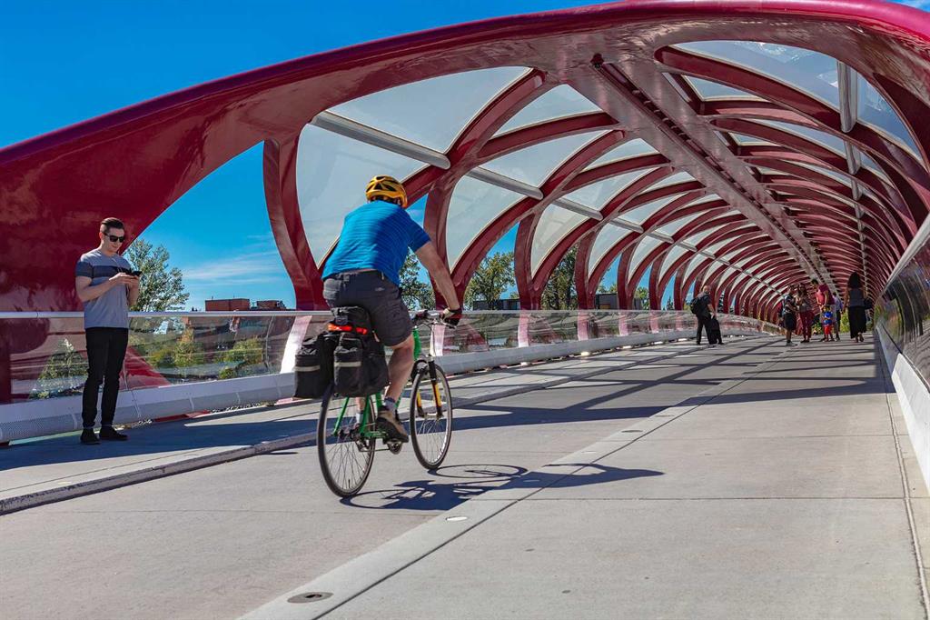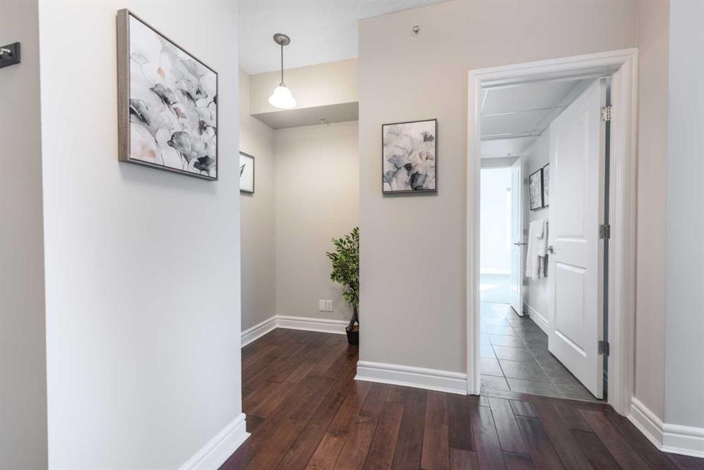 Sophisticated urban condo living is yours in this freshly painted, bright & stylish, very desirable, 2 bdrm + den/2 full bath, south east CORNER, CITY VIEW suite, wrapped in windows, at Five West – one of Calgary’s PREMIER executive condo buildings. You’ll be impressed with the hardwood floors throughout the main living areas and the efficient floor plan as soon as you walk in – spacious front entry with den space, great sized kitchen with luxurious granite counters, sleek stainless steel appliances and lots of cabinets, dining area with glass door to the south facing balcony with gas BBQ line, cozy corner gas fireplace in the living room all surrounded in windows! Primary bedroom offers lots of space to easily accommodate a king-sized bedroom, walk in closet and 4 pc main ensuite. Second bedroom, set apart from the primary, offers a cheater ensuite bath - so convenient for a room mate or guests. The abundance of natural light throughout the suite is truly memorable! There is of course central air conditioning, an in-suite laundry room with extra storage area, extra storage locker and one titled parking stall is included. Five West building amenities incl. concierge service (so nice!), owners lounge, car wash bay & indoor visitor parking for when friends stop by for a drink or dinner. The location is superb, an easy walk to your DT work, restaurants & coffee shops, 2 blocks from the LRT free downtown zone. The river pathway is a block away for a walk, jog or bike ride at the end of the day or to enjoy your weekend, and just across the bridge is the vibrancy of all Kensington has to offer. This suite is move in ready - Call to view today!