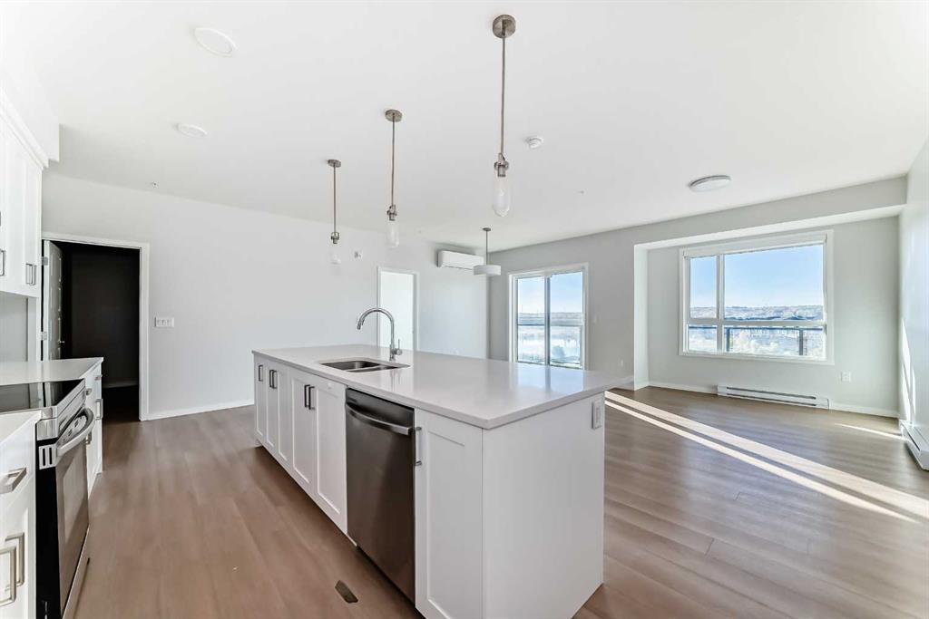 HUGE PRICE REDUCTION! Welcome to Riverstone Manor in Cranston! Discover luxury condo living in the heart of one of Calgary’s most desirable southeast communities — Riverstone in Cranston. This beautifully designed southwest-facing unit offers 3 bedrooms, 2 bathrooms, and over 1,187 sq. ft. of stylish living space. Step inside to an inviting open-concept layout with 9-ft ceilings, Low-E triple glazed windows, and modern finishes throughout. The chef-inspired kitchen showcases full-height cabinetry, quartz countertops, stainless steel appliances, pot & pan drawers, and an oversized island perfect for entertaining. The bright living and dining areas open onto a sunny south-facing balcony with unobstructed views of the scenic wet pond and a BBQ gas line for outdoor enjoyment. The spacious primary suite features a walk-in closet and a luxurious ensuite with dual vanities and a stand-up shower. Two additional bedrooms offer versatility for guests, family, or a home office. Additional highlights include in-suite laundry, a titled underground parking stall, bike storage, and Hardie board siding for long-lasting quality. Located just steps from the Bow River pathways, parks, and Cranston Resident’s Association amenities, this pet-friendly complex combines nature, convenience, and elegance — all in one perfect package.