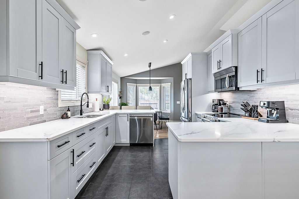 Luxury Living with Exceptional Versatility – A Rare Opportunity Welcome to this beautifully appointed bungalow, where style, comfort, and functionality come together in perfect harmony. Designed to impress, this spacious home offers elegant living on the main level and a thoughtfully designed illegal suite in the walk-out basement — ideal for multigenerational living, guests, or supplementary income. Main Floor Elegance: vaulted ceilings and a stunning gas fireplace anchor the sophisticated family room. Open-concept kitchen and dining area with seamless access to a large, elevated deck complete with a gas BBQ hookup. The chef’s kitchen is a standout feature, complete with professionally painted cabinetry, newer upgraded stainless steel appliances, rich quartz countertops, under-cabinet lighting, a large peninsula with seating, and direct access to the expansive deck with a gas BBQ hookup perfect for indoor/outdoor living. Three generously sized bedrooms offering comfort and privacy, Main floor laundry for added convenience, Integrated surround sound system throughout , Central air conditioning for year-round comfort Outdoor Excellence: Impressive 28' x 26' heated double garage with hot water in-floor heating, 220V power, built-in shelving, and cabinetry. A dream for hobbyists or car enthusiasts. Additional parking beside the garage, perfect for an RV, boat, or multiple vehicles Private yard with direct access from the deck, ideal for entertaining or relaxing in peace. Lumenox custom exterior lighting enhances both curb appeal and security. Walk-Out Lower Level: Large family room that can serve as part of the main home or be closed off for suite privacy. Beautifully finished illegal one-bedroom suite with private access from both inside and outside. Full kitchen, open-concept living and dining area, spacious bedroom, modern bathroom, and private laundry. Enjoy the comfort of hot water in-floor heating throughout the basement. Noteworthy Upgrades: New furnace and HRV unit (2023). New hot water tank (2025). Water softener system. This is more than a home — it's a lifestyle. With premium finishes, extensive upgrades, and a flexible layout tailored for modern families or those seeking a luxurious investment opportunity, this property truly stands out.