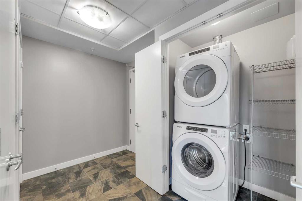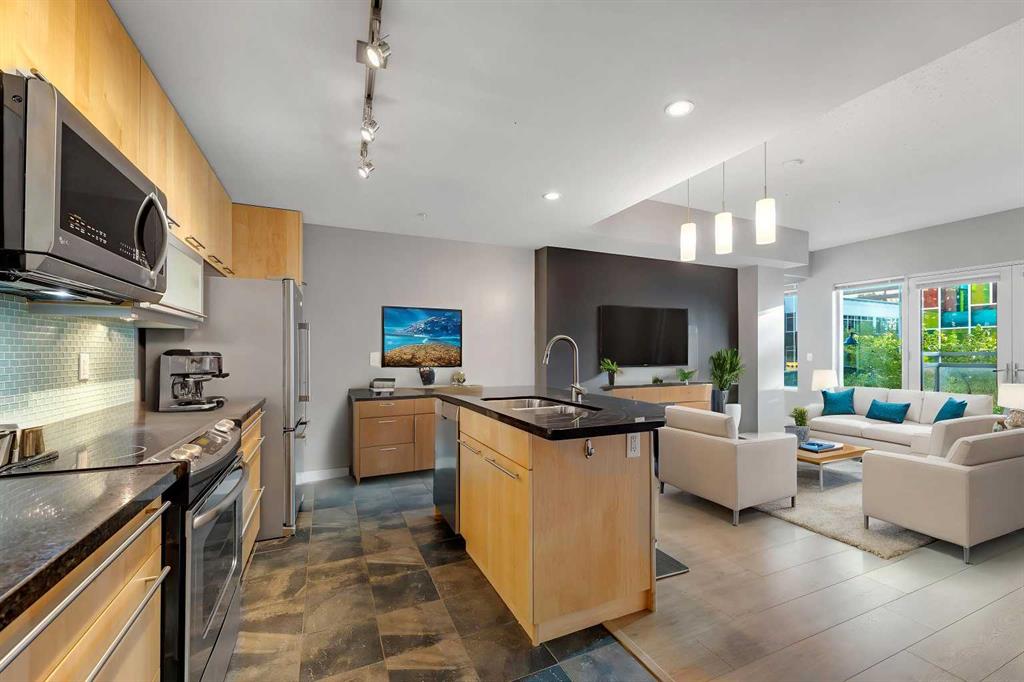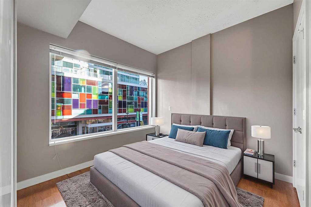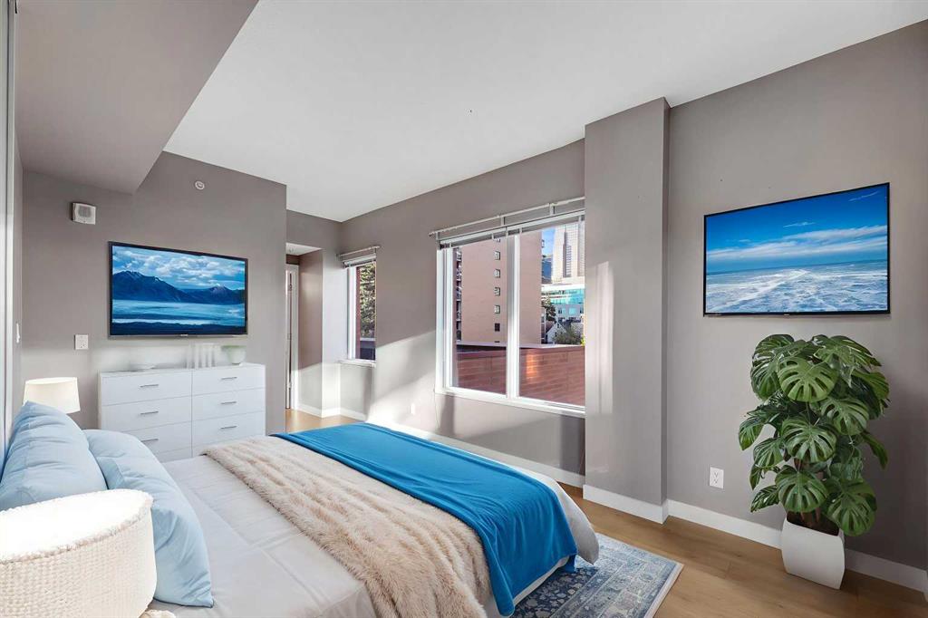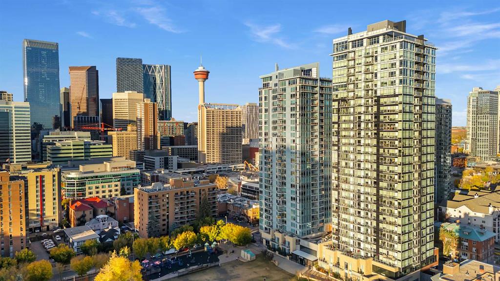 Welcome to Union Square, one of the Beltline’s most desirable addresses — perfectly positioned on 13th Avenue SW, just steps from Calgary’s best dining, shopping, and entertainment. Whether you’re strolling down 17th Ave, heading to a Flames game at the Saddledome, or meeting friends at a nearby café, this location puts you right in the heart of it all. Inside, this corner two-bedroom, two-bath condo offers nearly 900 sq. ft. of thoughtfully designed living space, combining comfort, functionality, and urban style. The open-concept layout makes the most of the natural light from floor-to-ceiling windows, with laminate and tile flooring throughout for a clean, modern look. The kitchen is the hub of the home — complete with stainless steel appliances, granite countertops with a breakfast bar, and warm maple cabinetry that provides plenty of storage. It opens seamlessly into the spacious living and dining area, perfect for hosting friends or relaxing with city views. The primary suite is privately tucked away on one side of the unit, featuring a walk-in closet and a 4-piece ensuite with modern finishes. On the opposite side, the second bedroom enjoys direct access to a 3-piece bath, which also connects to the main living area — a smart layout ideal for guests or a roommate. Additional highlights include central A/C, in-suite laundry, titled underground parking, and an assigned storage locker for convenience. Union Square is a concrete high-rise with a sleek, contemporary design, surrounded by urban parks, fitness studios, and restaurants — everything you need within a few blocks. It’s an ideal fit for downtown professionals, downsizers, or anyone looking for a low-maintenance, walkable lifestyle in Calgary’s vibrant core. Experience Beltline living at its best — stylish, convenient, and right where you want to be.