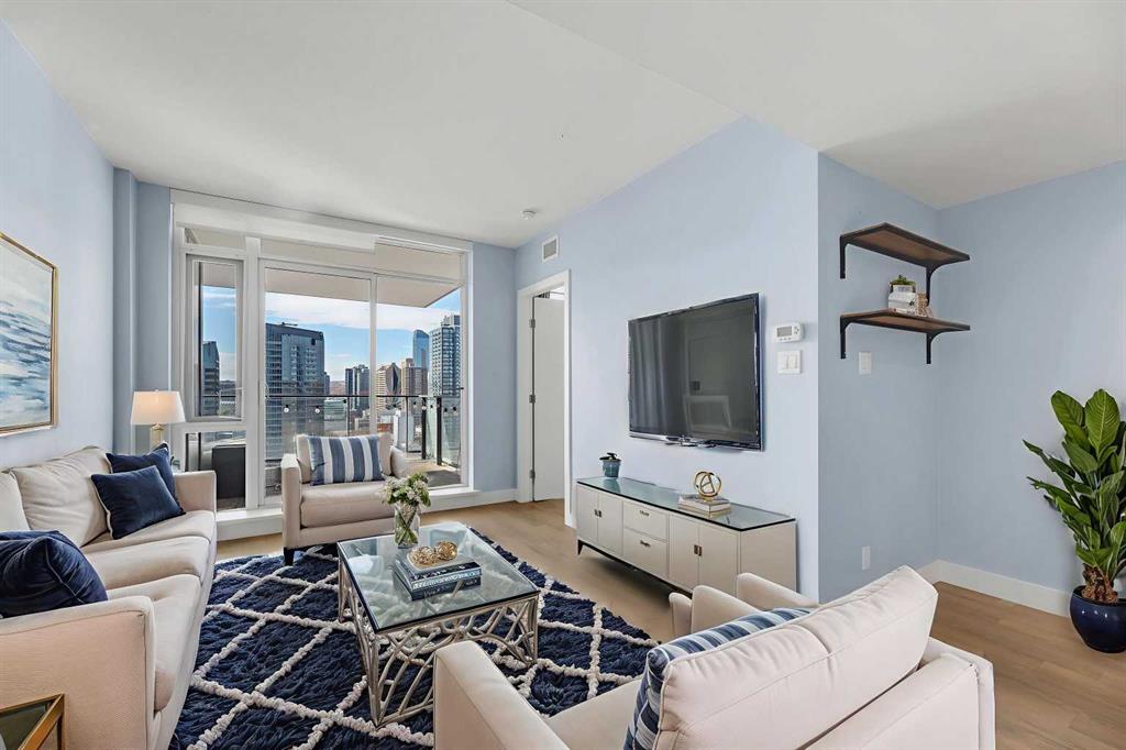 Welcome to The Guardian, one of Calgary’s premier high-rise addresses in the heart of the Beltline — where modern design meets unbeatable downtown convenience. This bright and stylish 1-bedroom, 1-bathroom condo offers over 500 sq. ft. of well-planned living space, ideal for young professionals, first-time buyers, or anyone who loves being close to the action. Step inside and you’ll find an open-concept layout with sleek laminate flooring, a bright neutral palette, and floor-to-ceiling windows that frame incredible views of the downtown skyline and Stampede Park. The kitchen features designer white cabinetry, quartz countertops, stainless steel appliances, and a central island that’s perfect for casual dining or entertaining friends. The living area flows easily out to a private balcony with a gas line for BBQs — the perfect spot to unwind and take in those big-city views. The bedroom is spacious and filled with natural light, complete with a walk-through closet and easy access to a stylish 4-piece bathroom. In-suite laundry and titled underground parking add everyday convenience. Living at The Guardian means more than just a great condo — it’s a lifestyle. Enjoy top-notch building amenities including a state-of-the-art fitness centre, owner’s lounge and social room, concierge service, workshop, and secure bike storage. Whether you’re hosting friends in the lounge, getting a workout in before work, or heading out to explore, everything you need is right here. If you’re looking for a well-designed condo in a building that offers it all — from unbeatable amenities to one of the best downtown locations — The Guardian delivers. Steps from the Stampede, Saddledome, 17th Ave, and the city’s best dining and entertainment, this is urban living done right. Schedule your private showing today and experience it for yourself.