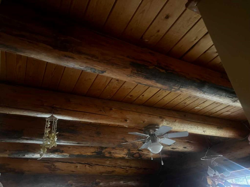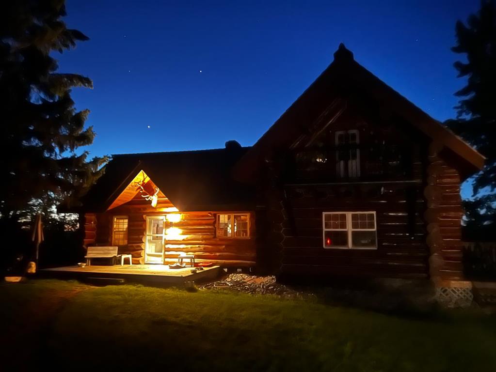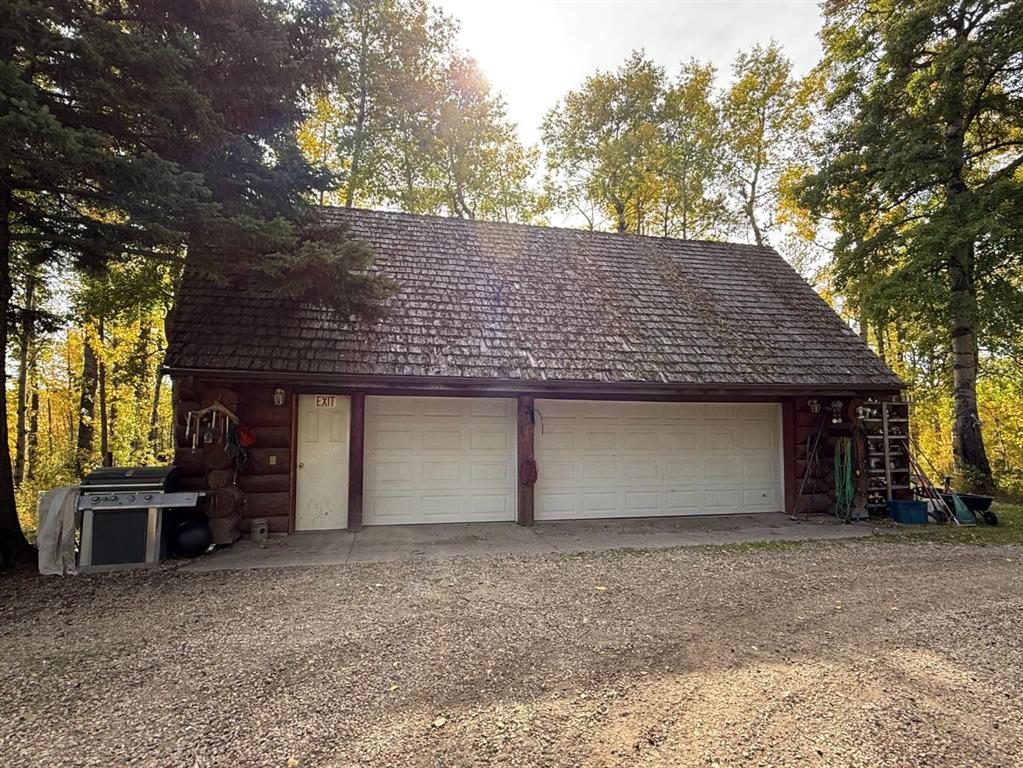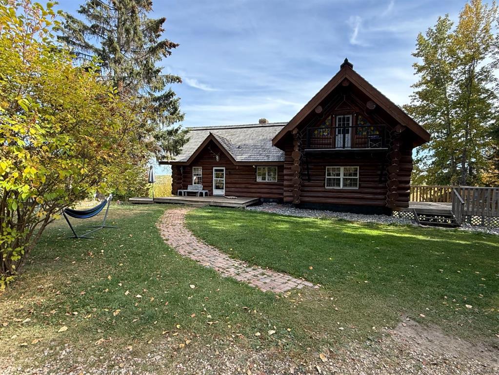 Discover the perfect blend of rustic charm and modern comfort in this stunning 1½ storey log home, set on over 14 private, treed acres. With 5 bedrooms, 3 bathrooms, and nearly 2,000 sq. ft. above grade plus a large walkout basement, this home is ideal for those seeking space, character, and connection to nature. The main floor welcomes you with a spacious entryway that immediately showcases the home’s rich wood beams, warm log details, and hardwood floors. The living room features a classic brick wood-burning fireplace, while the adjoining sunroom offers interchangeable screen/glass panels for year-round enjoyment. A functional kitchen with maple cabinets, stainless steel appliances, and an interior gas BBQ with rotisserie flows into a bright dining area with access to the outdoors. Two bedrooms and a full 4-piece bath complete this level. A striking circular staircase leads to the upper level, where you’ll find two more large bedrooms—each with steel frame–reinforced private decks—and a 3-piece bathroom. The walkout basement adds incredible living space, featuring a large family room with a second wood-burning fireplace, patio doors to the lower deck, and a spacious primary suite complete with a huge 4-piece ensuite with soaker tub and walk-in closet. This home offers thoughtful updates and meticulous maintenance, including: New boot room flooring Newly installed rock siding and parging Brand new front weeping tile (June 2025) Chimneys cleaned (May 2025) Gas lines inspected (July 2025) New window in master and main-floor bedroom 2 sides of the house freshly stained New deck with concrete block supports Septic cleaned (Aug. 2025) New exterior light fixtures (Aug. 2025) New dishwasher (2023) Enjoy modern comforts with two furnaces, water softener, 5G/Starlink internet, and plenty of storage options, including a 32’ x 22’ heated garage with usable loft, plus two storage sheds. Outdoor enthusiasts will love the 2+ acre dog run, biking trails, chicken compound, and dual well access. Gas is prepaid to anywhere on the property. Rail fencing, rails, and cattle gates are negotiable. Two C-Cans are excluded. A truly one-of-a-kind property offering space, serenity, and timeless log-home beauty — perfect for family living, hobby farming, or a peaceful country retreat.