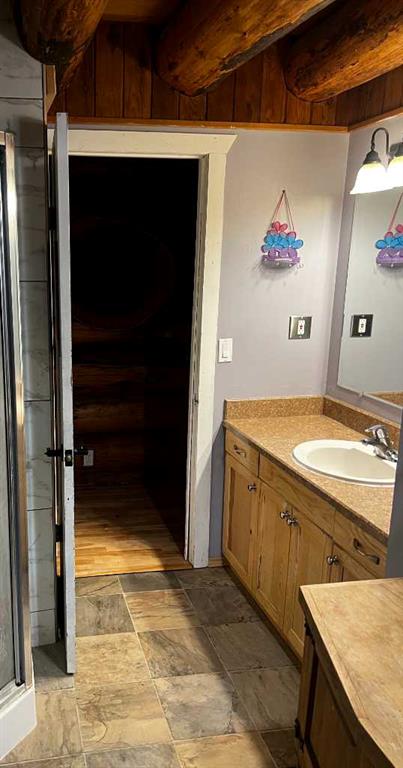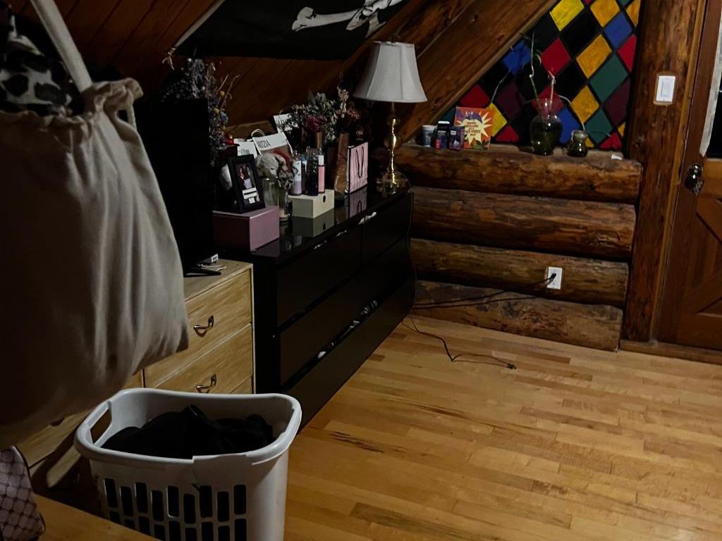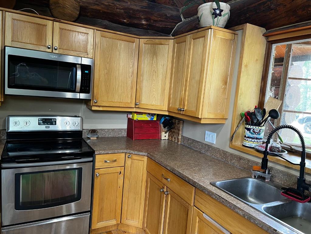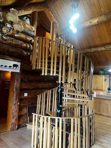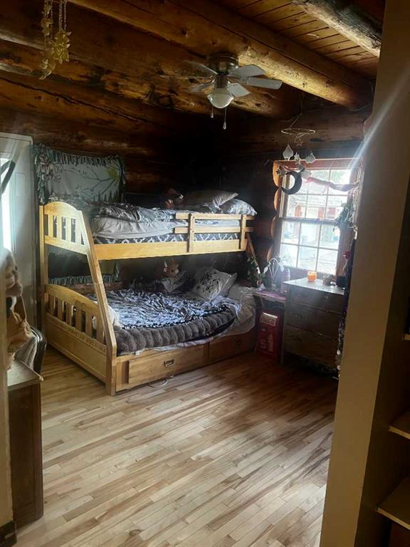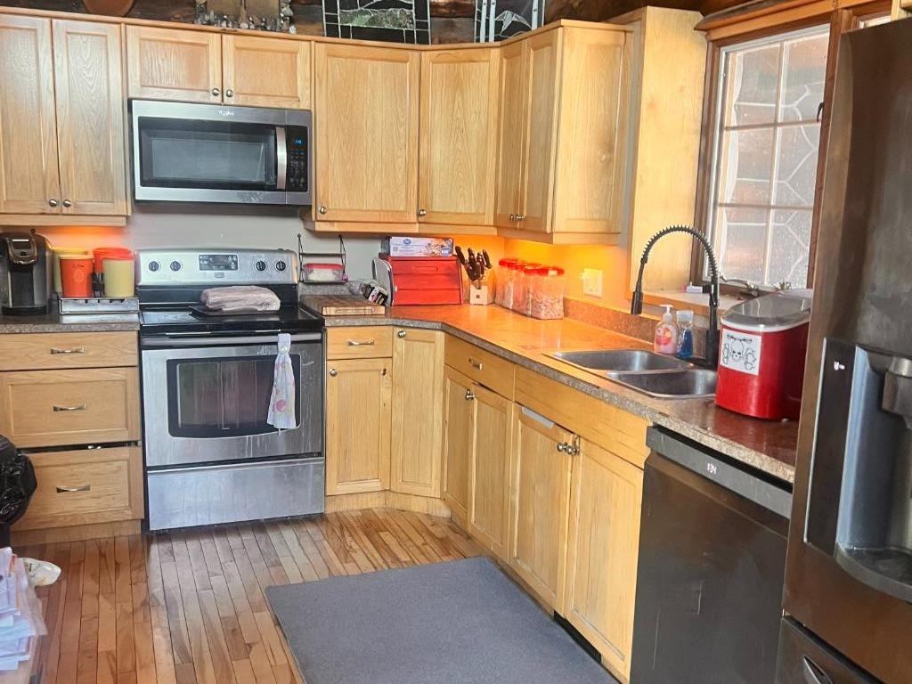 Discover the perfect blend of rustic charm and modern comfort in this stunning 1½ storey log home, set on over 14 private, treed acres. With 5 bedrooms, 3 bathrooms, and nearly 2,000 sq. ft. above grade plus a large walkout basement, this home is ideal for those seeking space, character, and connection to nature. The main floor welcomes you with a spacious entryway that immediately showcases the home’s rich wood beams, warm log details, and hardwood floors. The living room features a classic brick wood-burning fireplace, while the adjoining sunroom offers interchangeable screen/glass panels for year-round enjoyment. A functional kitchen with maple cabinets, stainless steel appliances, and an interior gas BBQ with rotisserie flows into a bright dining area with access to the outdoors. Two bedrooms and a full 4-piece bath complete this level. A striking circular staircase leads to the upper level, where you’ll find two more large bedrooms—each with steel frame–reinforced private decks—and a 3-piece bathroom. The walkout basement adds incredible living space, featuring a large family room with a second wood-burning fireplace, patio doors to the lower deck, and a spacious primary suite complete with a huge 4-piece ensuite with soaker tub and walk-in closet. This home offers thoughtful updates and meticulous maintenance, including: New boot room flooring Newly installed rock siding and parging Brand new front weeping tile (June 2025) Chimneys cleaned (May 2025) Gas lines inspected (July 2025) New window in master and main-floor bedroom 2 sides of the house freshly stained New deck with concrete block supports Septic cleaned (Aug. 2025) New exterior light fixtures (Aug. 2025) New dishwasher (2023) Enjoy modern comforts with two furnaces, water softener, 5G/Starlink internet, and plenty of storage options, including a 32’ x 22’ heated garage with usable loft, plus two storage sheds. Outdoor enthusiasts will love the 2+ acre dog run, biking trails, chicken compound, and dual well access. Gas is prepaid to anywhere on the property. Rail fencing, rails, and cattle gates are negotiable. Two C-Cans are excluded. A truly one-of-a-kind property offering space, serenity, and timeless log-home beauty — perfect for family living, hobby farming, or a peaceful country retreat.