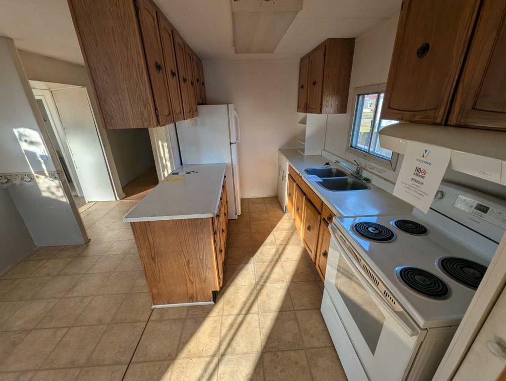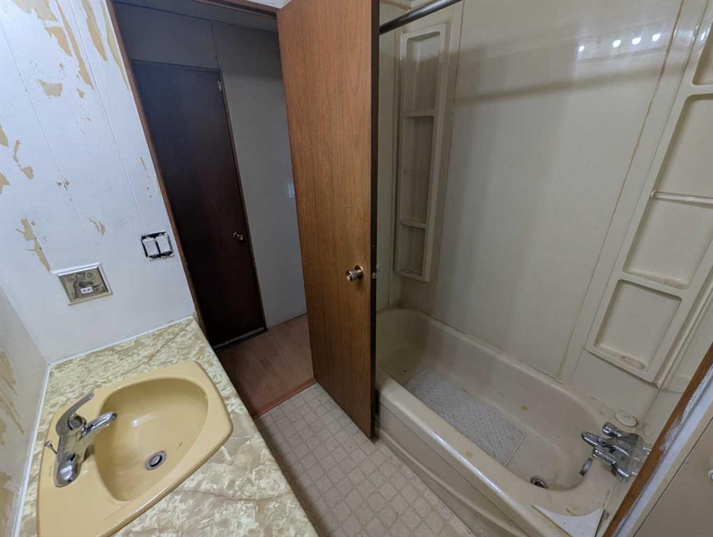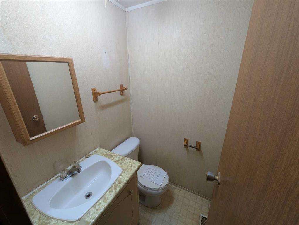 This mobile home offers great potential with 2 bedrooms, including a primary bedroom with ensuite, plus a second full 4-piece bathroom. Functional layout featuring a separate laundry room and a boot room/mudroom for added convenience. With some TLC and vision, this property could be transformed into a cozy and affordable home or revenue property.