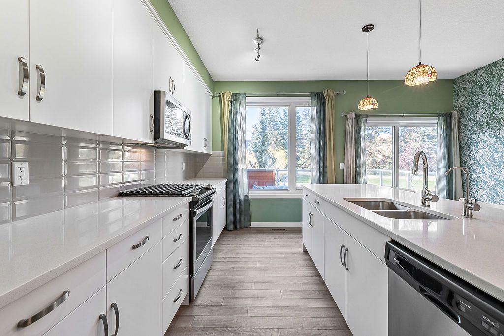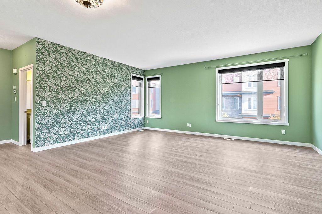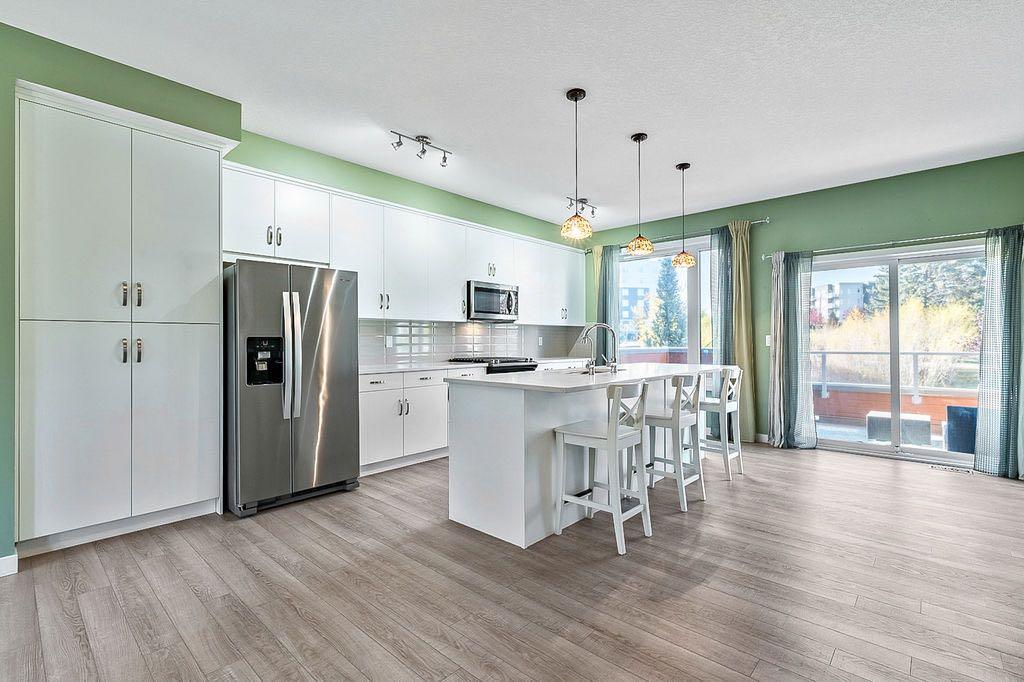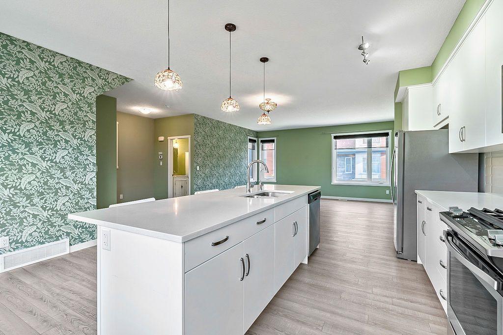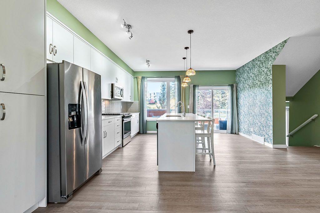 Discover this stunning 2019 townhome in the desirable Fish Creek Shawnee Park neighbourhood. This two-story, End-unit residence features an open-concept design with luxury vinyl plank flooring throughout all levels, creating a sleek and modern feel. The bright and spacious layout is perfect for entertaining, with a convenient kitchen island, central dining space, and adjoining living area. Step outside to a large balcony offering terrific views of green space and a playground — ideal for outdoor gatherings. The upper level boasts a three-bedroom layout, including a spacious master bedroom with a walk-in closet and a private three-piece en suite. A convenient laundry area is also located on this level. The modern kitchen is equipped with quartz countertops and stainless steel appliances, combining style and functionality. Additional highlights include central air conditioning for year-round comfort, and low-maintenance condominium fees that cover snow removal, landscaping, and insurance. The complex is surrounded by established amenities such as schools, Fish Creek Park, and is just a short walk to Fish Creek LRT station, making commuting a breeze. This elegant home offers a perfect balance of comfort, style, and convenience. Don’t miss your chance to make it yours!