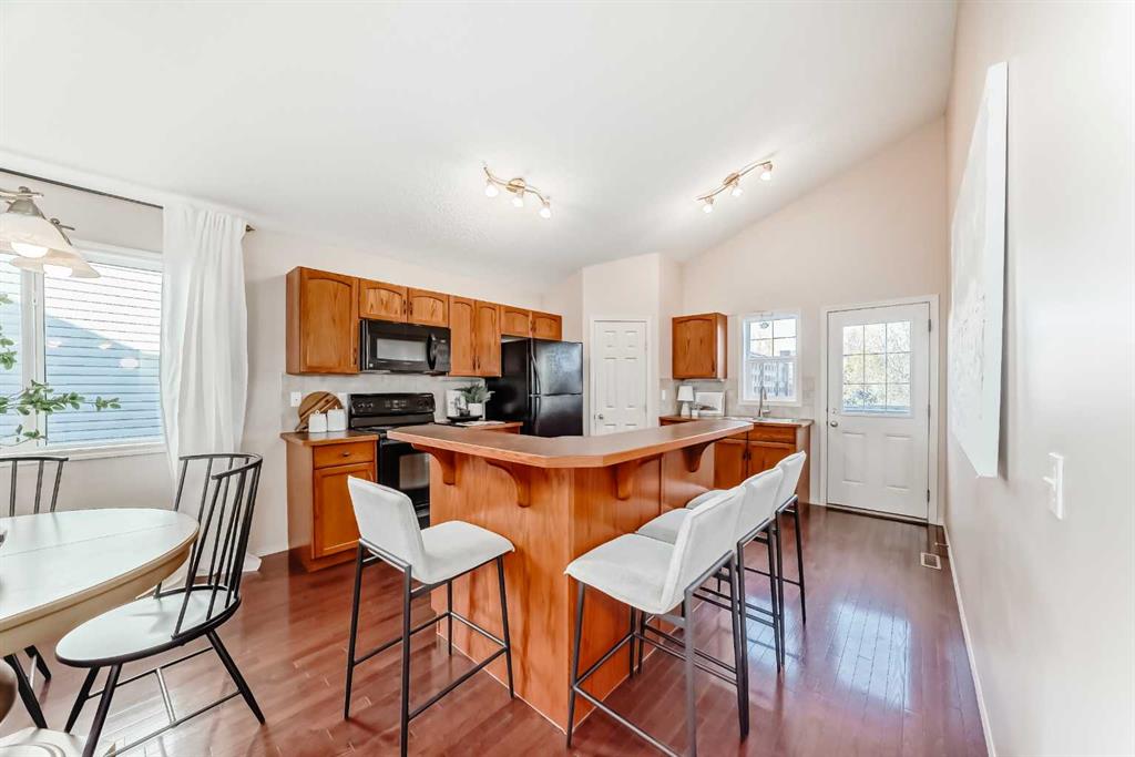 Hello Gorgeous! Welcome home to this beautifully maintained 3 bedroom, 3 bathroom property offering over 1943 sq. ft. of fully developed living space. From the moment you step inside, you’ll love the bright, welcoming atmosphere, highlighted by vaulted ceilings, hardwood floors, and an open-concept main floor designed for modern living. The inviting living room features a three-sided gas fireplace, creating a cozy ambiance that connects seamlessly to the kitchen and dining areas. The spacious primary bedroom offers a walk-in closet and four-piece ensuite, while a generous flex room on the main floor provides the perfect space for a home office, guest suite, or creative studio — the possibilities are endless! Downstairs, the fully finished basement expands your living space with a large recreation area, second gas fireplace, additional bedroom, full bathroom, laundry room, and ample storage. Step outside to your private backyard oasis with a freshly stained, two-tier deck — perfect for entertaining, barbecues, or simply relaxing. Additional features include air conditioning for year-round comfort. Nestled on a quiet, family-friendly street, this home is ideally located close to schools, parks, shopping, and Airdrie’s extensive walking path system. This home truly has it all — space, comfort, and a welcoming charm you’ll feel the moment you walk in.