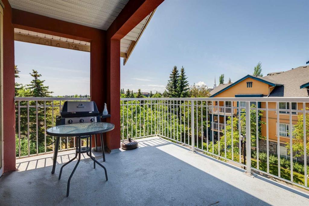 This sun-filled top floor end unit in Lincoln Park offers peace, privacy and a layout that just makes sense. With no one above you and only one shared wall, it’s a true quiet retreat in a vibrant, walkable community. Inside, warm walnut hardwood floors set the tone for the open-concept main living space, where a stylish kitchen is framed with full-height cabinets, subway tile backsplash and a peninsula breakfast bar perfect for easy mornings or casual conversation. The dining area flows effortlessly into the inviting living room, anchored by a gas fireplace and oversized windows that draw in natural light all day long. Step outside to your huge SW-facing corner balcony, covered for year-round use with tranquil mature tree views - offering the perfect setting for a quiet morning coffee or relaxed summer barbecue with friends. The thoughtful floorplan separates the two bedrooms for privacy, with the spacious primary suite featuring a walk-in closet and a 4-piece ensuite. The second bedroom is ideally on the other side of the unit, tucked beside the 3-piece bathroom, ideal for guests or roommates. A den provides the perfect space to work from home, set up a reading nook or hobby space or use for extra storage. In-suite laundry, a titled underground parking stall and a storage locker round out the everyday conveniences. This well-managed, amenity-rich building includes a fully equipped fitness centre, party room, bike storage, and a car wash bay. All of this in a prime location just steps from MRU, transit, restaurants, and shopping, whether you’re buying for yourself, your student or your portfolio, the lifestyle here is hard to beat!