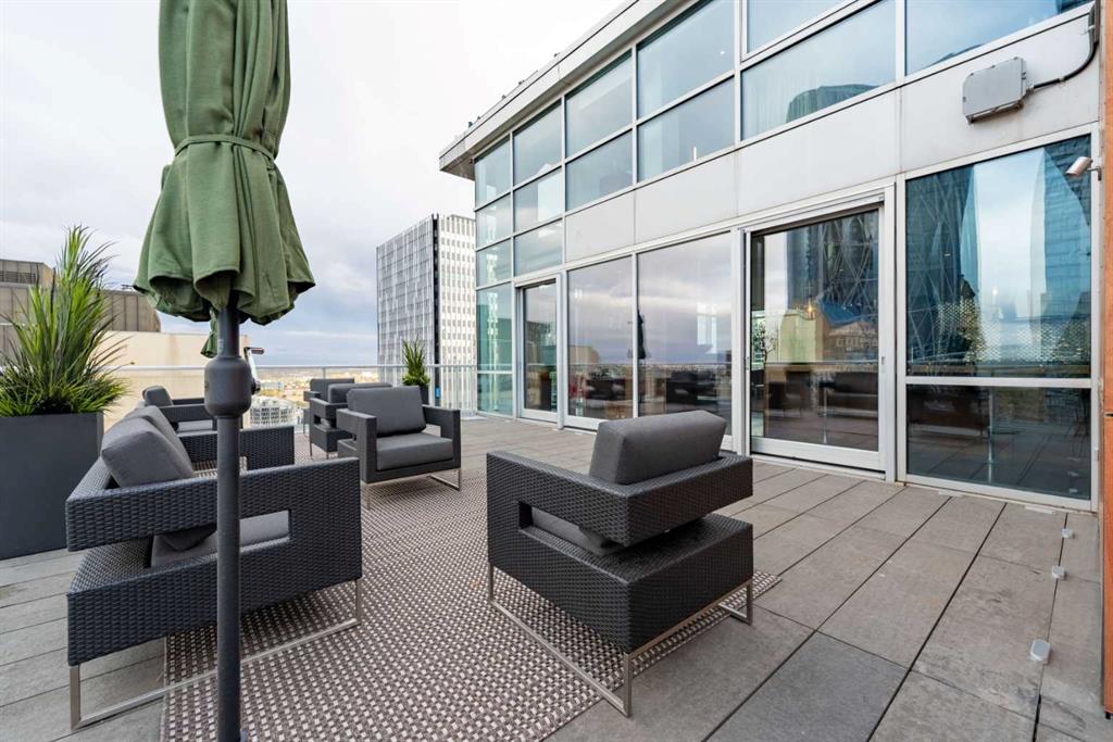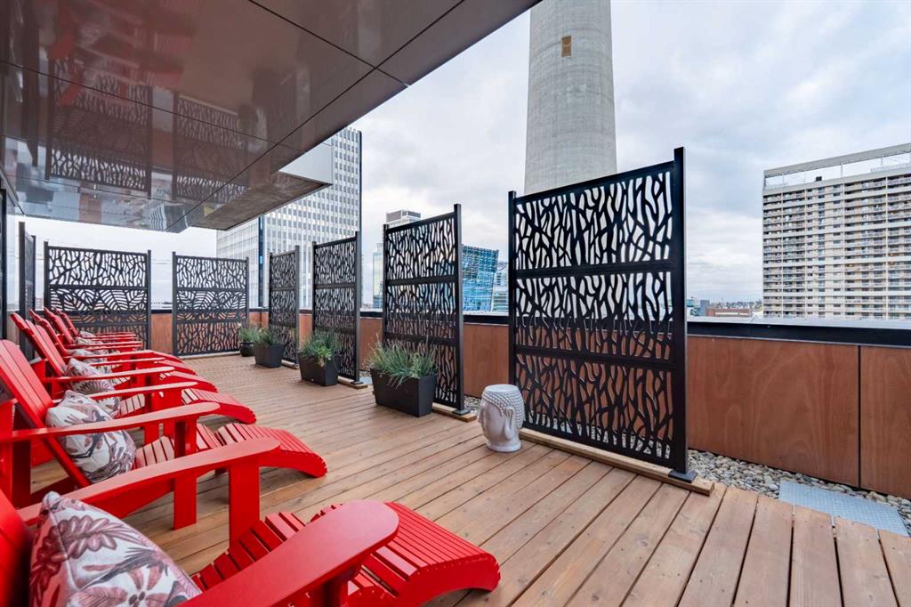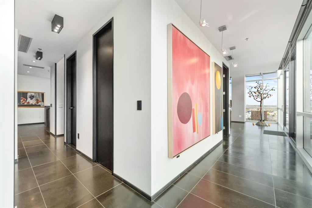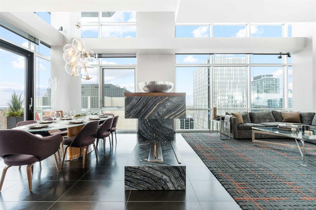 Executive Two-Story Penthouse with Expansive Downtown Views of Calgary and beyond. Showcasing breathtaking North, South and East exposure. Ideally located next to Calgary's Arts Common Building, Glenbow Museum, Calgary Tower, the historical Palliser Hotel, as well as Stephen Avenue Street Mall with its endless restaurants, cafes, shops and lounges. The residence at the Le Germain offers a true elevated lifestyle with world-class amenities such as Concierge, Spa and Gym access, housekeeping services, dry cleaning services, 24/7 building surveillance, pet wash, car wash, maintenance, as well as a hotel account privileges and in-suite dining delivered to your door from the award winning Charcut Restaurant all at your fingertips. With two elevators taking you to the 20th floor, you will enter 2,399 sq.ft. of luxury living with soaring ceilings through out including a vaulted living room, custom fireplace featuring leathered silver wave marble and Zebra Walnut built in cabinetry through out. The chef-inspired kitchen offers Miele appliances including built-in oven, 5 burner gas cook top, warming drawer, microwave/convection oven, range hood, built-in coffee machine, dishwasher and refrigerator. Also featured is the stackable Asko Washer and Dryer and Cavavin by LG wine refrigerator. With black quartz countertops adorning the cooking space as well as the expansive island. With endless built in storage along the West wall including the Concierge closet to receive your deliveries and dry cleaning. Across from the Concierge closet enjoy the separate laundry room where the custom cabinetry continues, including a convenient laundry chute from the second floor down. Under the stairwell you will find in-suite storage. Expand your living space through the nine-foot doorway leading to a 630 sq.ft. (approx.) terrace, one of three balconies enhancing the skyline views, from the second 39-ft. long (approx.) south facing balcony enjoy spectacular views of the Calgary Tower and beyond. Upstairs, the primary suite offering stunning north facing views, a five-piece ensuite including an oversized shower, dual vanities and soaker tub. Following through with the custom Zebra walnut wood cabinetry into the walk-in closet, with built-in safe and enjoy your private deck with hot tub, overlooking the lively Stephen Avenue Street Mall. The guest suite features south-facing views providing comfort and privacy with its own three-piece ensuite. Across from the guest suite find a coinvent office or study area with a custom desk. Enjoy three separate air conditioning units, one for each level of the suite. Included are two assigned parking stalls, with use of a third and one storage unit. Owner insurance required on improvements to unit and personal contents. Truly sophisticated urban living at its finest.