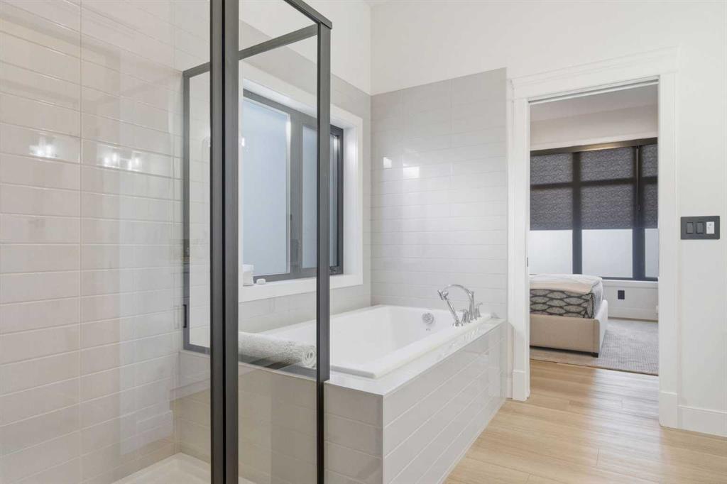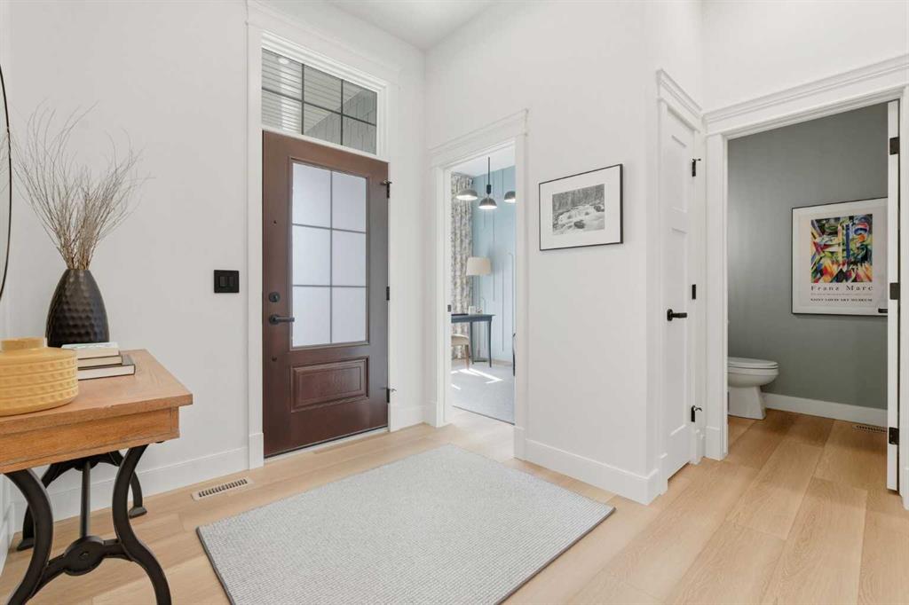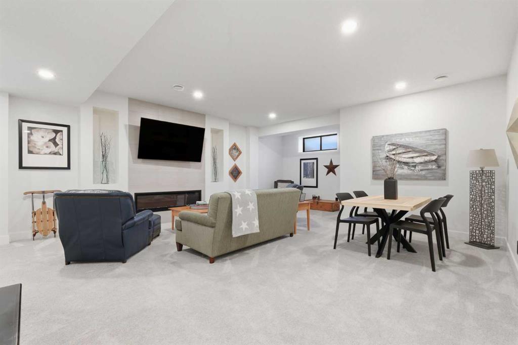 Hello GORGEOUS! This 2023 energy-efficient bungalow with air-conditioning is timeless. Located in the prestigious neighborhood of Coopers Crossing in SW Airdrie, the renowned quality of McKee Homes is unmistakable. The area offers schools, restaurants, shopping, bike trails, and green spaces. Notably, it provides a safe place to raise a family or enjoy retirement. A high level of value is evident in this custom-built home with its tasteful upgrades, abundant storage, and low-maintenance yard. Ten-foot ceilings welcome you along with luxurious LVP flooring throughout the main floor. The chef’s kitchen is complete with quality KitchenAid appliances, quartz counters, and a spacious adjoining butler’s pantry with a second BLANCO sink, bar fridge, microwave, and extra cabinets. Black trim windows and light fixtures present an understated elegance. The fully developed lower level flaunts nine-foot ceilings and four bright privacy glass windows. It offers two bedrooms with massive closets, a spacious rec room, full bathroom, an oversized storage area, central vac, and two furnaces. The roomy double garage has excessive storage and a paint-free door. Professionally fenced and landscaped, the yard is a breeze to maintain. A large deck with privacy panels provides extra entertaining space. No detail has been missed in this like-new home that could soon be yours.