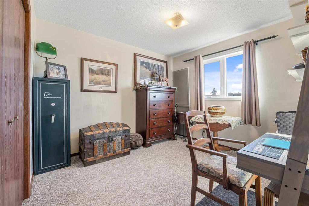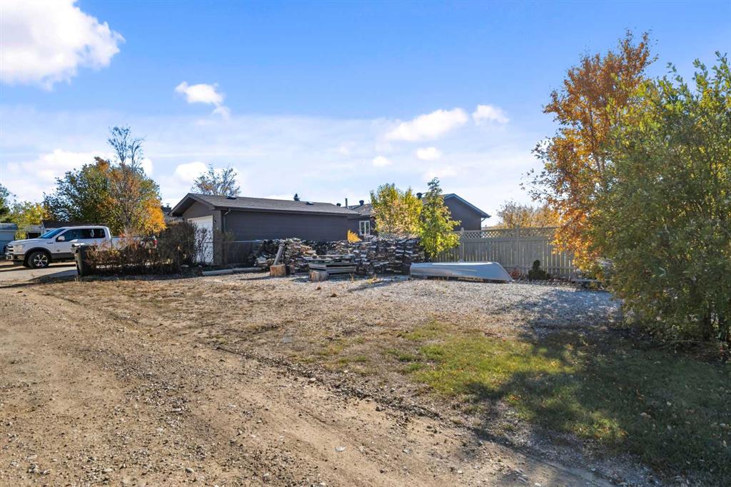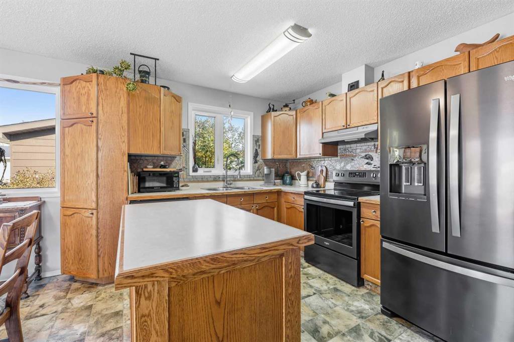 Welcome to 34 Hollinger Drive, double lot offering beautiful southern views. This property features a beautifully manicured yard with a fire pit area and perennial gardens, plus ample parking thanks to back alley access and a 14' x 24' detached garage. Inside, you'll find a well-kept main floor with taller living room ceilings, a kitchen featuring an island with extra cabinetry and a suite of sleek, all-black stainless steel appliances (new in 2020), and a convenient patio door access. The home offers three main floor bedrooms, including a primary with a half-bath ensuite, while the fully developed basement provides a cozy family area with a wood-burning stove, a four-piece bathroom, and a flexible bonus room. Enjoy peace of mind with major upgrades already completed, including new triple-pane main floor windows (2022), freshly painted HardiePlank siding (2019), and 35-year shingles (2013), all maintained with exceptional care.