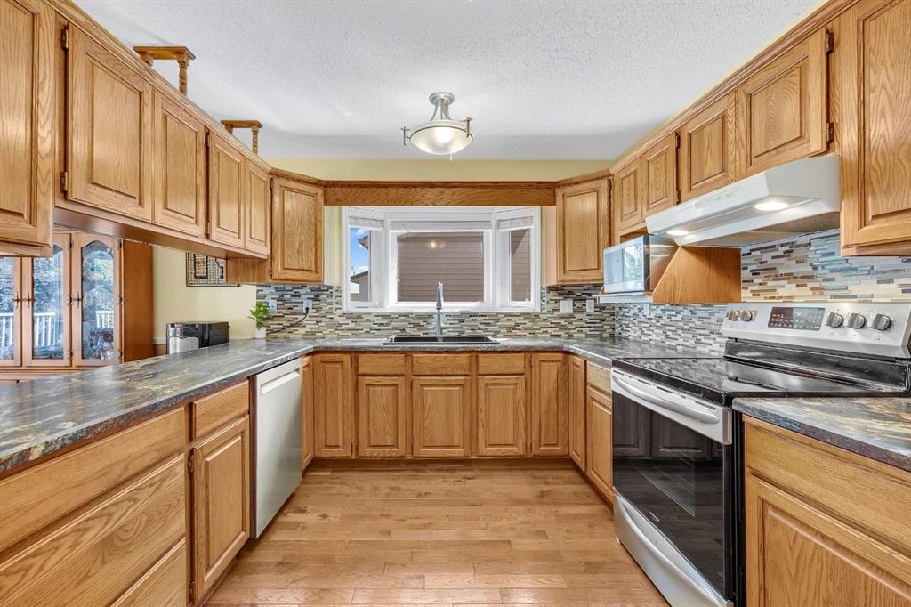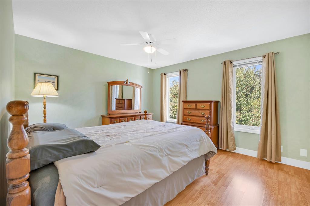 Pride of ownership resonates throughout this ORIGINAL OWNER occupied home in the COVETED community of RIDGEGATE. BACKING onto NOSE CREEK PARK, this absolutely stunning 4 level split will immediately capture your attention with its breathtaking front curb appeal. An immaculately manicured front lawn with shrubs & foliage. Canexel composite siding is bold, beautiful & ready for Alberta's changing weather conditions. The accent brick offers a sophisticated focal point to the home while the RUBBER drive pad is not only beautiful but offers a child friendly buffer for those day to day spills. This home offers over 2600 sq ft of tl developed living space with a total of 4 bedrooms above grade. Sunshine floods through the large front bay & rear windows. A substantial sized living room with beautiful hardwood floors ushering you to a LARGE bright kitchen. Ample counter space, cabinets & pantry. Updated appliances, countertops, sink, garburator & fixtures. The kitchen is open to a spacious dining area. The rear door off the dining room leads to your large low maintenance deck & fully fenced back yard. Stunning mature trees, shrubs & flowers offer a balance of beauty & privacy in this meticulously maintained OASIS. Exceptional outside storage under the deck, corner shed & garden enclosure. Back inside the house you will note a large master with 3 pc ensuite & SKYLIGHT. An exceptional sized 2nd bed, comfortable sized 3rd bed & updated 4 pc main bath with jetted tub & SKYLIGHT. The 3rd level WALK OUT is ideal for someone with a DAYHOME/HOME BASED BUSINESS & is host to the 4th bed, a large family room with stone faced gas FP, 2 pc bath & washer & dryer. The basement offers a generous sized family room, Study/Den/Wine Cellar, 3 pc bath, & Storage room. The 2 lower level rooms could be converted to beds to suit the needs of a large family while the 3rd LEVEL WALKOUT could make this home a candidate to SUITE subject to city approval & permitting. Additional storage adjacent the utility room. The single oversized attached garage is fully insulated, drywalled & includes a plug in heater. Additional features of this home include all newer windows & doors on the top 3 levels. Triple pain windows on the main rear of the home & built in blinds on the back door. Roof , Canexel siding & furnace app 2014. Hot water tank app 2020. Upgraded attic insulation. Garburator app 2020.. Water softener. Vacu Flo & attachments. Phantom screen at front door. A/C app 2022. Underground sprinklers in the backyard. This GEM is surrounded by the tranquil beauty of NOSE CREEK PARK which is host to various community events including the Christmas Light Celebration. Nose Creek Park is home to Airdrie's largest playground, fishing ponds, pickle ball courts & various trails. Walking distance to the new public library, grocery store, gym & other amenities. Nearby schools & quick access to the highway.