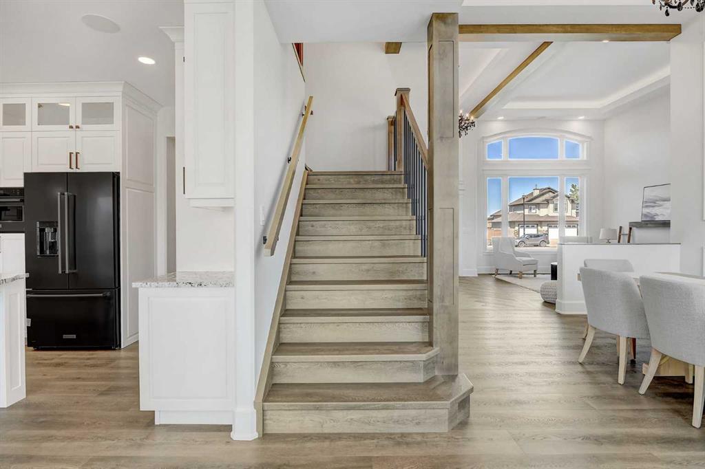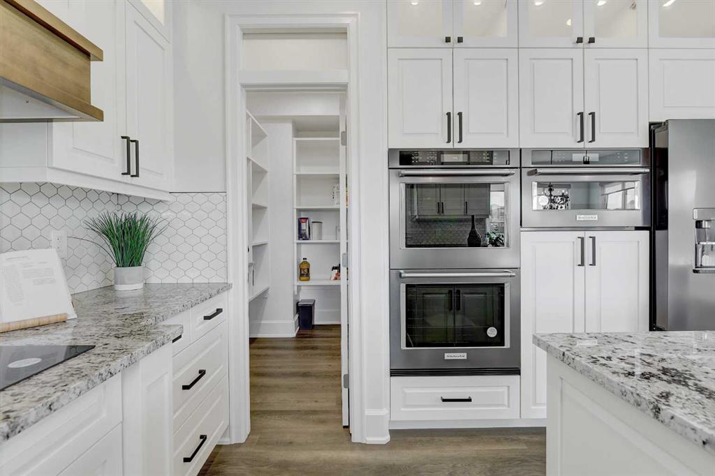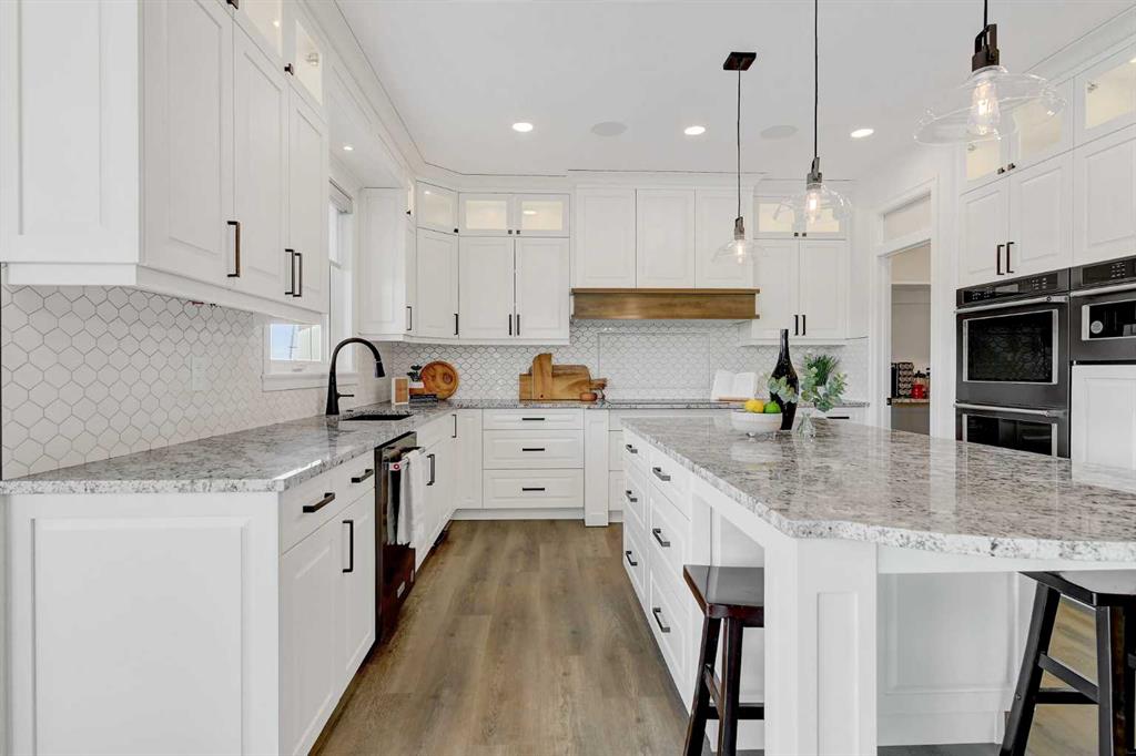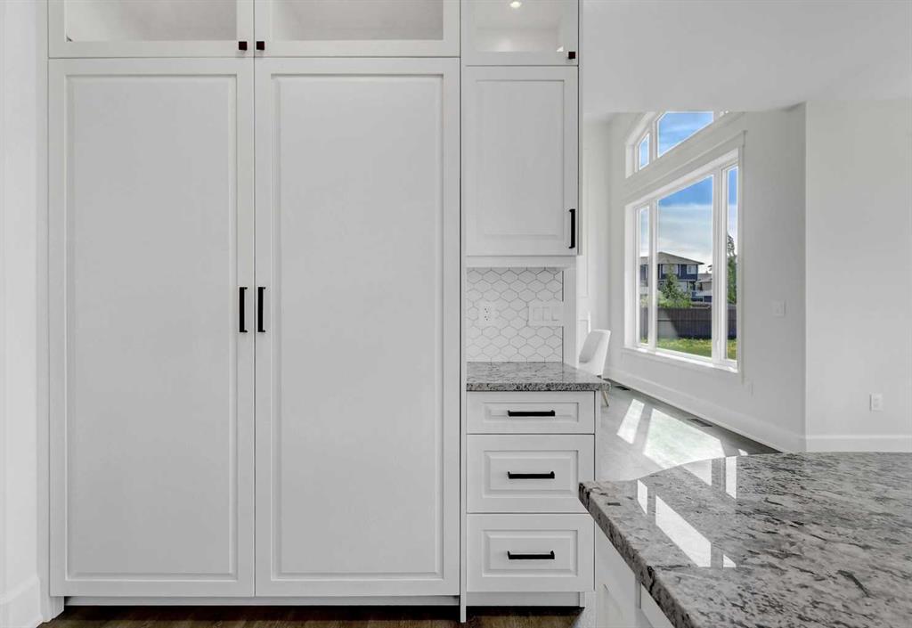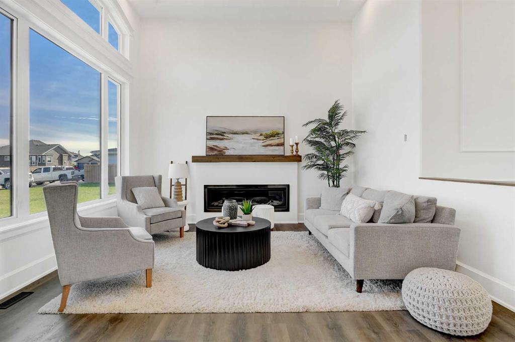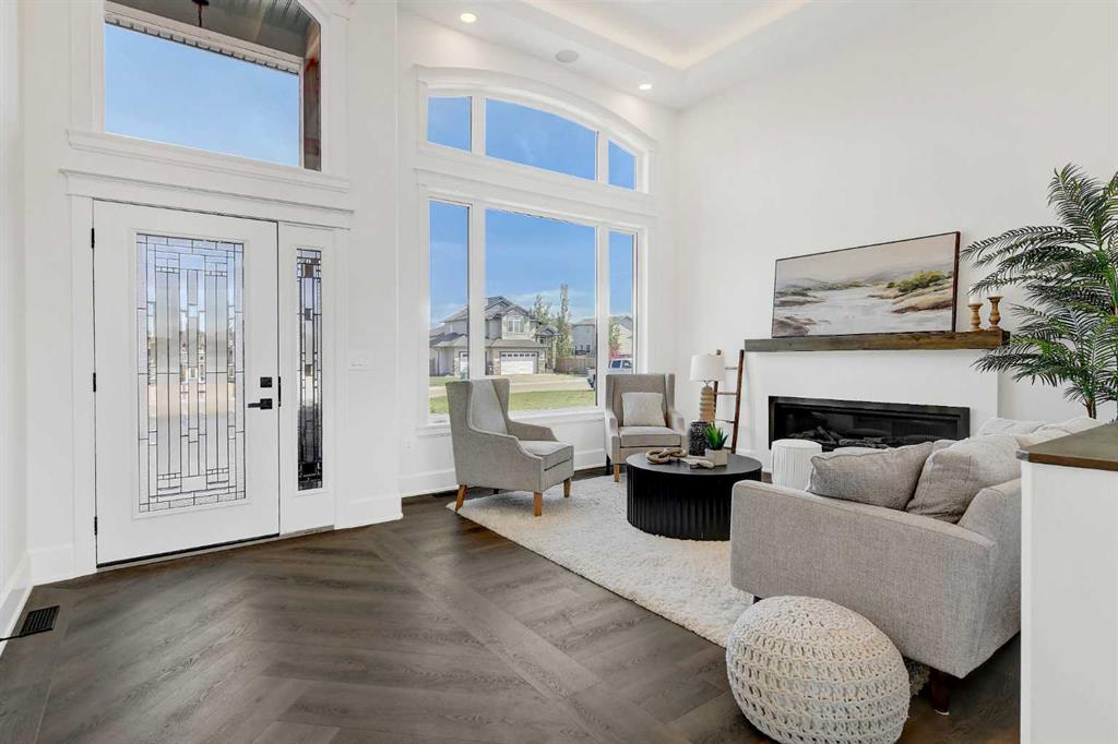 Every detail of this custom-built home in Whispering Ridge has been thoughtfully built to impress, and it does, from the moment you walk through the front door! Set on a 72' x 167' lot with no rear neighbours and county taxes,this property backs onto the pond and walking trails, offering privacy,beauty,and space to breathe.Coffered ceilings and a statement chandelier make an unforgettable first impression. The living room is bright and welcoming, with three large windows that fill the space with natural light.A gas fireplace with a custom maple mantle adds warmth and character,while the coffered ceilings with uplighting bring added dimension.From here,the formal dining room flows beautifully, a space that feels both elegant and inviting. Custom wall moulding, a striking chandelier, and oversized triple windows make it ideal for large gatherings. At the heart of the home, the refined kitchen brings together form and function with stunning results. Cream toned maple cabinetry, granite counters, and a truly massive island make it a natural gathering place. High end appliances include double ovens, an induction cooktop, and a built-in double freezer that blends seamlessly with the custom cabinetry. The butler’s pantry keeps everything tucked away, and a casual dining nook surrounded by windows makes the most of the scenery, with a door leading to the back deck, made for summer meals outside (deck to be completed). A full bathroom with dual access connects to a spacious main floor bedroom — ideal for guests, multigenerational living, or a refined home office. The rear entry adds style and function with custom built lockers, shelving, and hooks. Upstairs, custom built newel posts lead to a primary suite that feels like a private retreat! The bedroom is generous in size, with a sitting area framed by three windows overlooking the pond and trails. Step out onto your private balcony, designed for a hot tub or morning coffee. The ensuite features heated tile floors, dual vanities, custom storage towers, an air tub, water closet, and a massive tiled shower with rain head and body sprays. The walk-in closet includes built ins, an island, and a laundry chute. Upstairs also features two large bedrooms and a bath with dual sinks and cheater access. Downstairs, heated floors run throughout and the expansive family room is anchored by a wet bar. The custom theatre is a showstopper, with real constellations, tiered seating, and a mural by a local artist. Two bright bedrooms and a full bath complete the level. The backyard is made for summer evenings, with a stamped concrete fire pit pad and no rear neighbours, perfect for hosting friends! The finished triple garage is a true standout, with easy clean metal walls, epoxy floors, and floor drains in every bay. Triple-pane windows, dual furnaces, A/C, smart lighting, and custom finishes throughout — this home is luxurious, practical, and one-of-a-kind. Call your REALTOR® today to book your private showing. Ask your realtor for list!