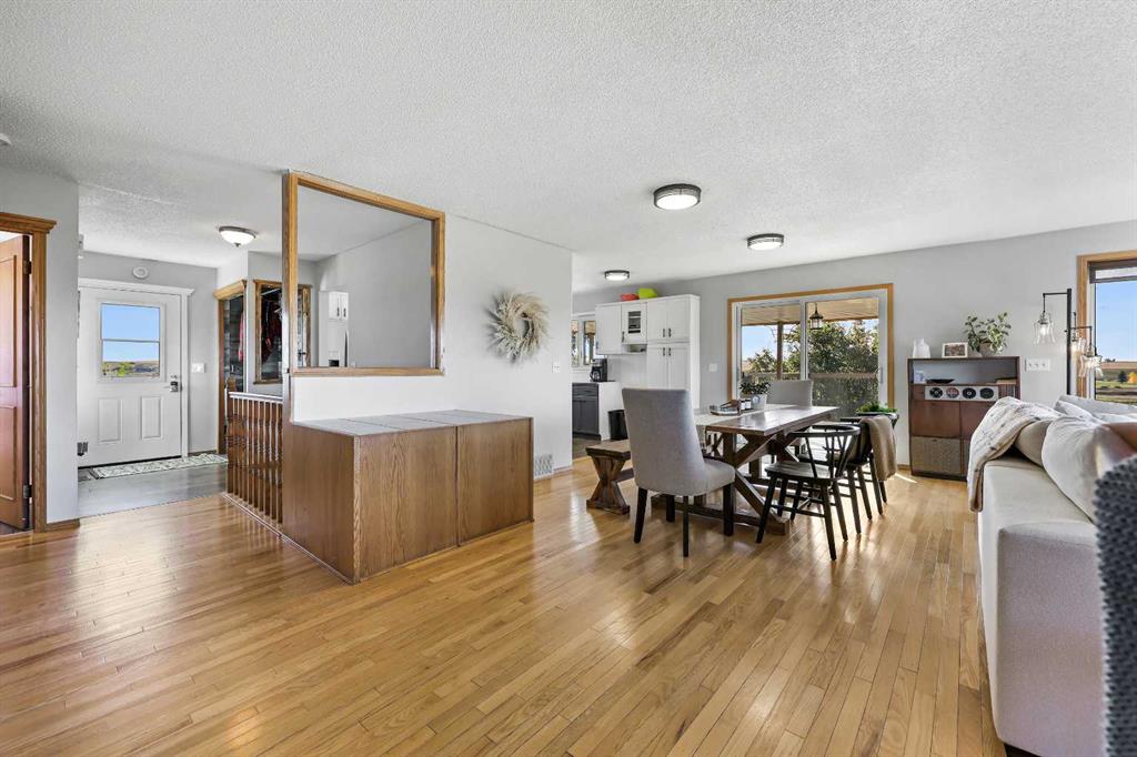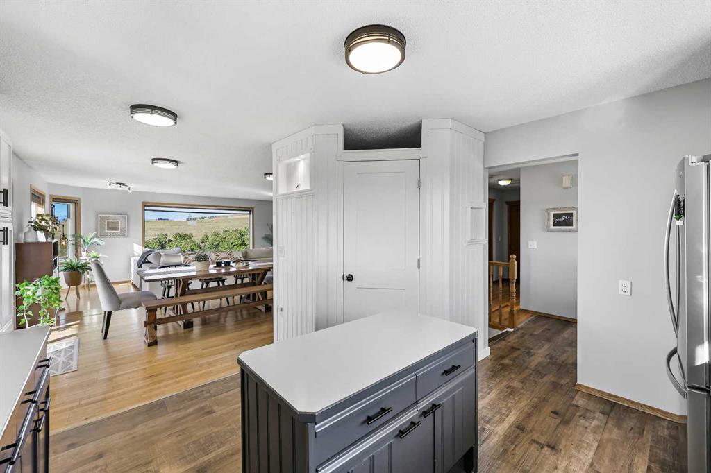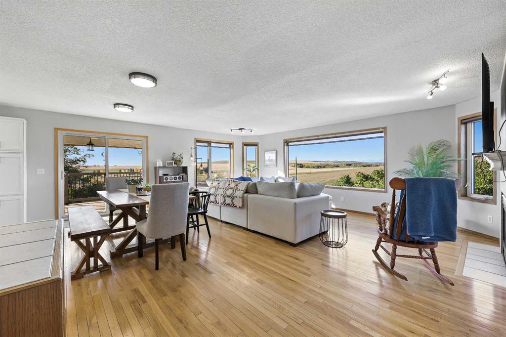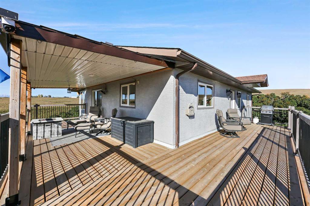 152 Acres of Peaceful Prairie Living, just 9 km from Okotoks! Looking for space, views, and room to breathe? This 152-acre grassland parcel has it all! Rolling hills, mature trees, and a cozy walk-out bungalow that feels like home the moment you walk in. Set just southwest of Okotoks on 434 Ave (west of 64 St), this property blends country quiet with easy access to town. This walkout bungalow offers over 2,000 sq/ft of developed living space, featuring an open-concept layout, a mix of hardwood and vinyl plank floors, and a comfortable main-floor primary suite with a 4-piece ensuite. The kitchen is open and bright with an island and quality appliances, perfect for casual dinners or morning coffee with a view. Many of the windows and doors have been replaced, along with new decking, fresh exterior paint, fresh interior paint and new water softener system installed. Step outside to enjoy the wrap-around deck that catches the morning sun on the east side and offers a covered, south-facing spot to relax or entertain. The lower level of this home has been completely renovated, and it speaks for itself and sports a large family room, full bath (completely re designed to be more spacious), laundry room, and a bedroom. The land itself gently slopes to the South, offering beautiful mountain views, excellent drainage, a spring-fed seasonal creek, and a lovely mix of open space and mature trees. There’s a single detached garage with a new roof, windows, and freshly painted siding, a 48’x29’ Barn complete with all new Tin siding and roofing, wood rail fencing, installation of 2 new auto stock waters, turn out pens, and a turn-around driveway. Whether you’re dreaming of a hobby ranch, a private retreat, or just a peaceful place to put down roots — this one’s worth a look. You’ll love the quiet, the views, and the easygoing country lifestyle that comes with it.