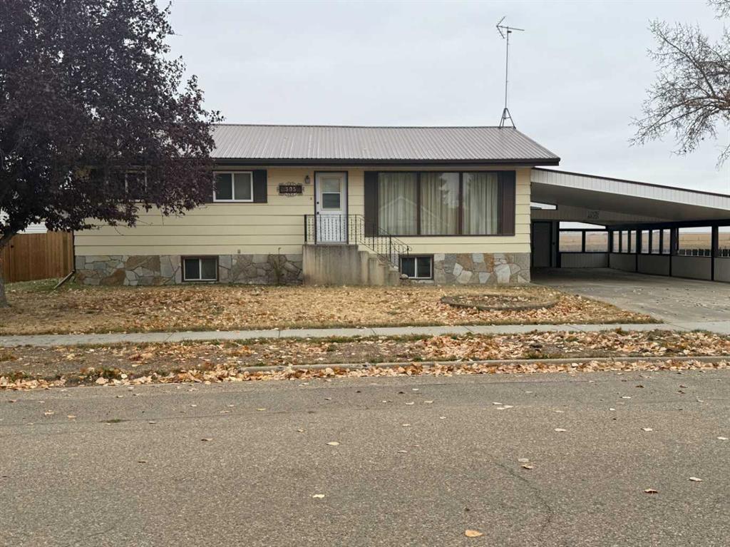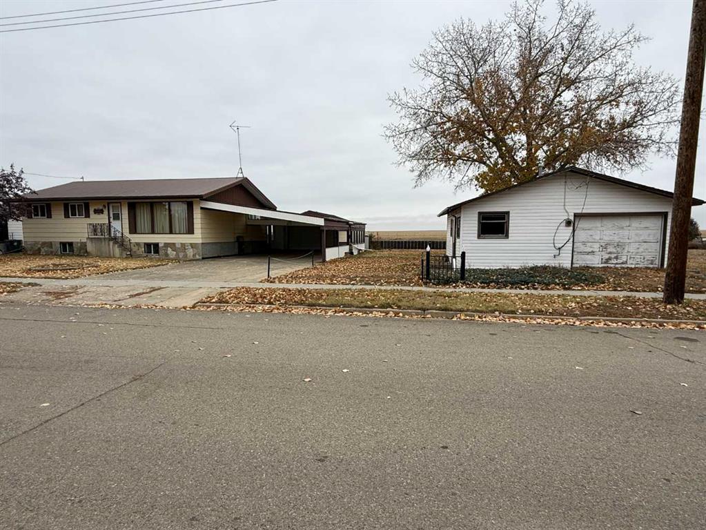 This solid 1979 bungalow sits on a generous 85 x 88 lot and offers endless opportunity to those looking to add their personal touch. Located in the Village of Foremost, this home has an excellent layout, updated pvc windows and provides a fantastic foundation for renovation or modernization. The main floor features three bedrooms , 1 1/2 baths, a spacious living room, a large kitchen/dining area - perfect for family gatherings or entertaining and YES, it has main floor laundry! The full basement is currently unfinished, giving the new owner a blank canvas to create additional living space to suit their needs. Outdoors, enjoy peaceful prairie and coulee views from the covered patio area in the back of the property, offering a true sense of space and tranquility. There's plenty of parking and storage with both a large carport and a single detached garage. In additional, the adjacent lot to the south includes an older home that's been converted into a garage/workshop - an ideal space for projects, storage or the possible potential to develop an in-law suite. If you're seeking a property with solid structure, generous space and plenty of potential in a friendly small-town setting, this is one you don't want want to miss.