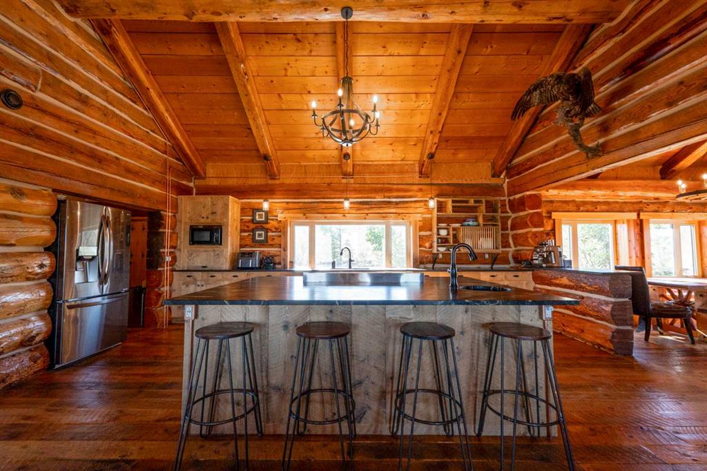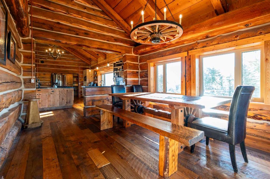Tucked along the banks of the Oldman River, this handcrafted log home rests on over 15 acres of private countryside, framed by rolling coulees, endless skies, and uninterrupted water views. Built in 2018, it’s a home that tells a story — one written in massive timber beams, soaring vaulted ceilings, and the warmth of reclaimed wood floors that echo the rhythm of the land outside. At its heart, a grand great room opens under exposed log walls and wagon-wheel chandeliers — the kind of space that feels both grounded and alive. The open-concept kitchen pairs old-world craftsmanship with modern sensibility, complete with stone counters, a central island, and premium appliances. Gather around the wood-burning stove, step out onto the deck at golden hour, and watch the landscape fade into a quiet that few ever get to call their own. Below, a fully finished walk-out basement offers more living space and additional bedrooms for family or guests — all with the same sense of warmth and connection to nature. Beyond the main home, a detached heated garage and workshop with a full second-floor loft extends the property’s versatility — perfect for a studio, guest suite, or private office overlooking the river valley. Whether you’re drawn to its architectural soul, the peace of its setting, or the sheer rarity of a property like this.