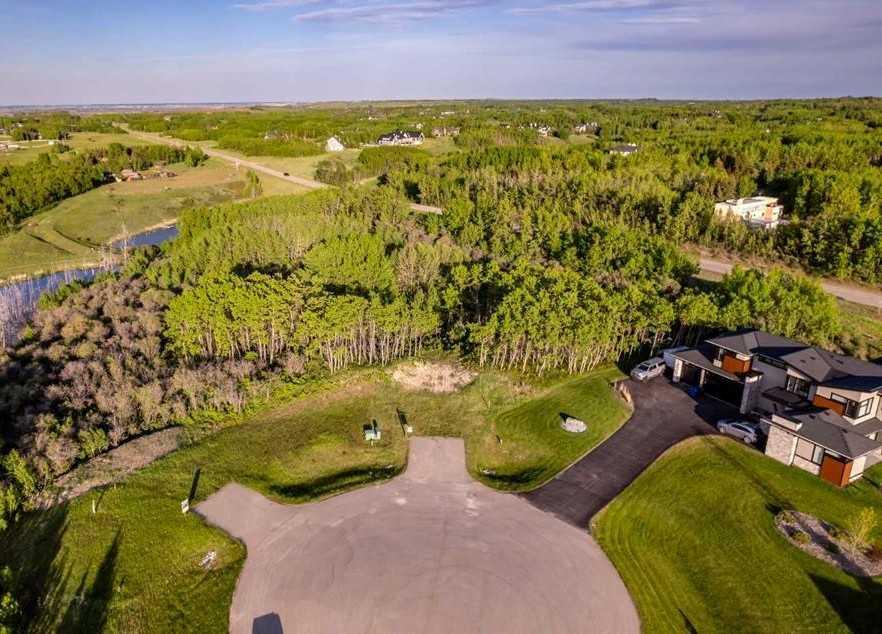 Experience the rare opportunity to own one of the most desirable properties in Silverhorn, an exclusive enclave in the heart of Bearspaw. This magnificent 2.12-acre estate lot—the largest in Phase 1—is perfectly positioned on a serene cul-de-sac surrounded by distinguished luxury residences, offering a remarkable setting for your dream home. Nestled into a wooded hillside overlooking a tranquil natural pond, this southeast-facing homesite is ideally suited for a walkout design, allowing you to fully embrace the peaceful beauty of its natural surroundings. The lot offers exceptional servicing, including water co-op, gas, power, electricity, Shaw high-speed fiber optic cable, and septic connection—all conveniently located at the lot line. Silverhorn’s architectural guidelines ensure enduring quality, refined aesthetics, and design integrity throughout the community, safeguarding your investment and maintaining the neighbourhood’s prestigious character. You also have the freedom to select your own builder, and *included* with *this* property are IBI Group–approved plans for a 3820 sq. ft. modern bungalow with a triple garage, and fully finished walk-out lower level with an additional 2800 square feet. The home has been meticulously and thoughtfully crafted and designed to harmonize with the land itself—its clean, contemporary architecture takes full advantage of the southeast orientation, expansive pond views, and the gentle contours of the wooded hillside. Every detail, from the window placement to the outdoor living spaces, has been thoughtfully crafted to celebrate the natural topography and serene setting, creating a home that feels both rooted in nature and refined in design. With a conservation-first vision, Silverhorn features over 50% open space, 7 kilometres of scenic walking trails, and ample privacy buffers between each property. Perfectly located just minutes west of Calgary, it offers a seamless balance between peaceful country living and urban convenience. Embrace the lifestyle you’ve been waiting for—a sanctuary of space, serenity, and sophistication in Silverhorn, Bearspaw’s premier estate community. Embrace the lifestyle you’ve been waiting for—a sanctuary of space, serenity, and sophistication in Silverhorn, Bearspaw’s premier estate community.