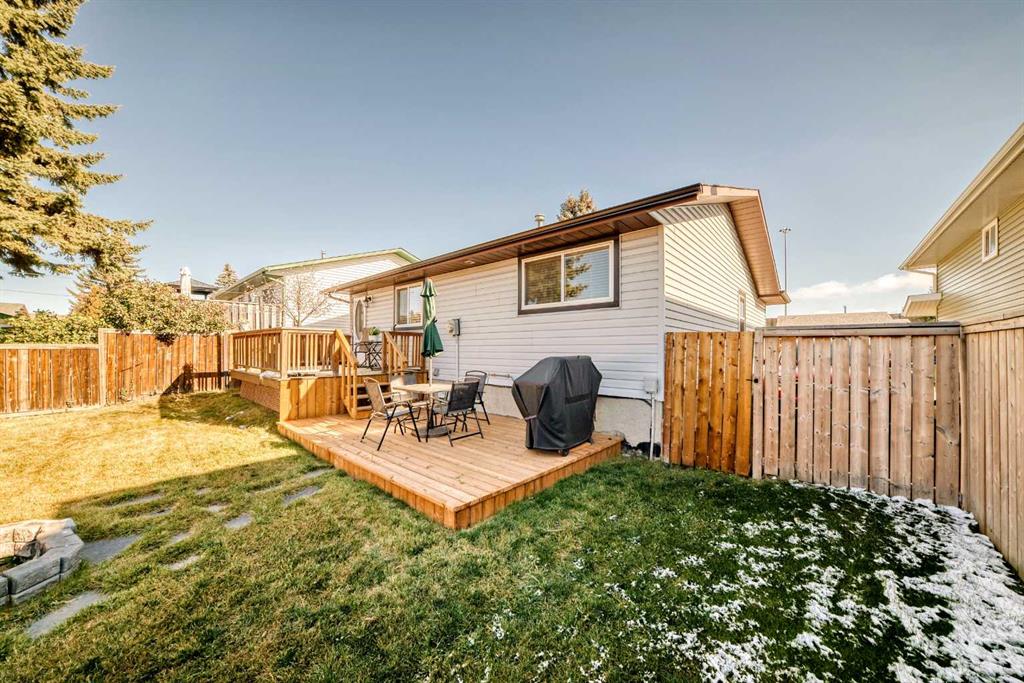 Home Sweet Home! Stunning curb appeal welcomes you to this charming bungalow with new front porch. Elegant hardwood flooring is the showstopper in the cozy living room with big, bright windows showcasing stunning NEW SHUTTERS. The kitchen is bright and sunny with crisp WHITE cabinets and S/S appliances, PANTRY and room for a sizable dining room table or island addition. Steps away from the 3 bedrooms and 4pc bathroom, this layout is great for any life stage! Clean and move-in ready with BRAND NEW, upgraded blinds. The finished basement offers lots of recreation space and another full bathroom and den/bedroom. Enjoy a huge, fully fenced backyard, featuring a two-tiered deck, Natural gas line for BBQ, firepit, and 2 adorable sheds, a rare clothes line and still plenty space to spare! This home has off-street parking, close to schools, shopping and located in the heart of Airdrie. Come check it out today!