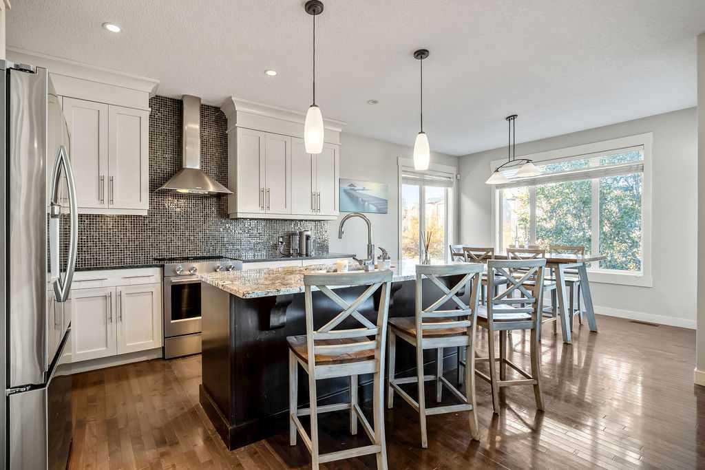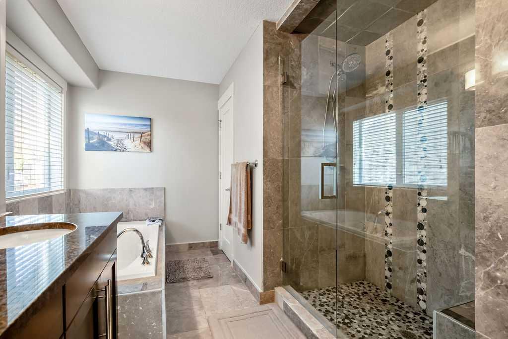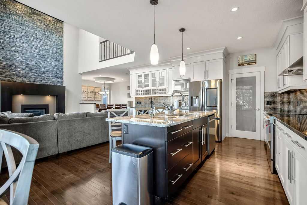 **OPEN HOUSE SATURDAY NOV 1 from 12-2PM** Tucked in one of the most sought-after locations in Chestermere, this stunning two-storey walkout backs directly onto the tranquil Rainbow Falls green space and creek-side pathway. Step outside your back gate to enjoy peaceful walks along the water, surrounded by mature trees and lush landscaping — a true outdoor retreat right at home. Inside, this fully finished residence impresses with thoughtful updates and high-end finishes throughout. The reimagined Chef’s Kitchen now features brand-new stainless steel appliances, elegant granite countertops, custom maple cabinetry with soft-close drawers and under-cabinet lighting, plus a convenient walk-through pantry connecting to the mudroom. Whether preparing an intimate meal or hosting guests, this kitchen delivers both beauty and functionality. Soaring west-facing windows flood the main floor with natural light, framing picturesque views of the creek and park beyond. The inviting great room centers around a full-height stone fireplace — perfect for cozy evenings with family or friends. Upstairs; flowing new carpet, the spacious primary suite provides a true retreat, complete with a spa-inspired 5-piece ensuite featuring heated marble floors, a jetted marble-wrapped tub, dual vanities, and his-and-hers walk-in closets. The walkout lower level is beautifully designed with versatility in mind — featuring an impressive wet bar, built-in Murphy bed, custom wine room, in-ceiling audio, and a sleek 4-piece bath with heated floors and steam shower. Ideal as a guest suite or entertainment space, it’s fully equipped with separate laundry and security systems. Outdoors, the private fenced yard offers multiple gathering spaces — a large deck for summer dining, a cozy fire pit area, and a concrete patio overlooking the natural green space and gently flowing creek. This home truly combines luxury living with the serenity of nature — an exceptional balance of indoor comfort and outdoor beauty.