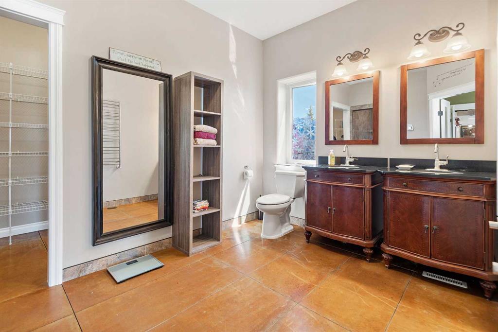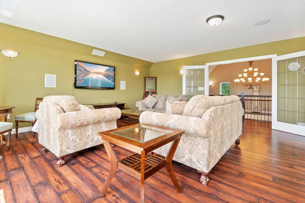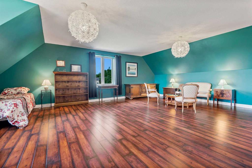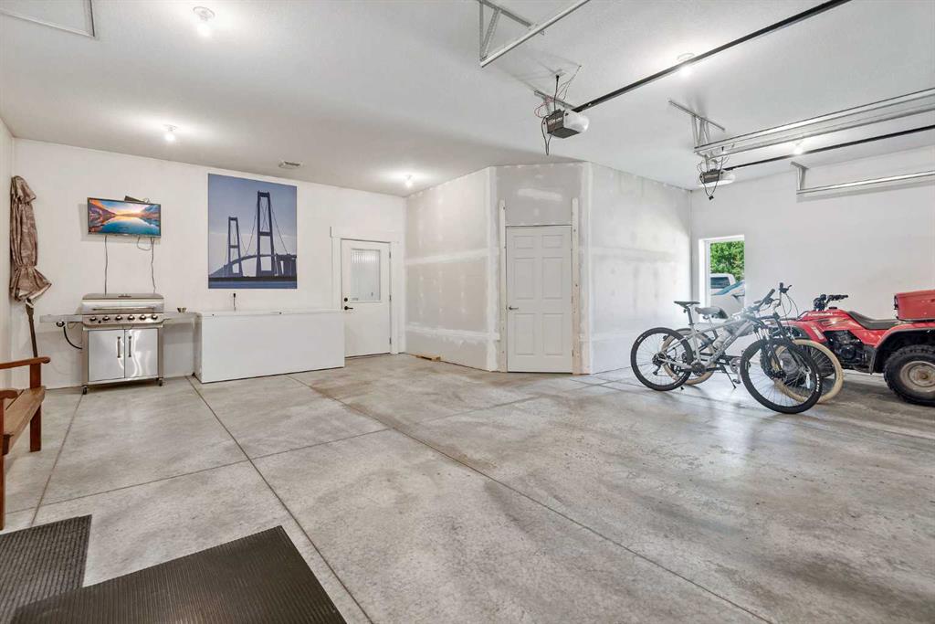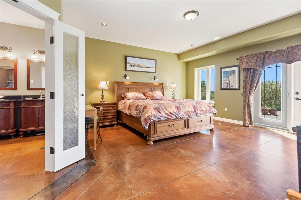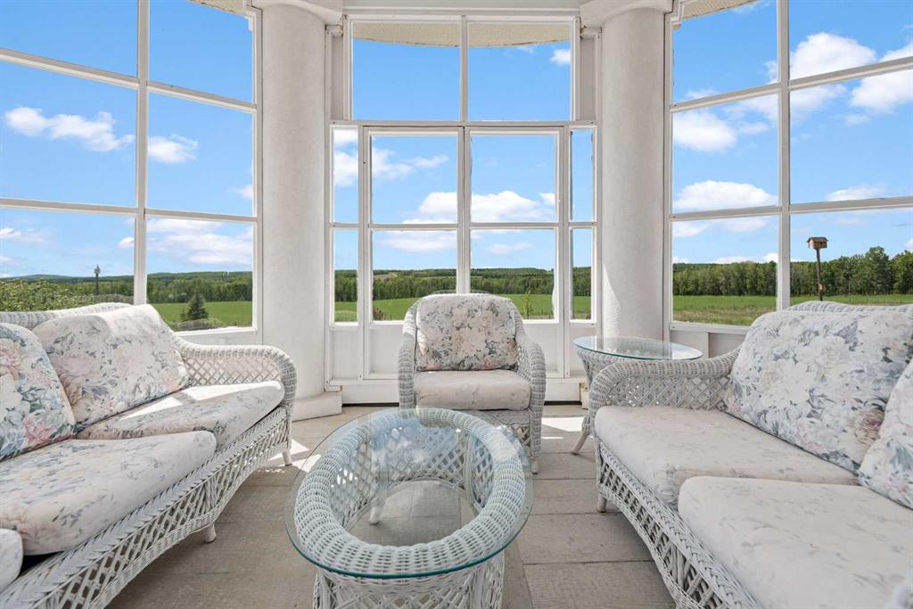 Executive 2 Storey Home with Quad Attached Garage & Huge Shop on 4.99 Acres! Impressive 5,000+ s.f. energy efficient 2 storey home built on a poured concrete slab with in-floor heating by on demand boiler, with 13" ICF walls throughout, triple glazed PVC windows and Acrylic Stucco Finish. Entering the grand foyer, a flood of natural light highlights the coloured concrete flooring, 10' ceilings, a chef's dream kitchen with upgraded cabinets, quartz countertops built in high-end appliances, new microwave, new taps, and a huge kitchen island. The kitchen overlooks the dining area and living room, with French doors to an enclosed patio area, great for entertaining and everyday living! Also located on the main floor a 2 piece bathroom, office, laundry room with sinks and plenty of cabinets, and the Primary bedroom comes with French doors to the patio, a 4 piece ensuite with dual sinks, 6'x6' steam tile shower and a huge walk-in closet. A grand wooden staircase featuring wood and metal railings and a vaulted ceiling leads to the upper level, where you will find 2 more huge bedrooms with dormer windows (which could easily be converted to 4 large bedrooms), 3 piece bathroom with a beautifully tiled shower, and a huge family room with stand alone gas stove, and access to the upper balcony where you can see for miles and miles! Additional features to this amazing home include sound & security system throughout, new central vacuum, and all doors are a minimum 3' wide and halls are minimum 4' wide. The first attached garage was built in 2012, comes with in slab heat, separate storage room, and overhead doors c/w openers. The second attached garage was built in 2015, and comes with an overhead forced air heater, and overhead doors c/w openers. If you like some shade with your sunshine, look no further, as the partial wrap-around concrete deck provides plenty of options, an enclosed sunroom, decorative pillars, built-in fire-pit, concrete block retaining walls, along with the roof top sundeck, all of which feature panoramic views. The landscaping includes many perennials, trees, shrubs, raspberry and saskatoon bushes, and a bountiful garden. This property also comes with a pumphouse, hen house, and underground power with a Natural Gas Generator that kicks on as soon as the power goes out. There's no shortage of places to park equipment on this property, as this property features a Huge Shop (42'x72' enclosed) with 16' ceiling, 5 overhead doors (14'x12'), forced air furnace, hot water tank, 220 wiring and gravel floor. The open machine area provides an additional 42'x80', all of which has a gabled roof, finished with metal and coloured clad exterior. Lots to take in with this Amazing property!