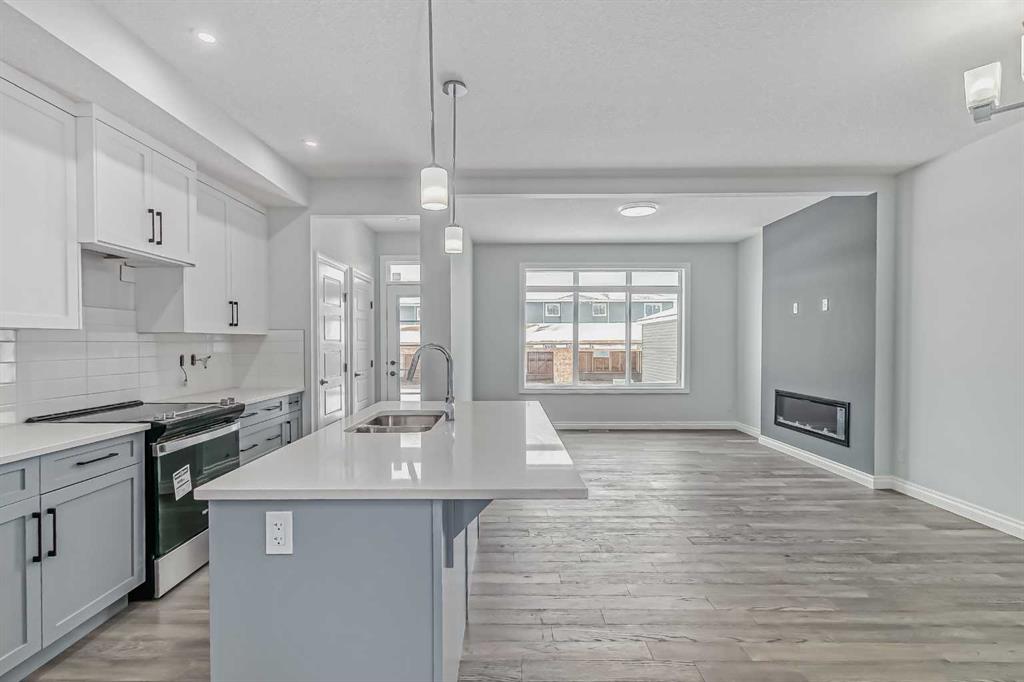 WOW ! A brand new home by Douglas Homes- Master Builder. Located one block from the new park that has been put into Southbow Landing. Thinking you may need a little bit more space ? Why not upgrade to this beautiful attached property- The Canberra ! With a generous almost 1500 worth of square footage, this home is sure to impress. This home provides 3 bedrooms, 2.5 bathrooms, a main floor bedroom or office for a perfect floor plan. The Douglas Homes kitchen comes standard with Quartz countertops on both the main floor kitchen, and the upstairs bathrooms. What an upgrade ! What really sets this home apart is the main floor office, isn't that handy ? As you go upstairs, the large window going up the stairs brings in lots of natural light. It's one of our favourite features of this home. Once upstairs, you will find 3 large bedrooms, and a walk in, full size washer and dryer with room for storage. The upstairs primary bedroom is spacious, and has a walk in closet, and even double sinks in the primary ensuite. This home doesn't even feel like a semi detached property, if you can believe it ! On the way to the basement you will find a side entrance which is perfect for a possible mortgage helper ( with approval from Rocky View County ). This home is ready in about six months and it can be yours this spring, and the best part is you have enough time to choose your palette of colours/finishings. Photos are from prior build & are reflective of fit, finish & included features. Note: Front elevation of home & interior photos are for illustration purposes only. Actual elevation style, interior colours/finishes, & upgrades may be different than shown & the Seller is under no obligation to provide them as such. Directions: Come to the Show Home first located at 115 Southborough Crescent. Show Home hours to view. This home is under construction