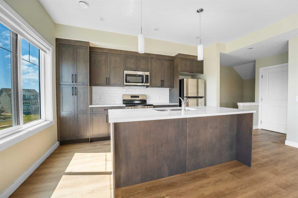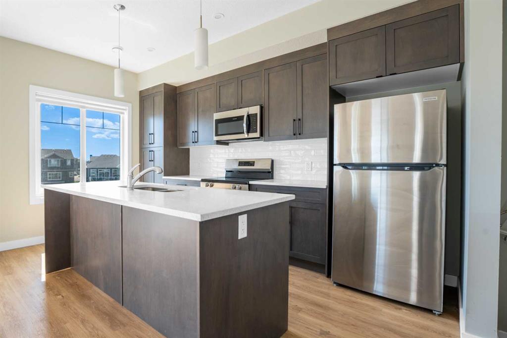 Gorgeous Townhome with Direct Canal Views in the Heart of Airdrie! WATERFRONT LIVING- Experience the ideal balance of elegance, comfort, and a serene natural setting in this thoughtfully crafted home. Carpet Stair case replaced with new viynal flooring. With its bright, spacious layout and breathtaking canal views, this home is an oasis of modern living. Enjoy the convenience of a single-attached garage and additional visitor parking — perfect for hosting family and friends. Step inside and be welcomed by a BRIGHT and SPACIOUS open-concept main floor, where the gourmet kitchen becomes the heart of your home, offering generous counter space and a perfect layout for cooking and entertaining. The large living room and a sunny dining area provide a seamless flow, perfect for gatherings or cozy evenings. A convenient 2-piece powder room adds functionality to the main level. Upstairs, discover three generously sized bedrooms, including a luxurious PRIMARY SUITE complete with a walk-in closet and a private 4-piece ensuite — your personal sanctuary. Two additional bedrooms and another 4-piece bathroom ensure space and comfort for family members or guests. The outdoor experience is truly unmatched — step out onto your PRIVATE BALCONY and embrace the calming views of the canal, where tranquil waters and colorful sunsets create a perfect setting for morning coffee or evening relaxation. Whether you're watching the ducks glide by or enjoying a peaceful walk along the canal trails, this location offers a serene escape from the everyday. Homes like this are rare to find! Whether you’re a first-time buyer, looking for an investment property, or simply craving the lifestyle of living by the water, this townhome offers exceptional value and unparalleled quality of life.