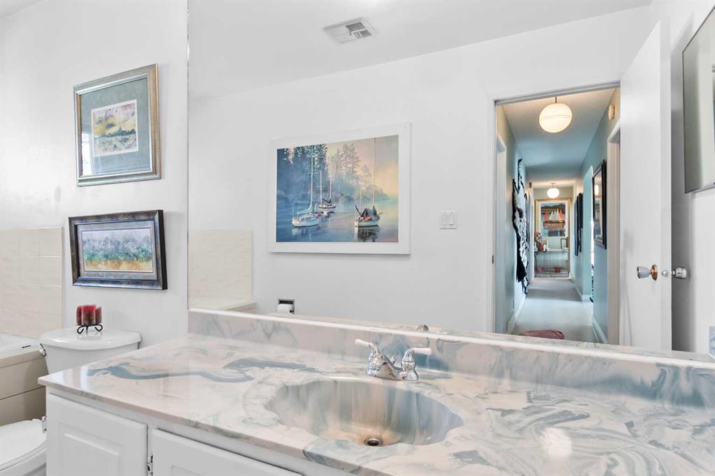 Take a stroll down West Chestermere Drive, this location is not to be missed! Nestled at the very end of this scenic cul-de-sac, next to a reserve, on an extra large private lot, is this wonderful walk-out bungalow. Built in 1976, this home has ample character and all the potential possible. With three bedrooms upstairs and two bedrooms down, here is all the room you need. Enjoy the open concept upper floor plan, big bright windows with natural lighting and an incredible view of the lake from your dinning room table. Four bathrooms, including a deep soaker tub. Two wood burning fireplaces in beautiful brick features. A large family room and spacious rec room, with a huge pool table included. Outside on your private deck is a working hot tub. The 32'x16' vinyl sided Boat House and dock and boat lift are only a few of the many perks this property has to offer! Underground sprinkler system, heated 30x30 garage with front access, huge concrete parking pad, a vinyl maintenance free retaining wall, an additional basement kitchen. Everything you could possibly need, right here in one place, on the lake.