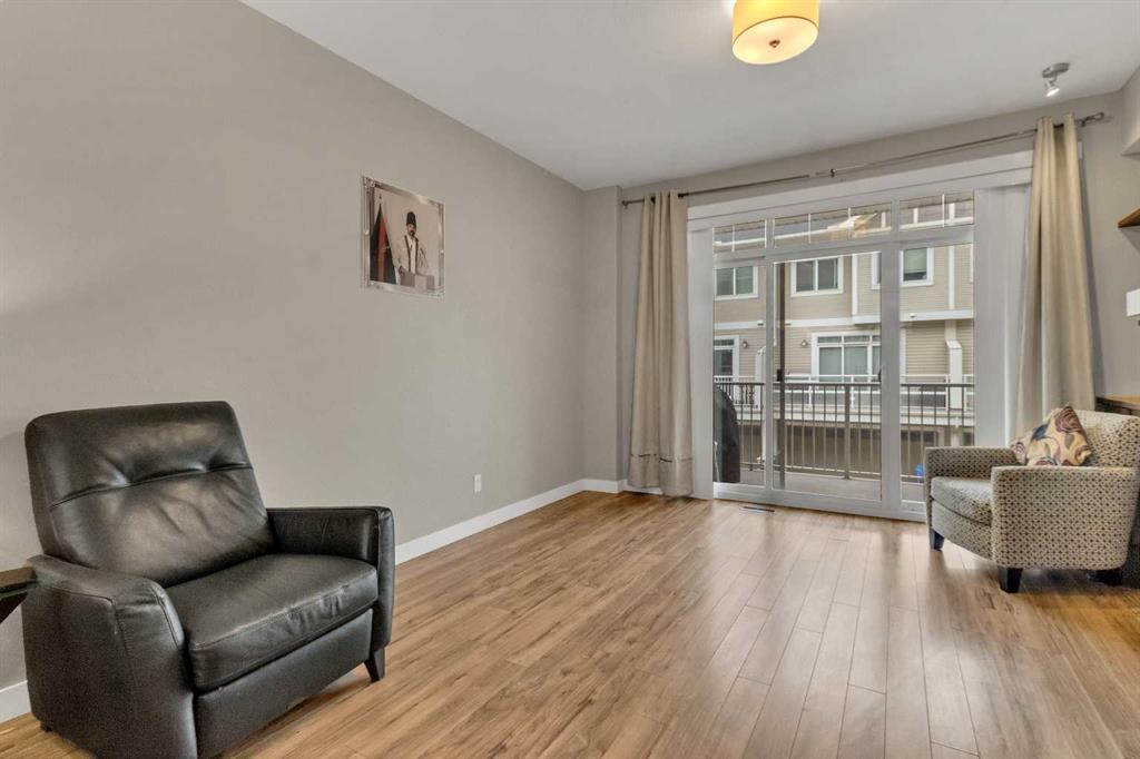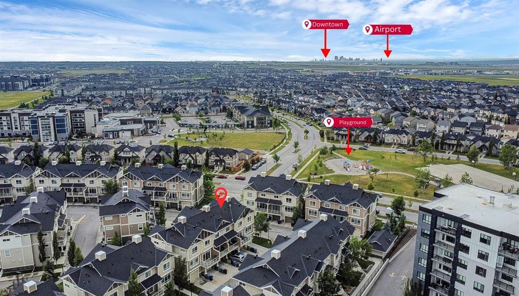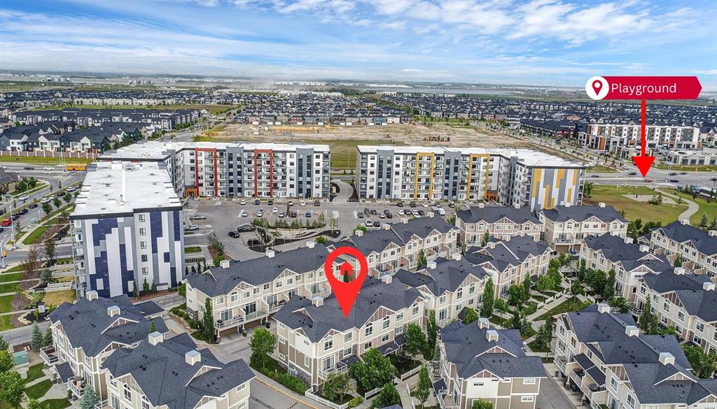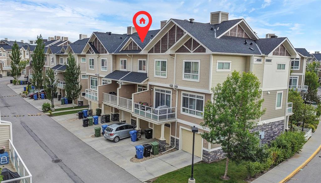 Welcome to this stylish and well-appointed 2-bedroom townhome in the vibrant community of Skyview Ranch. Thoughtfully designed for modern living, this multi-level home offers exceptional comfort, functionality, and convenience, complete with an attached single garage and two private balconies. The bright and open main living area features a spacious layout with large windows, allowing for an abundance of natural light. The contemporary kitchen is equipped with sleek cabinetry, stainless steel appliances, and ample counter space, making meal preparation a pleasure. The adjacent dining and living areas flow seamlessly, perfect for entertaining or everyday living. Step out onto the first of two balconies to enjoy fresh air and sunshine—ideal for morning coffee or evening relaxation. Upstairs, you'll find two generous bedrooms, including a primary suite with beautiful transom windows and 4-pc ensuite. A full bathroom, convenient upper-level laundry, and ample closet space complete the upper floor. The entry level offers room for a home office or flex room and direct access to your attached single garage, providing both security and ease in all seasons. Located in a well-maintained complex close to parks, playgrounds, schools, shopping, and transit, this townhome offers a perfect opportunity for first-time buyers, young professionals, or investors. Don’t miss your chance to own a beautiful home in the growing and family-friendly community of Skyview Ranch. Book your private viewing today!