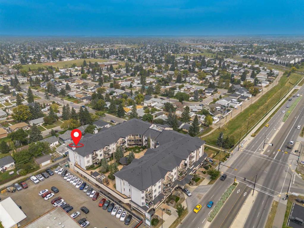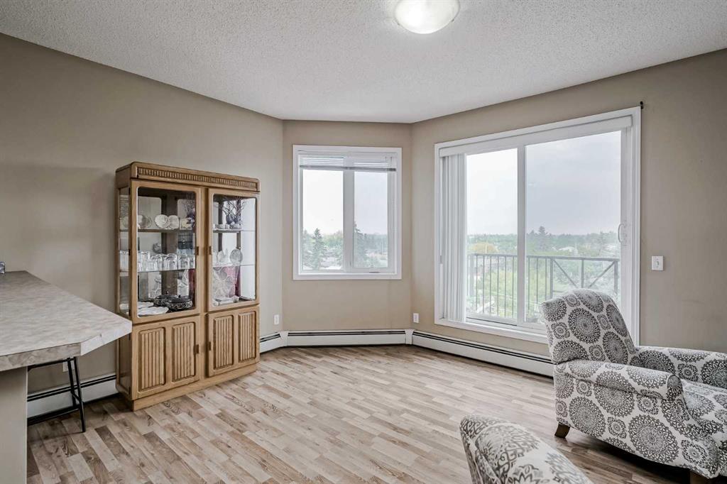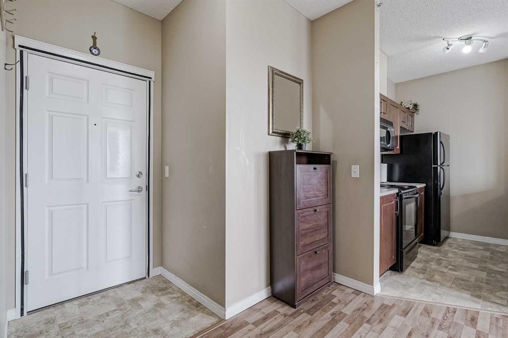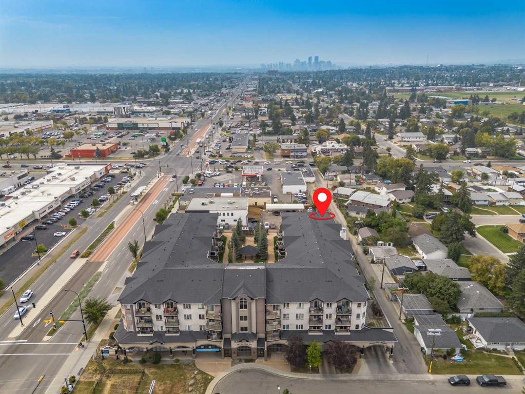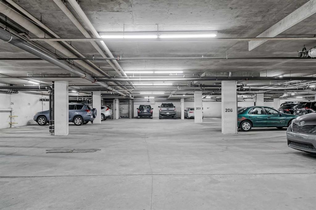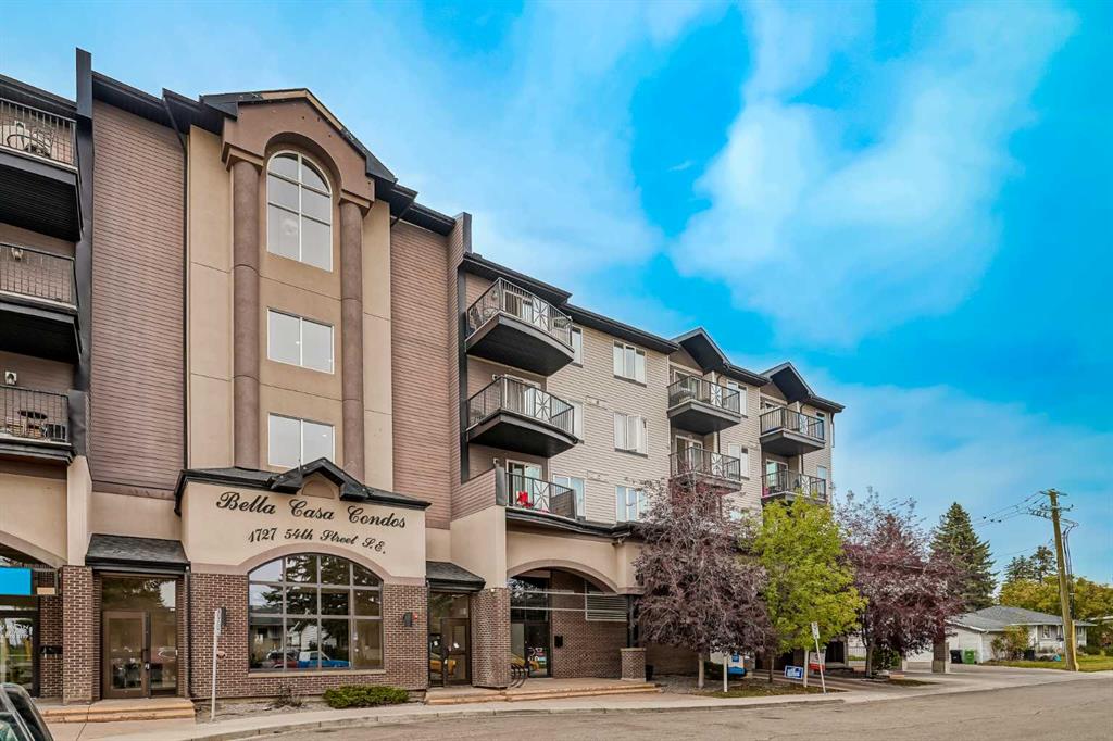 FRESHLY PAINTED UNIT! Discover the perfect blend of comfort and convenience in this bright and spacious one-bedroom condo at Bella Casa. Situated on the top floor, this corner unit offers an open layout with 9 ft. ceilings and plenty of natural light. The kitchen features ample cabinetry and a raised breakfast bar, opening into a cozy living room complete with an electric fireplace. Step outside onto your private balcony to enjoy breathtaking views of downtown Calgary and the mountains. The generous primary bedroom includes a walk-through “His & Hers” closet leading to a 4-piece bathroom. This home also comes with titled underground parking, plus visitor and handicapped parking for your guests. Bella Casa residents enjoy access to a central courtyard with a gazebo and BBQ area, perfect for relaxing or entertaining. The building is pet-friendly (with board approval) and ideally located close to shops, restaurants, and transit, with quick access to downtown Calgary. Condo fees conveniently cover all utilities except electricity. Available for immediate possession – don’t miss this opportunity to make Bella Casa your new home.