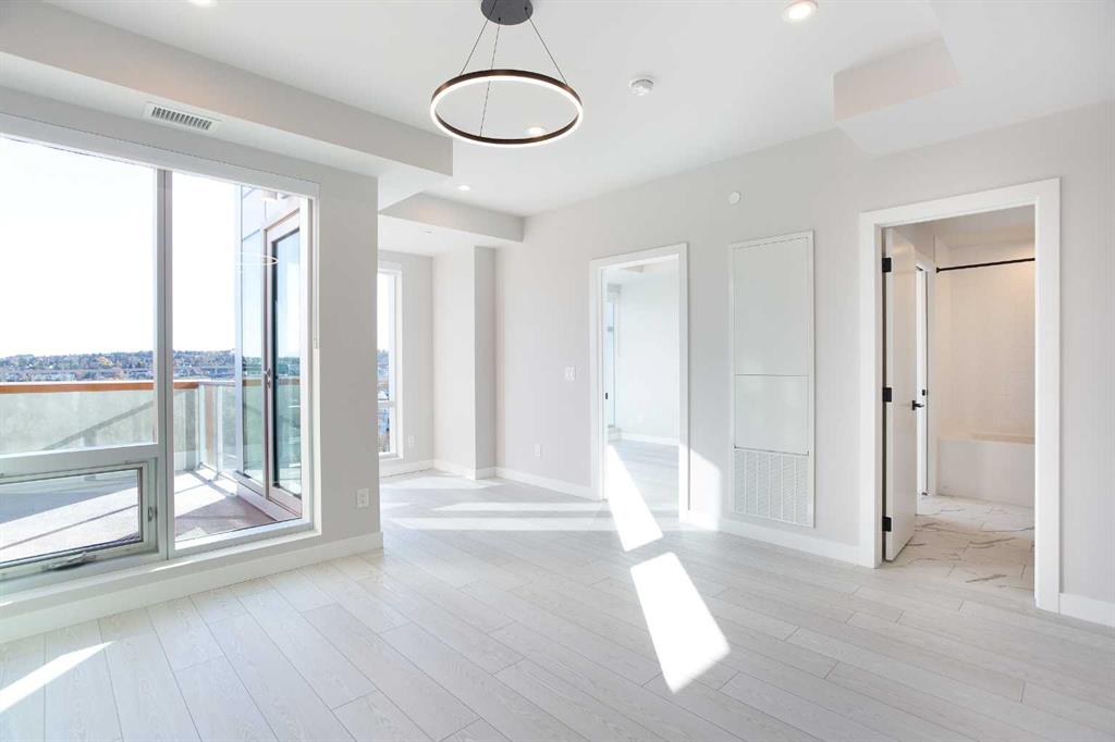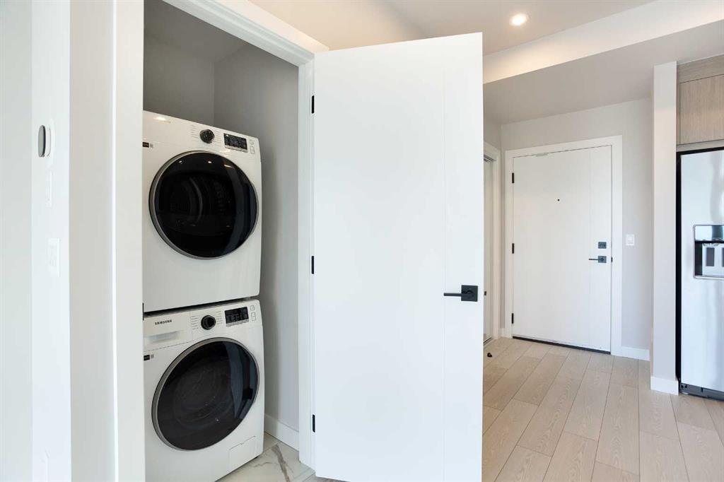 Experience the perfect blend of modern design located just minutes from biking downtown to work, Truman’s newest boutique concrete residence, ideally situated in the heart of Kensington, a central gem community in Calgary. Just steps from your door, you’ll find Kensington’s lively cafés, boutique shops, and top-rated restaurants, with the Bow River pathways. This brand-new 7th-floor unit offers 2 bedrooms and 1 bathroom in a spacious, well-designed layout with a South facing balcony, catching each sunset. The open-concept living area flows seamlessly into a chef-inspired kitchen, featuring sleek quartz countertops and stainless steel appliances. Both bedrooms provide versatile living options, whether you need a home office, guest suite, or a shared space. The elegant four-piece bathroom is finished with high-end fixtures and thoughtful touches throughout. Enjoy your own private covered balcony with scenic views and a gas hookup for easy outdoor grilling. The unit also includes a titled underground parking stall along with a secure storage area, dedicated workplace station area and gym and secure underground bike storage.