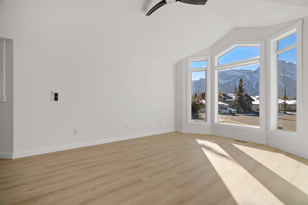 This renovated five bedroom house on Canmore's desirable Canyon Close is ready for you to move in and enjoy! With 2772 square feet (including the fully finished lower level), every detail of this thoughtful renovation delivers on convenience and luxury, offering the perfect balance of mountain charm and modern living. You’ll appreciate different mountain views throughout the house. The sun soaked front living room provides an amazing mountain backdrop to enjoy your morning coffee or a sunset beverage. Feeling like getting cozy? The family room is adjacent to the kitchen and welcomes you in with its wood burning fireplace — perfect for those crisp Rocky Mountain days. For the chef of the house, the kitchen is a true showpiece. It features brand new kitchen appliances, sleek cabinetry, and beautiful quartz countertops that make both cooking and entertaining a joy. The open design flows seamlessly into the dining and family areas, allowing you to stay connected with guests or family while you cook. The window frames the gorgeous backyard, filling the space with natural light and creating an inviting, functional heart of the home. Every element has been designed for everyday comfort and effortless hosting — from modern fixtures to abundant storage and workspace. Three bedrooms and two bathrooms greet you on the upper level. Here, you’ll find a spacious and rejuvenating steam shower ready to welcome you after your mountain adventures, while the fantastic built in closets keep you organized and clutter-free. On the fully finished lower level, you’ll find two additional bedrooms, a third living room, the laundry room, and an updated mechanical room. With its separate walk out entrance, this layout would be perfect for a future income generating suite, multi-generational living, or some extra space for your family to enjoy. * A secondary suite would be subject to approval and permitting through the Town of Canmore. You can rest easy knowing this home has been carefully updated with high-quality mechanical systems and modern efficiency in mind. A high efficiency furnace (2022), on demand boiler system (2023), and water softener (2023) provide reliable comfort year-round. All windows have been upgraded — most recently in 2025 — ensuring long-term peace of mind and energy efficiency throughout the home. Outside, the pie shaped lot provides a generous amount of space for all of your backyard activities. The professionally landscaped, low maintenance backyard complete with flagstone fireplace and synthetic grass keeps things looking green and pristine all year long — take “mow the lawn” off your weekly chore list! A large professionally built shed (approximately 9ft x 10 ft) along with a huge area of under-deck/stand-up storage (approximately 22 ft x 12 ft) provides ample room for all of your gear. Schedule your viewing today!
