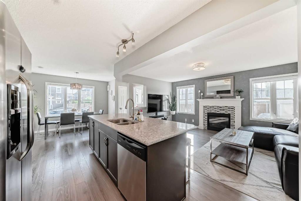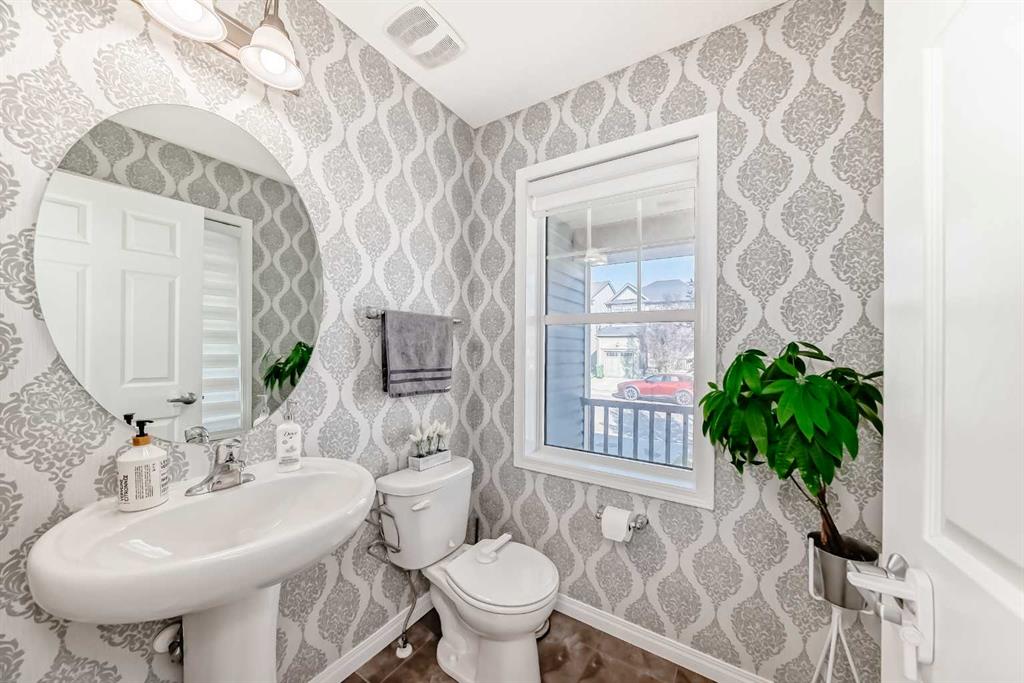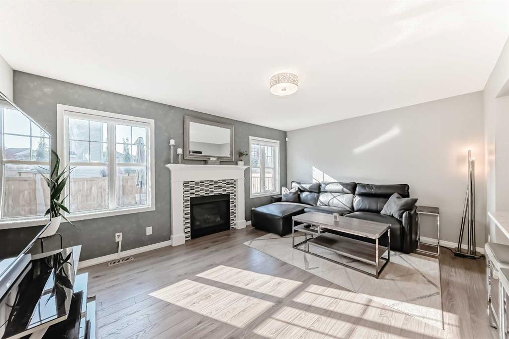 Welcome to Southwinds in Airdrie. This charming detached home is situated on a desirable corner lot with just under 1,800 sq. ft. of living space, offering 4 bedrooms and 2.5 bathrooms. Perfect for growing families, first-time buyers, or investors, this property combines comfort, function, and style. The main floor features a cozy gas fireplace, convenient laundry, and a bright, open layout where natural sunlight pours in throughout the day. Additional highlights include air conditioning, a double attached garage, lots of yard space, and a welcoming wrap-around porch—ideal for relaxing or entertaining. The undeveloped basement provides endless possibilities to customize to your needs, while thoughtful touches like modern light fixtures and designer wallpapers add a stylish finish. All this in a family-friendly community, within walking distance to schools, shopping, and everyday amenities, plus only 10 minutes to CrossIron Mills and 17 minutes to Calgary International Airport.