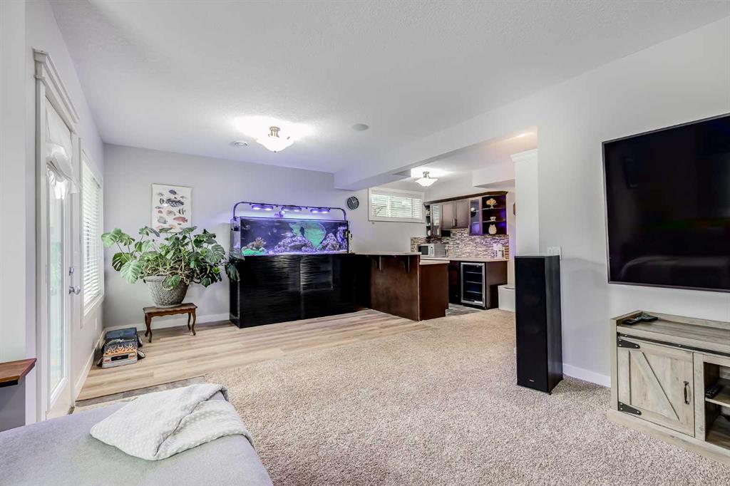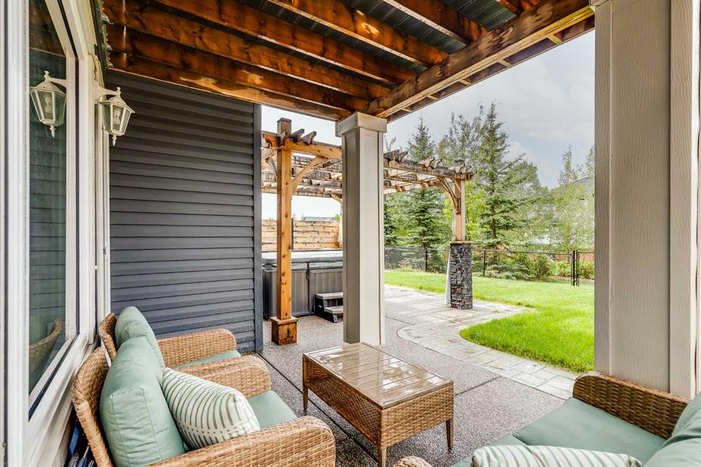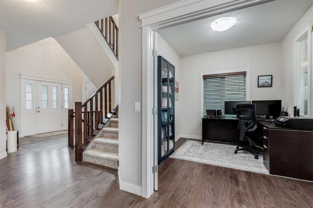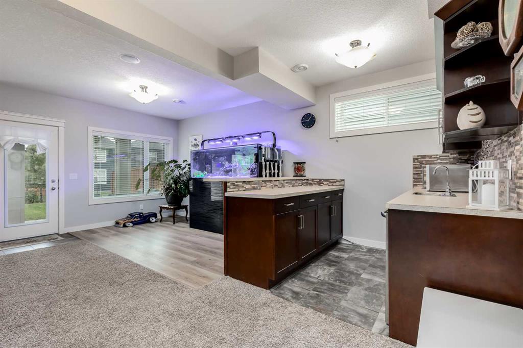 Welcome to this stunning, impeccably maintained home in one of Airdrie’s most sought-after upscale communities! Offering over 3,200 square feet of beautifully finished living space (just over 2,200 sq ft above grade plus 1000+ sq ft in the fully developed walkout basement), this 4-bedroom, 3.5-bathroom home is bright, sunny, and move-in ready. Backing directly onto a serene green space with walking paths and parks nearby, this home combines privacy, functionality, and luxury. The main floor features a spacious den perfect for a home office, a large front foyer, and a welcoming two-storey entrance with upgraded open railings that make a grand first impression. The open-concept living room includes a gas fireplace, and the generous dining area leads to the west-facing backyard—perfect for sunsets and evening entertaining. The gourmet kitchen is a chef’s dream with granite countertops, a gas cooktop with wall oven, pot and pan drawers, and a walk-through pantry connecting to the oversized mudroom. Upstairs, you’ll find a large bonus room, upper-level laundry, and three generous bedrooms, including the luxurious primary suite with vaulted ceilings, a walk-in closet, and a spa-inspired ensuite featuring dual vanities, a soaker tub, an oversized shower, and a private water closet. The fully finished walkout basement includes a kitchenette, a spacious fourth bedroom, full bathroom, and plenty of storage. Step out to the beautifully landscaped backyard complete with a hot tub, mature trees, and room to relax or entertain. Additional features include central air conditioning, tons of storage throughout, and a fantastic location close to schools (including a K-12 Francophone school), shopping, pathways, and parks. This immaculate, turn-key home offers space, style, and an unbeatable location—ready for its new family!