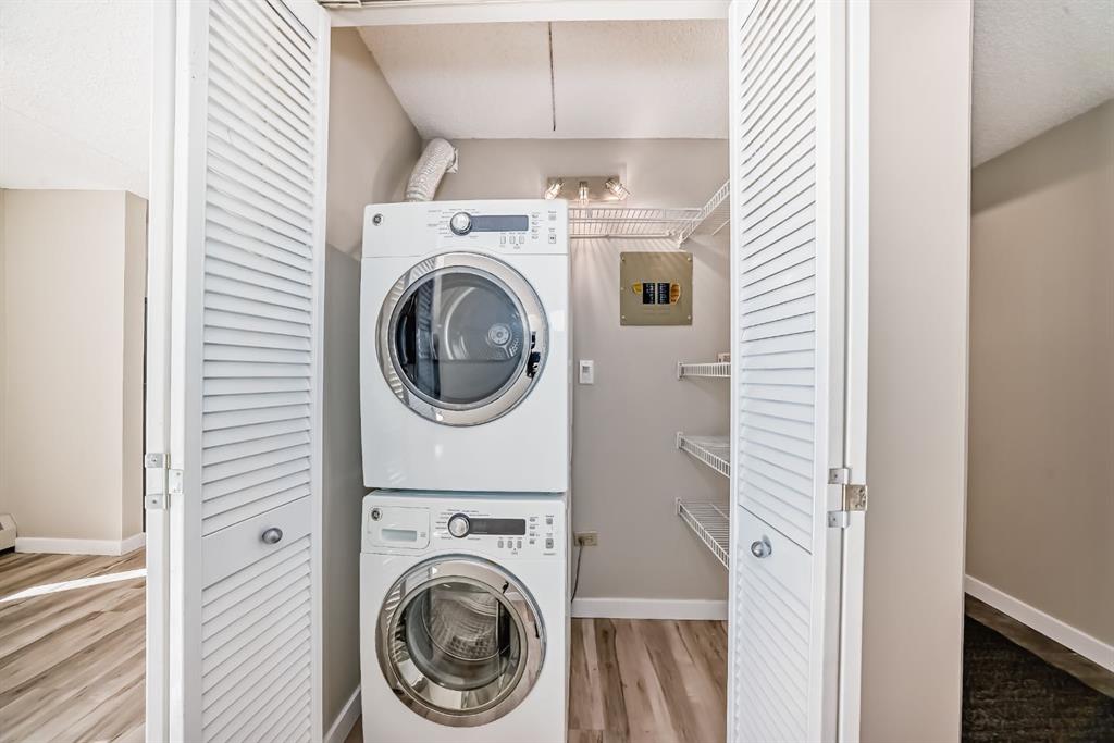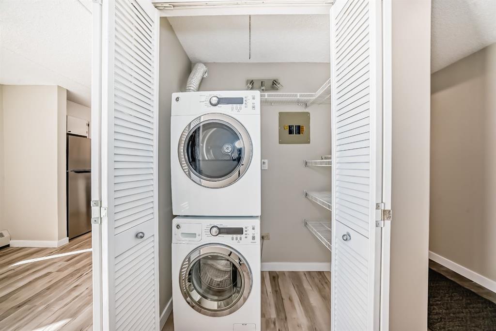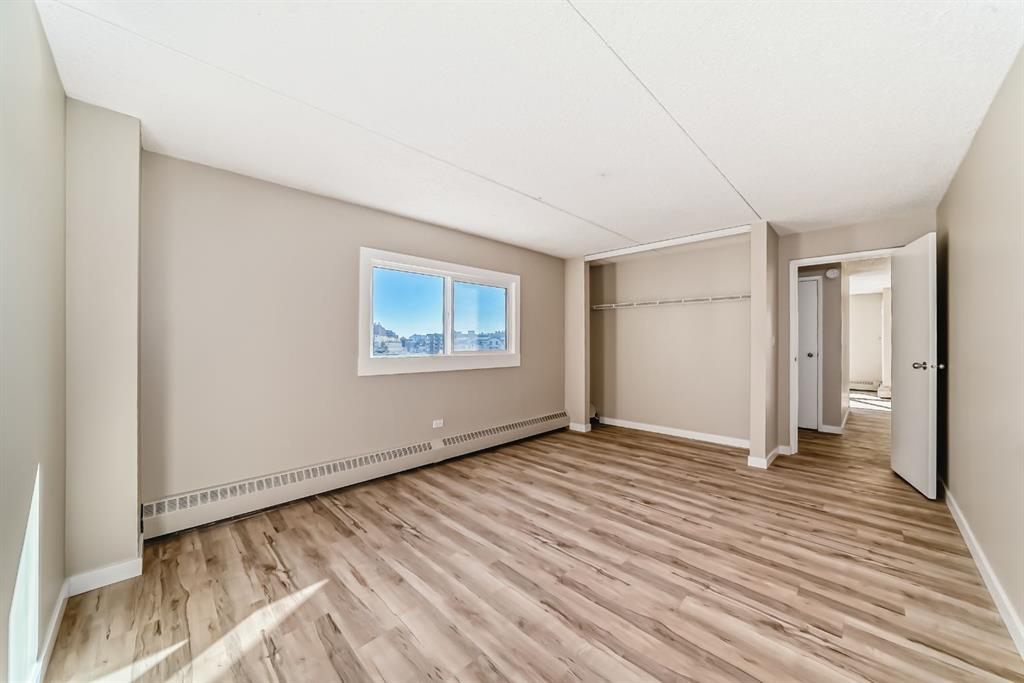 Stylish & Sunlit 2-Bedroom Condo with Southwest Views of 17th Ave Step into comfort and convenience with this fully upgraded 2-bedroom condo, perfectly located in Calgary’s lively Beltline neighborhood. Situated in a quiet, well-managed adults-only building, this southwest-facing corner unit is filled with natural light and offers beautiful views of 17th Avenue. Enjoy over $20,000 in recent upgrades, including brand-new appliances, modern flooring, and fresh paint throughout. The spacious primary bedroom easily fits a king-sized bed, while the second bedroom—with charming French doors—makes a perfect home office or cozy guest room. You’ll love the ease of in-suite laundry, your own heated underground parking stall, and a dedicated storage locker. Step out onto your private balcony to unwind and take in the city skyline—ideal for morning coffee or evening sunsets. The building has also seen thoughtful updates, including triple-pane windows and refreshed balconies, adding comfort and energy efficiency. Pet-friendly and just steps from trendy restaurants, cafés, shops, and transit—this is urban living at its best. Whether you're a first-time buyer, downsizing, or looking for a stylish city retreat, this condo checks all the boxes.