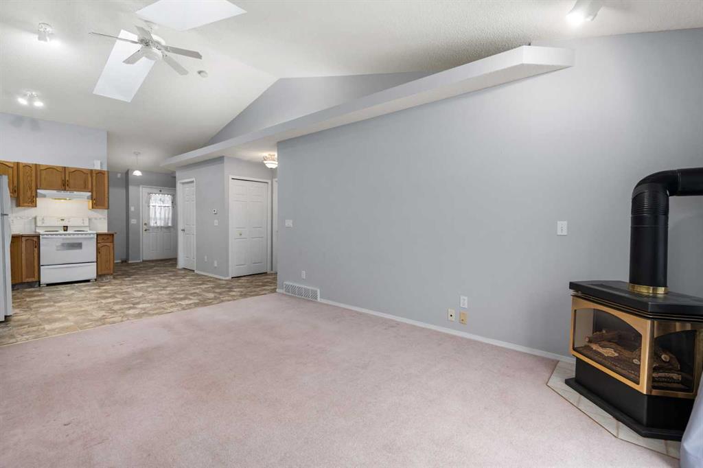 Welcome to the Links at Woodside, a beautiful Gated Adult Community (55+)! A warm and welcoming neighborhood that features a clubhouse for social events and is located just minutes from Woodside Golf Course, peaceful walking paths, and all the amenities you could ever need! This bright and spacious gem of a unit offers 2 bedrooms (or 1 + den) on the main floor, including a large primary bedroom with elegant hardwood flooring and a 4-piece bath conveniently located right beside it for added versatility. The open-concept kitchen and living room are perfect for cozy nights in, featuring two skylights that bathe the space in natural light, soaring vaulted ceiling, a charming corner gas fireplace, and patio doors leading out to your private back deck—ideal for morning coffee or evening relaxation. Some recent upgrades include a new hot water tank, newer washer and dryer and furnace motor replaced! Enjoy flexible laundry options with washer and dryer hook-ups on both the main floor and in the basement. The lower level is fully finished, offering a massive family room, a 3-piece bathroom, a den/craft room, and even a possible third bedroom (not proper egress)—making it easy to accommodate guests, hobbies, or additional living space, all while providing tons of storage. Visitor parking is conveniently located right across from the unit, pets are welcome with board approval, and the condo fees are just $289.40/month, covering snow removal and exterior maintenance. With a perfect location, smart layout, and community amenities like the clubhouse, you have everything you could want right at your fingertips. This beautiful home won’t last long—come see what makes it so special and book your private viewing today!
