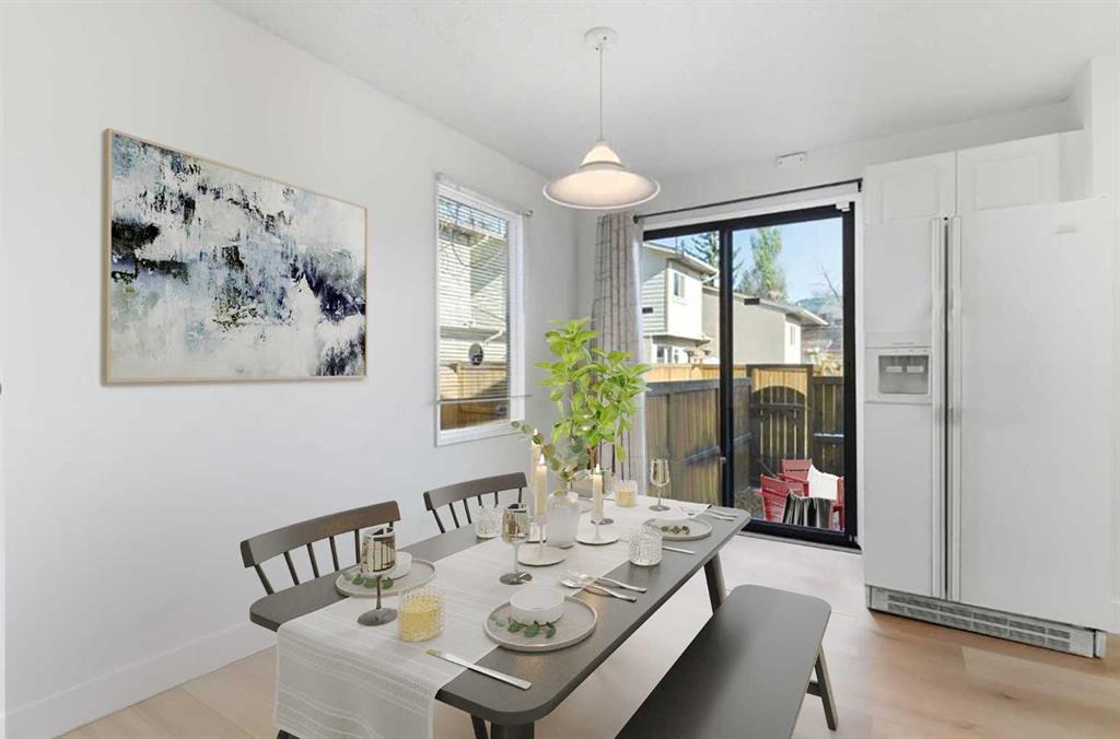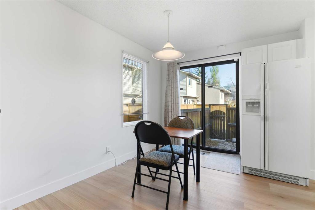 Don’t miss this rare opportunity to own an upgraded 1100 square foot END UNIT, 2 storey town home with 3 bedrooms, 1.5 bathrooms, and full basement, directly siding a pathway and green area, for under $400,000. Homes like this don't get listed often at this price point, which offers greater affordability. Some photos have virtual furniture option shown. Deer Ridge and Deer Run are stellar south locations, close to Fish Creek Park, minutes to shopping and amenities in the Deer Valley Market Place, Avenida Mall, and Southcentre Mall, with easy access to MacLeod Trail and Deerfoot Trail, as well as lots of additional shopping in Shawnessy, Quarry Park, and McKenzie Towne. Dog lovers, there is also an off-leash dog run right behind the property. All the Deerfield Terrace properties have stucco and wood exteriors. This one allows you to enjoy a private fenced yard with paving stone surface, to sit out in Calgary's year-round sunny weather. It also comes with an assigned parking stall, and plenty additional visitor parking on the drive. Inside is a spacious starter home, with brand new beautiful vinyl plank flooring and fresh paint throughout the main and upper floors. Bright natural light transfers from the newly installed in the spring bay-window, which has a bench seat (with storage). Following through the open hall, there is a 2-piece bathroom and broom closet leading into the wrapped contemporary white kitchen, dinette area with exterior window and large patio doors. Going upstairs, you will experience the safety and warmth of the newly carpeted stairs and new luxury vinyl plank flooring throughout the upper floor. The primary bedroom is spacious enough for king-sized furnishings and has a large walk-in closet. There are also two additional comfortable bedrooms, one large enough for a double or queen size bed and an additional dresser or desk and with double closets. There is also a third bedroom with an exterior window and closest. There is also a full 4-piece bathroom and linen closet centrally located for all three rooms, with a hall stub wall to better accommodate moving furniture in or out. Downstairs, the basement allows for an additional 400 square feet of living space and the layout allows for a big rec/games area, central hobby or playroom, tucked away utility and storage, plus a laundry area that can all be finished to personal taste. There is zero wasted space. See iGuide 3D tour Link with detailed Floor Plans and inside-outside 360 panorama cameras. The Deerfield Terrace complex has an efficient and cost-effective management, regular exterior maintenance, low condo fees and a solid Reserve Fund Plan. The condo documents are available by request and will give you confidence. (Request a showing through your favourite trusted real estate agent. Don't wait, come see this incredible home. A wonderful Opportunity.