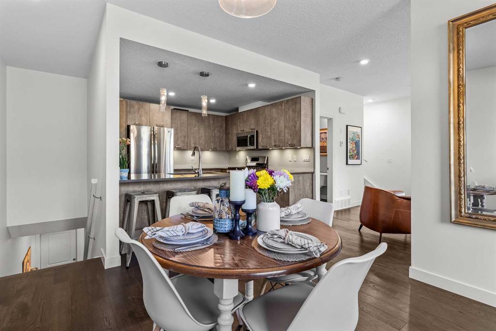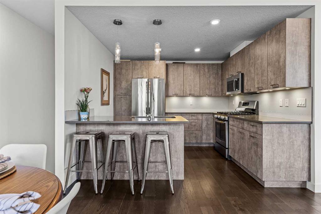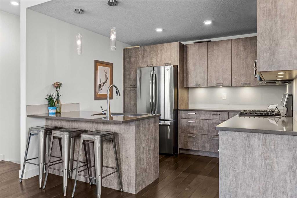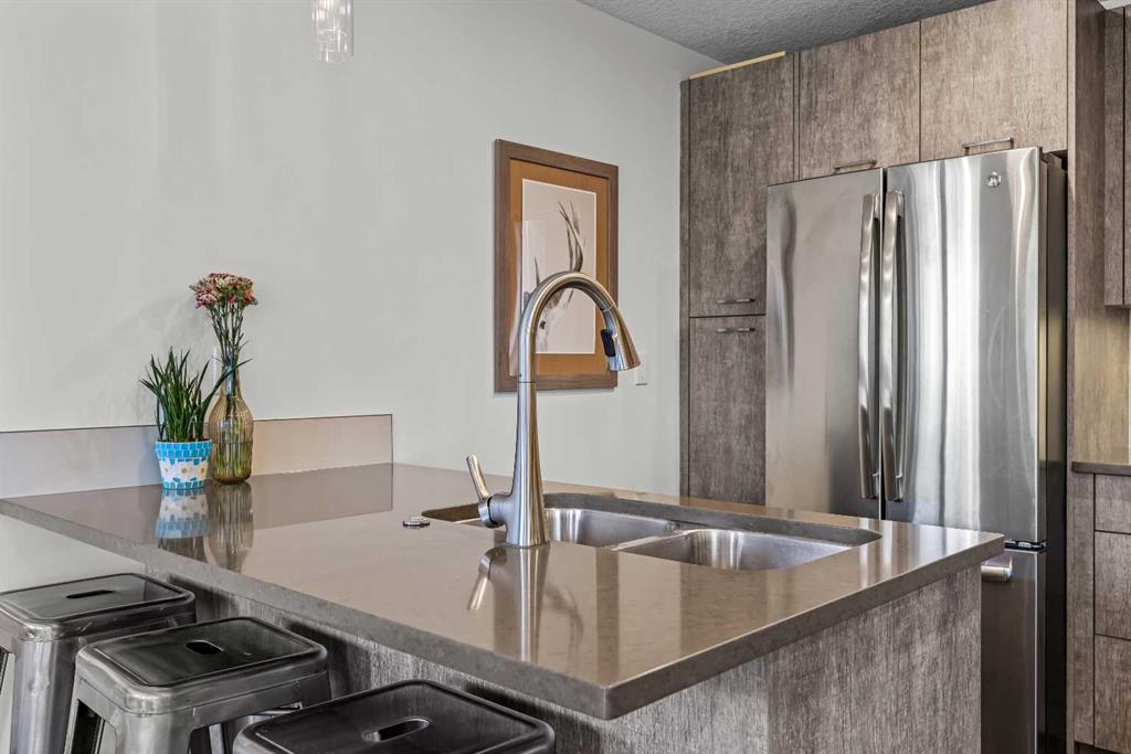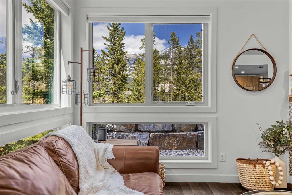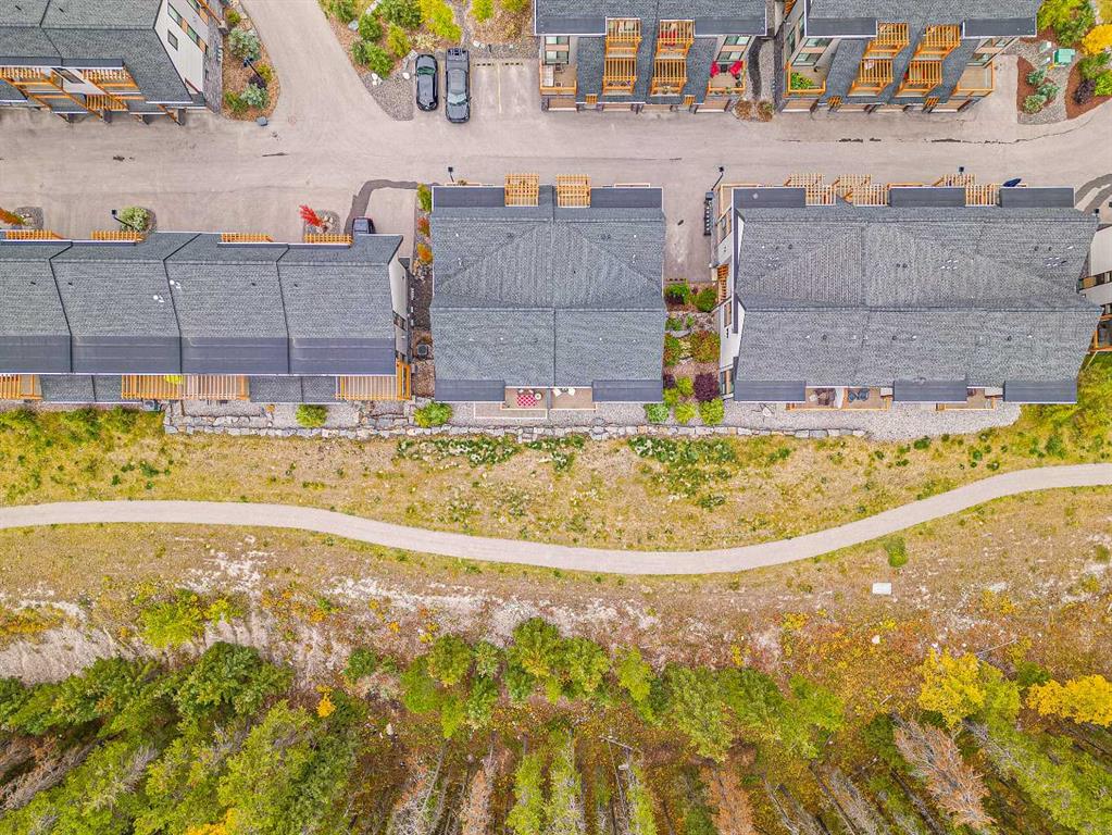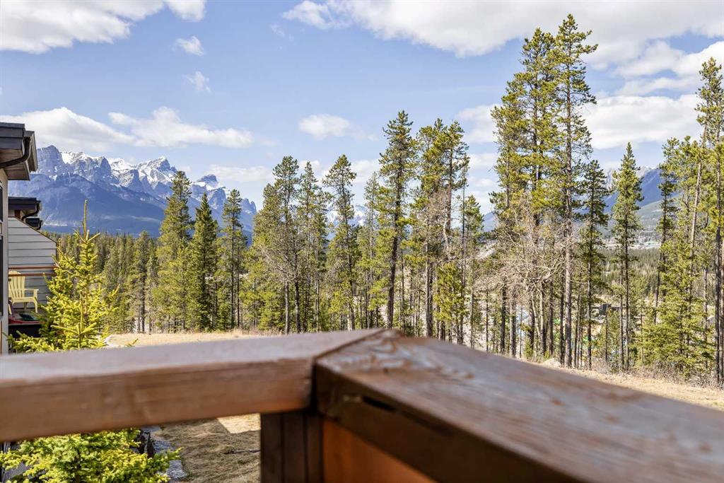 Welcome to this exclusive end-unit townhome nestled within the prestigious Three Sisters Mountain Village — a serene retreat that balances upscale design with a warm, inviting comfort. Boasting over 1,100 square feet of thoughtfully designed living space, this home delivers an effortless blend of natural beauty and modern luxury. Step inside to discover two private bedrooms, each enhanced with its own spa-like ensuite. The primary corner suite is a true sanctuary: expansive, floor-to-ceiling windows frame breathtaking mountain vistas, while a sophisticated 3-piece ensuite and a generous walk-in closet elevate the experience. The second bedroom offers its own private patio overlooking a lush, forested setting and sweeping mountain views—a peaceful escape enhanced by a stylish 4-piece ensuite and ample storage in its walk-in closet. The heart of this home is the open-concept kitchen and living area, where upgraded stainless steel appliances and elegant quartz countertops set the stage for culinary adventures and memorable gatherings. The kitchen seamlessly integrates with the living space, enhanced by hardwood flooring throughout the main floor and the warmth of a tile-surrounded fireplace that invites cozy evenings by the glow of dancing flames. A unique feature of this townhome is its dual outdoor retreats. The sunken patio off the dining area overlooks a quiet green space, presenting a perfect setting for alfresco dining or unwinding with incredible mountain views. A second private patio off the second bedroom provides an inviting space to savour the fresh mountain air and watch nature’s colours shift throughout the day. Additional amenities include a convenient laundry space with stacked washer and dryer, a single- car garage, and access to a community rich in pathways, hiking trails, and parks. Positioned close to world-class golf courses, ski hills, local schools, and the soon-to-be-open Gateway shopping district, this home offers not only luxurious living but also an enviable location that caters to an active, yet relaxed lifestyle. Discover a home that embodies both upscale elegance and serene comfort—a perfect haven for those who value quality, style, and a connection to nature.