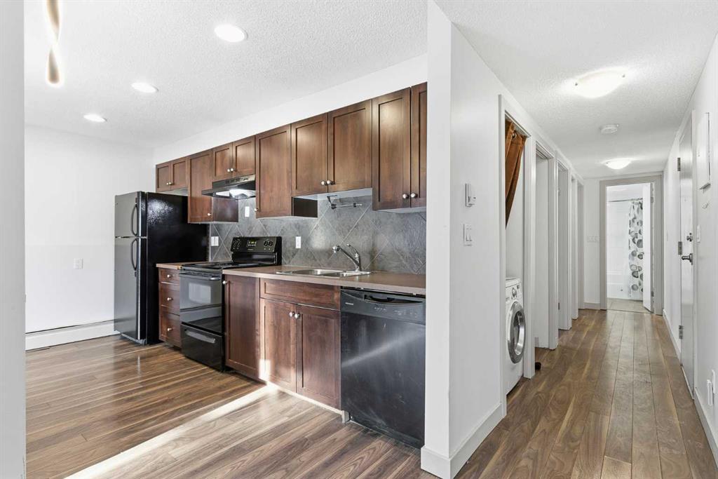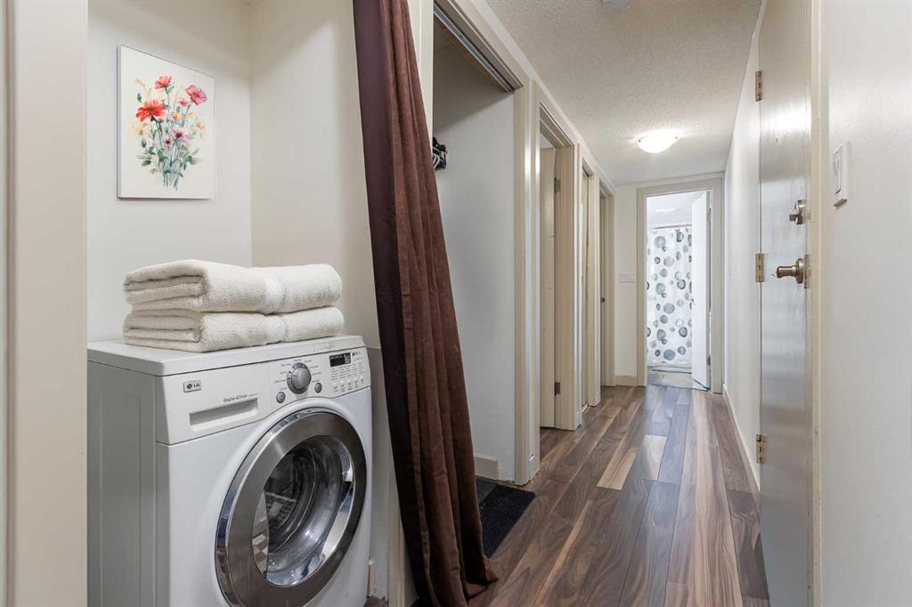 This bright and beautifully updated 2-bedroom condo offers the perfect blend of comfort, convenience, and location. Enjoy a sunny south-facing patio that’s fully surrounded by a lush, mature hedge—creating your own private outdoor retreat right in the city. As an end unit, this home is filled with natural light from extra windows and offers a greater sense of privacy with fewer shared walls. Inside, you’ll love the open-concept layout with laminate flooring throughout, a spacious living area, and a kitchen made for entertaining with a large island that seats up to four. The espresso cabinetry, stainless steel appliances, and upgraded lighting bring a modern touch to the space. Both bedrooms are generously sized, each with double closets, and the bathroom features a deep soaker tub, tiled surround, and updated finishes. Enjoy the convenience of in-suite laundry with a combo washer/dryer and your own assigned parking stall just steps from the back door. Located in one of Calgary’s most walkable neighborhoods — you’re just minutes to 17th Avenue’s shops, cafés, and restaurants, the Sunalta LRT, and have quick access to downtown. Whether you’re a first-time buyer, investor, or looking to simplify your lifestyle, this Sunalta gem checks all the boxes.