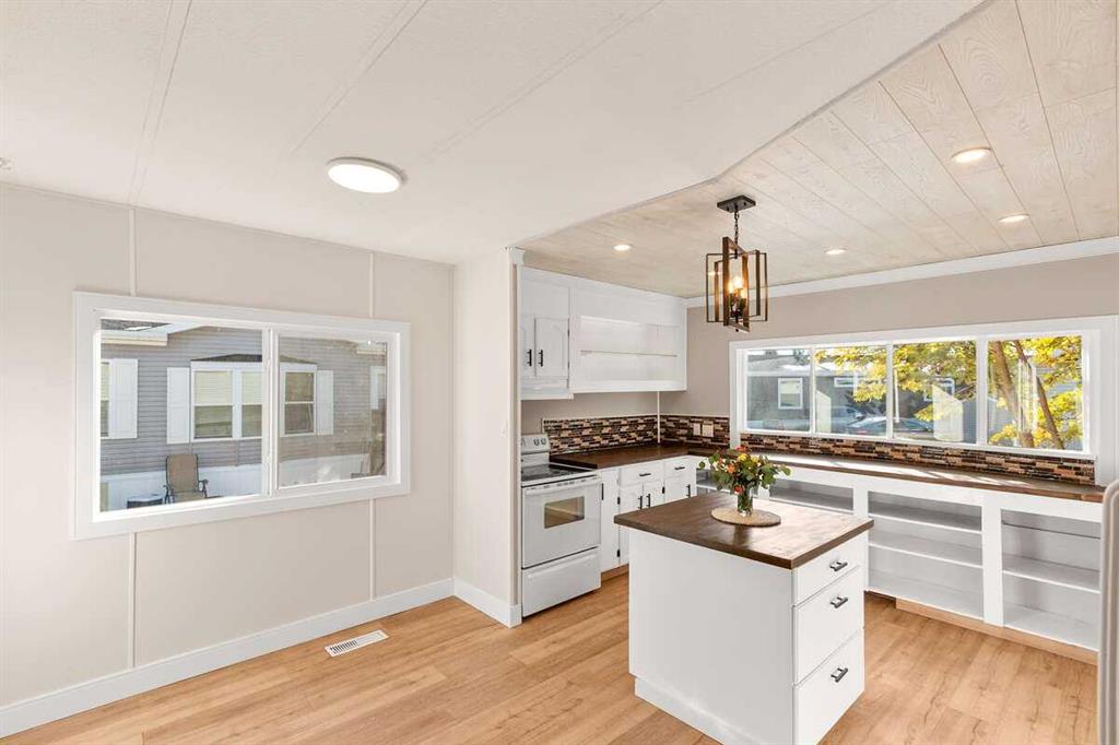 For more information, please click the "More Information" button. Move-in ready! This fully updated 3-bedroom, 1-bathroom single-wide mobile sits on a large corner lot in the quiet, friendly Aloha Park community and delivers modern comfort with a long list of upgrades. Recent improvements include a new roof, windows, flooring, and fresh paint throughout; butcher-block counters; updated light fixtures; a high-efficiency furnace; a new hot water tank; beautiful tile in the bathroom; privacy/security fencing; a lovely garden space with built-in planter boxes and a raised garden bed; plus a 10' x 18' storage shed. The bright, welcoming entry addition features a large bedroom. Inside, the living and dining areas offer an open-concept layout—perfect for relaxing or entertaining by the fireplace. The kitchen sits at the front of the home with abundant natural light, great storage, and ample counter space. Down the hall you’ll find a spacious bedroom, the bathroom with in-suite laundry, and at the back, the private primary bedroom. Outdoors, the fenced yard feels like your own retreat. The garden bursts with color in spring and summer and offers quiet beauty through the cooler months. Enjoy morning coffee under the shaded tree, or spend weekends tinkering in the shed on projects. Don’t wait!
