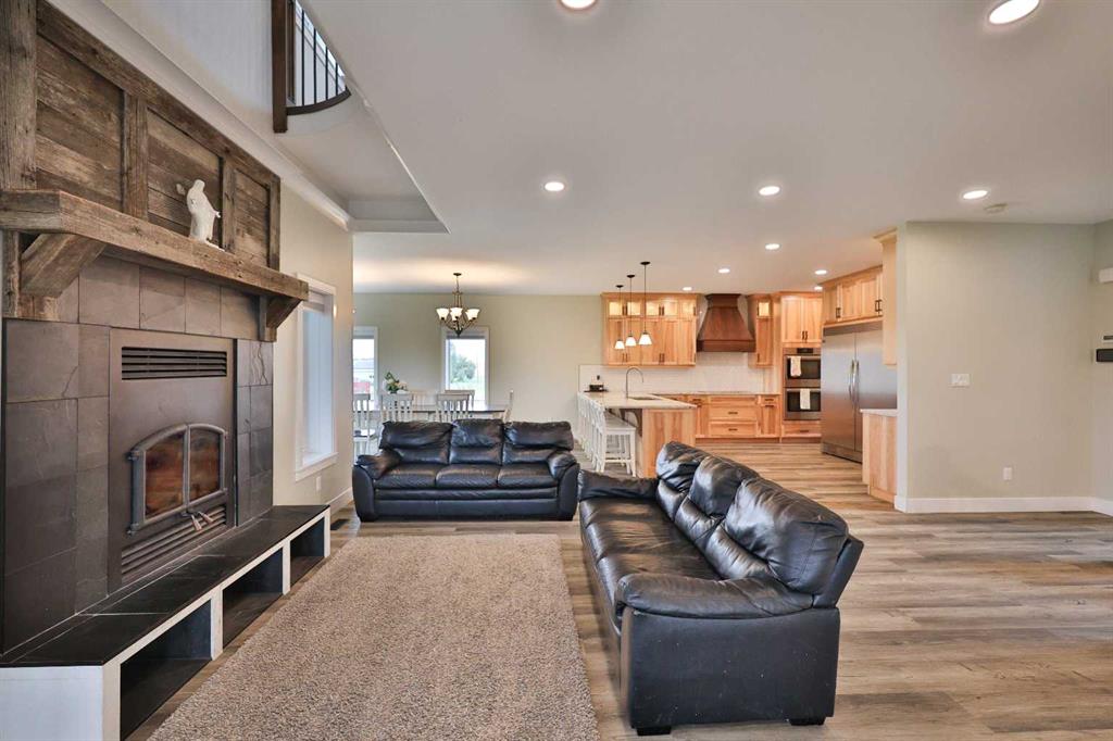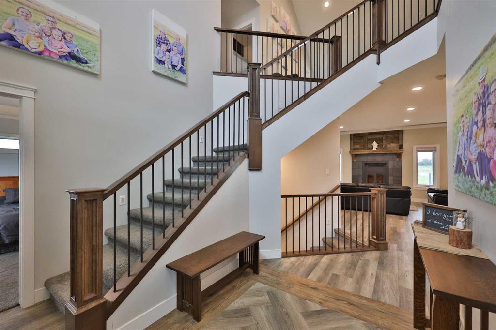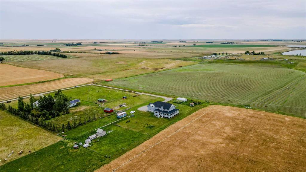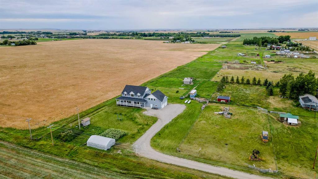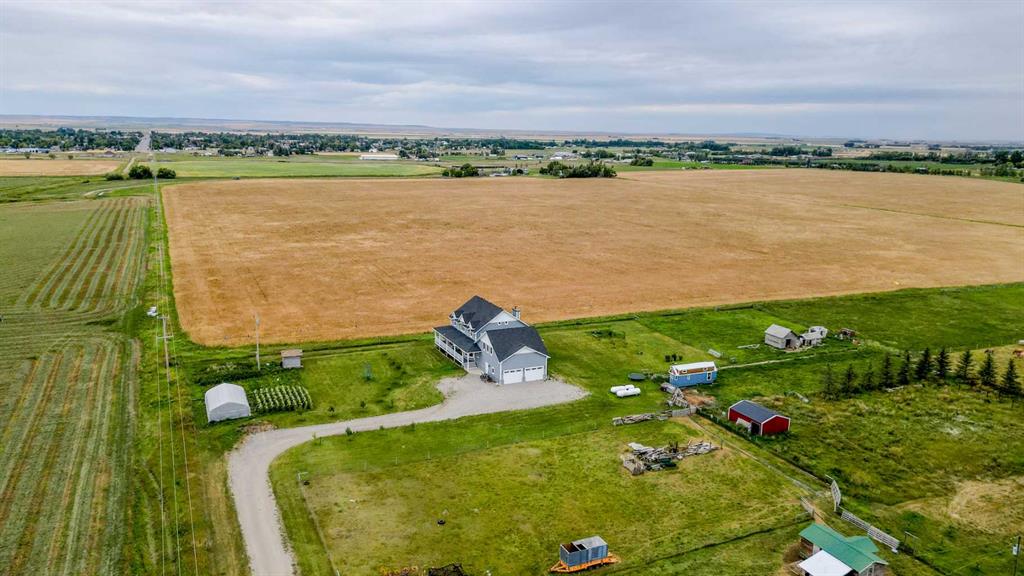 Welcome to a truly one-of-a-kind, acreage where modern meets country. This ICF home is a custom-designed fortress of efficiency, comfort, and self-sufficiency, featuring nearly 5,000 sq ft of living space in the main area and an additional 750 sq ft above the garage. Offset your mortgage expense by $16,000 each year with income from the already rented suite above the garage! Perfectly situated at the end of a quiet, dead-end road just a 5-minute drive to Raymond and 15 minutes to Lethbridge. Be greeted by a grand, 2 storey front entrance with a beautiful staircase and a view of the soaring 13.5’ ceilings in the upper floor library. This home is designed to for a large family, guests, and working from home, boasting 6 bedrooms, 2 offices, and 4.5 bathrooms in the main area. The space above the garage adds 2 more bedrooms, a comfortable ensuite bathroom, and more kitchen and living space. Enjoy a main floor primary bedroom close to the expansive kitchen, featuring a double oven, large double fridge/freezer, large pantry, ample cabinet space, and an oversized peninsula. Large triple pane windows throughout let in plenty of natural sunlight. The wood burning fireplace provides coziness and enough radiant heat to keep the entire house comfortable while providing substantial savings on propane. Enjoy the warm, radiant heat of the high-efficiency boiler system, featuring in-floor heating in the basement and garage. The home has 2 furnaces and is set up with a 3 zone AC for customized climate control. Never worry about a power outage with the Generac backup generator, sized to automatically power the entire house. The interior showcases granite and quartz countertops with custom built hickory cabinetry throughout focused on functionality and luxury. The massive mudroom is an organizational dream. Laundry is simplified with 4 laundry chutes directly from the upstairs to the main floor, complete with hookups for 2 washers and 2 dryers. A central dehumidifier system efficiently manages air quality in the laundry, bathrooms, and kitchen. The 4 large upstairs bedrooms each feature lofts and an additional study loft overlooks the library and front entrance. The massive basement family room is perfect for entertaining and kids play. Besides ample basement storage (including cold storage) there’s a large guest bedroom with an attached bathroom. This property is set up for those who value outdoor living and gardening. For irrigation and animals, it benefits from an acreage irrigation agreement with Raymond Irrigation District for pressurized raw water usage. A Stock Boss watering system and 2 yard hydrants are perfectly situated for conveniently watering animals. Relax or entertain on the wrap-around deck, offering multiple vantage points to enjoy your quiet, private surroundings. This is a rare opportunity to own a bespoke, high-efficiency home of this magnitude, designed for a superior quality of life and exceptional versatility. Are you ready to step into your dream acreage?