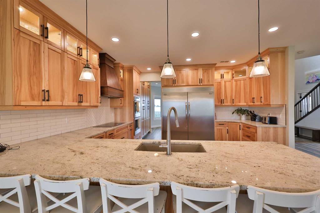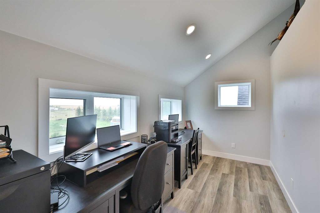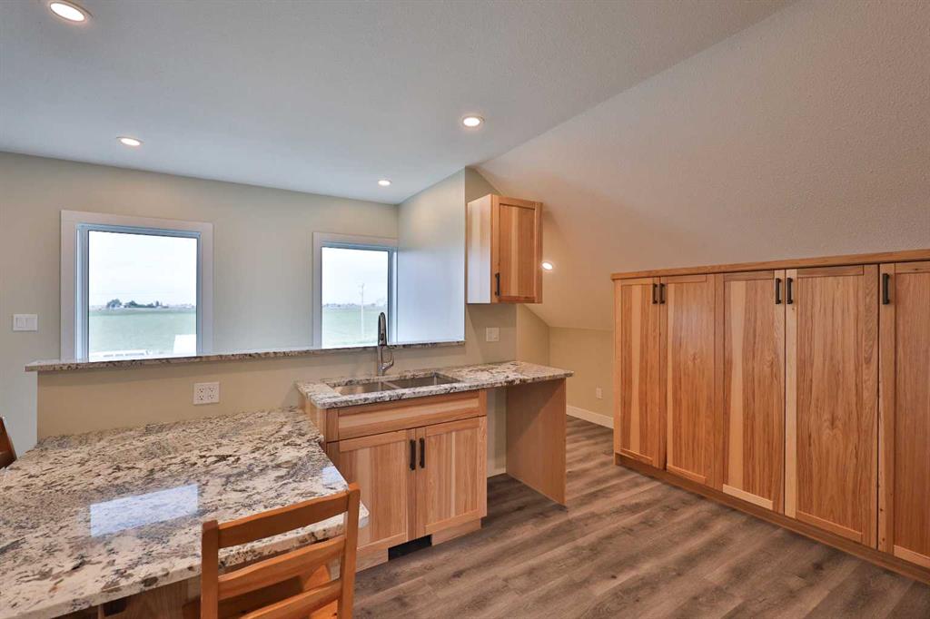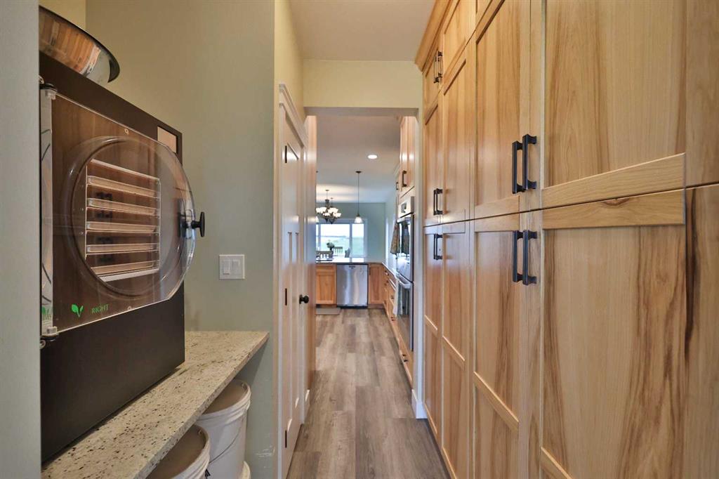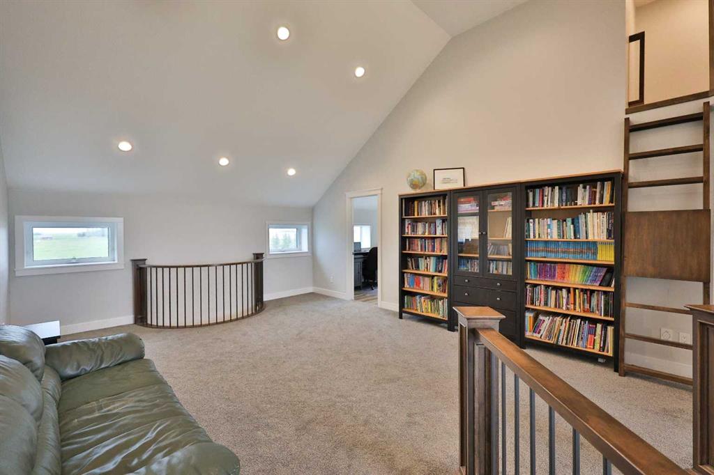 Welcome to a truly one-of-a-kind, acreage where modern meets country. This ICF home is a custom-designed fortress of efficiency, comfort, and self-sufficiency, featuring nearly 5,000 sq ft of living space in the main area and an additional 750 sq ft above the garage. Offset your mortgage expense by $16,000 each year with income from the already rented suite above the garage! Perfectly situated at the end of a quiet, dead-end road just a 5-minute drive to Raymond and 15 minutes to Lethbridge. Be greeted by a grand, 2 storey front entrance with a beautiful staircase and a view of the soaring 13.5’ ceilings in the upper floor library. This home is designed to for a large family, guests, and working from home, boasting 6 bedrooms, 2 offices, and 4.5 bathrooms in the main area. The space above the garage adds 2 more bedrooms, a comfortable ensuite bathroom, and more kitchen and living space. Enjoy a main floor primary bedroom close to the expansive kitchen, featuring a double oven, large double fridge/freezer, large pantry, ample cabinet space, and an oversized peninsula. Large triple pane windows throughout let in plenty of natural sunlight. The wood burning fireplace provides coziness and enough radiant heat to keep the entire house comfortable while providing substantial savings on propane. Enjoy the warm, radiant heat of the high-efficiency boiler system, featuring in-floor heating in the basement and garage. The home has 2 furnaces and is set up with a 3 zone AC for customized climate control. Never worry about a power outage with the Generac backup generator, sized to automatically power the entire house. The interior showcases granite and quartz countertops with custom built hickory cabinetry throughout focused on functionality and luxury. The massive mudroom is an organizational dream. Laundry is simplified with 4 laundry chutes directly from the upstairs to the main floor, complete with hookups for 2 washers and 2 dryers. A central dehumidifier system efficiently manages air quality in the laundry, bathrooms, and kitchen. The 4 large upstairs bedrooms each feature lofts and an additional study loft overlooks the library and front entrance. The massive basement family room is perfect for entertaining and kids play. Besides ample basement storage (including cold storage) there’s a large guest bedroom with an attached bathroom. This property is set up for those who value outdoor living and gardening. For irrigation and animals, it benefits from an acreage irrigation agreement with Raymond Irrigation District for pressurized raw water usage. A Stock Boss watering system and 2 yard hydrants are perfectly situated for conveniently watering animals. Relax or entertain on the wrap-around deck, offering multiple vantage points to enjoy your quiet, private surroundings. This is a rare opportunity to own a bespoke, high-efficiency home of this magnitude, designed for a superior quality of life and exceptional versatility. Are you ready to step into your dream acreage?