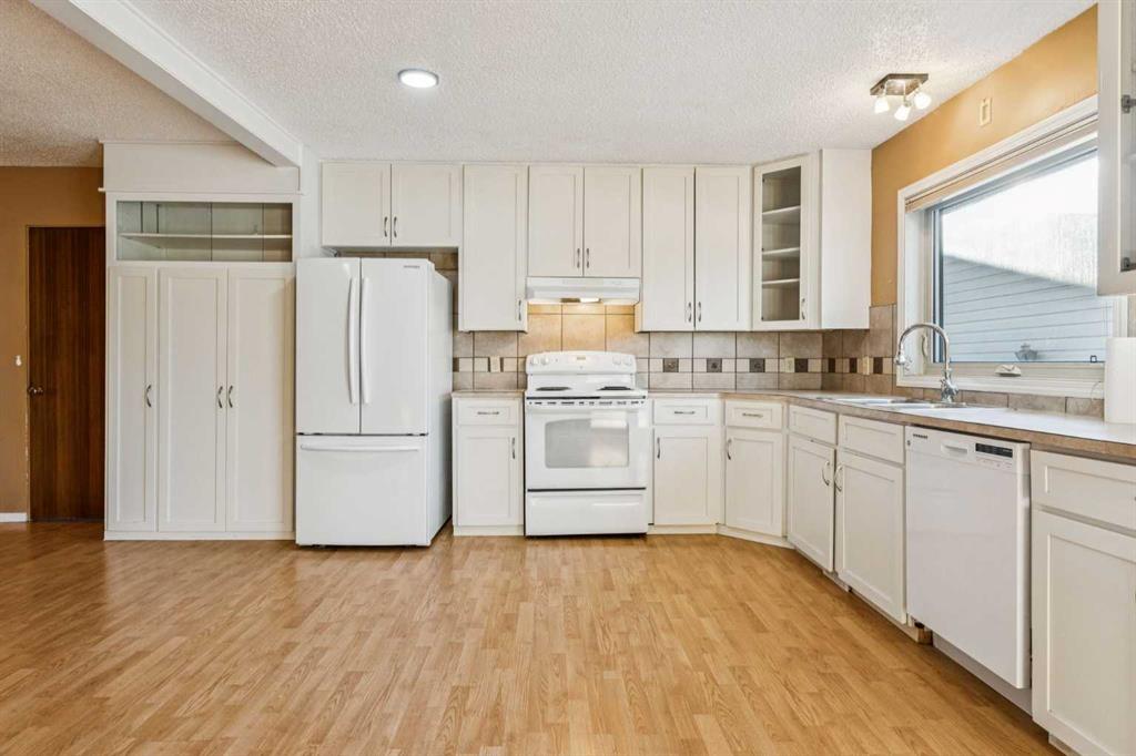 Discover this spacious 1,323 sq ft bungalow, perfectly situated on a quiet street in the desirable Westgate community. Boasting 5 bedrooms—3 on the main floor and 2 in the basement—this home offers ample space for families, professionals, or those seeking room to grow. The main floor features gleaming hardwood flooring throughout the living room, hallway, and three bedrooms, creating a warm and inviting atmosphere. Significant updates enhance the home’s appeal, including new acrylic stucco and windows installed approximately 11 years ago, a newer roof (about 10 years old), and a recently replaced hot water tank. The exterior shines with a new vinyl fence, enclosing a large lot with 65’ of frontage (including 15’ of utility right-of-way) adorned with mature apple trees, perfect for outdoor enjoyment. The oversized 26’ x 24’ double garage, with 9’ ceilings, is insulated and heated, providing ample space for vehicles, storage, or a workshop. The basement is a standout feature, complete with a second kitchen and two additional bedrooms, ideal for extended family, guests, or rental potential (with city approval). A large sunroom adds versatility, offering a bright space for relaxation or entertaining. While the home could benefit from some upgrading, it presents a fantastic opportunity to personalize and add value. Nestled in the heart of Westgate, this property combines a peaceful setting with convenient access to schools, parks, shopping, and transit. Don’t miss the chance to own this well-maintained bungalow with incredible potential—schedule your viewing today!