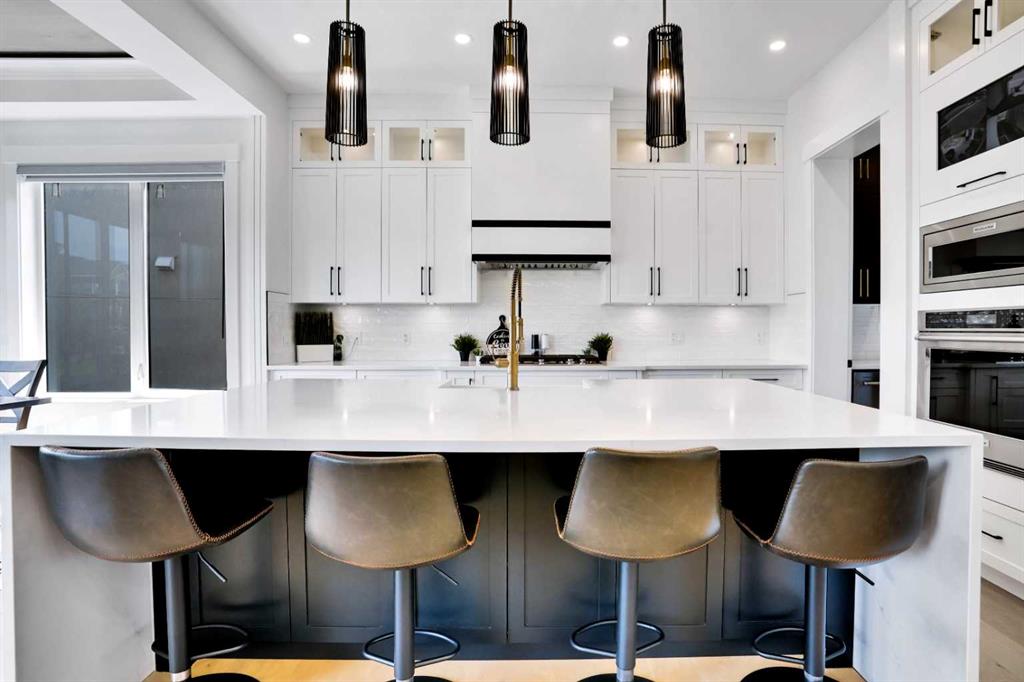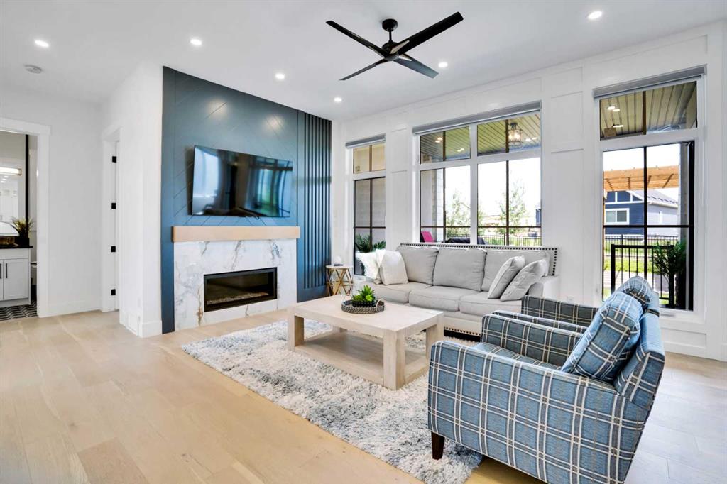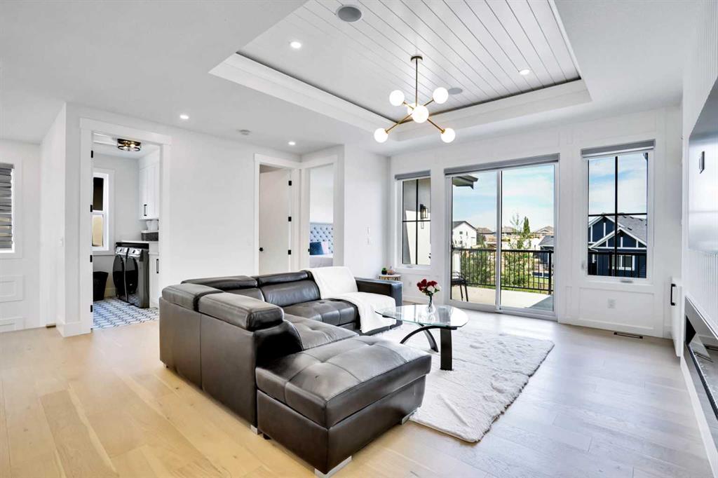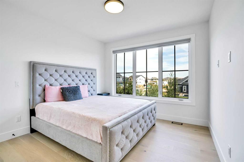 Welcome to Luxury Living in the Desirable Community of Coopers Crossing! This stunning luxury estate home offers over 4,100 square feet of living space in the sought-after community of Coopers Crossing in Airdrie. Upon entering this beautiful home, you'll be greeted by a grand foyer with vaulted ceilings leading to the upper floor. The main floor of the home features 10-foot ceilings and a versatile office space that can be used as a bedroom. A full bathroom is also located on the main floor. The open-concept layout boasts a cozy family room with a gas fireplace and custom feature wall, a formal dining room with coffered ceilings and custom feature walls, and a dream chef's kitchen with a waterfall island and seating area. High-end Kitchen-Aid appliances, built-in oven, gas range, and a large built-in refrigerator are the highlights of this beautiful kitchen. The kitchen area also features a spice kitchen/pantry with a gas range and refrigerator. The entrance from the triple garage that has epoxy floors leads you to your large mudroom with storage for your coats and shoes. The upper floor features 9-foot ceilings, a large chandelier, and a feature wall leading to 4 bedrooms and 3 full bathrooms, including a primary suite with a large walk-in closet. The upper floor also features a large laundry room with a sink. A spacious bonus room with sliding doors leading to the upper balcony completes the upper floor. The fully finished basement has 9-foot ceilings, a built-in custom wet bar with a sink, microwave, and bar fridge, leading to a rec room with a feature wall wired in for a projector setup and surround sound. An additional bedroom and a 4-piece washroom complete the basement. The exterior is now landscaped and wired with custom gemstone lighting that can be used year-round, security system with cameras, and a large lot backing onto a green space walkway, the garage is also wired for an electric car charger. This home is designed and built with many upgrades, including engineered hardwood, custom railing, tile, feature walls, A/C and built-in closets. You don't want to miss the opportunity to own this dream home. Check our the 3D Tour and Schedule your showing today!