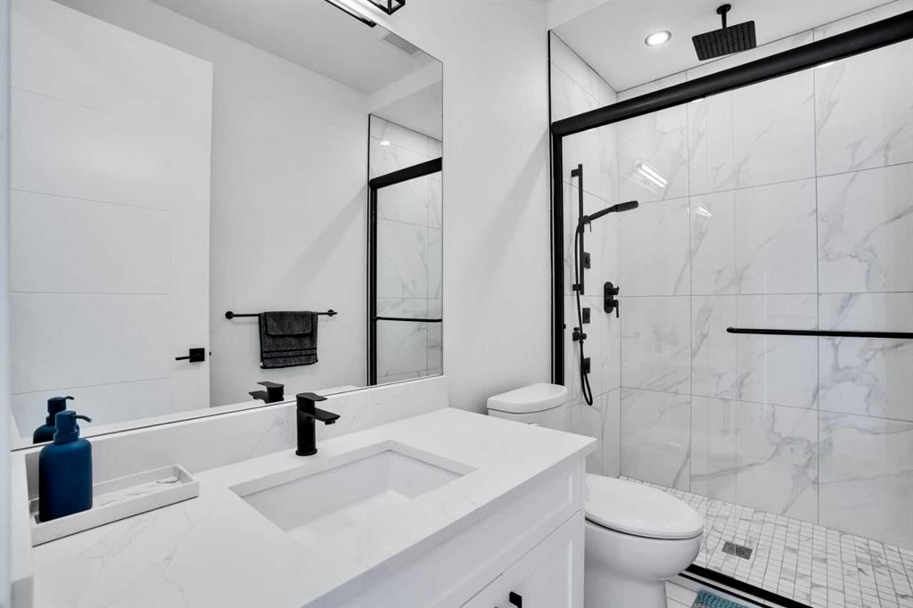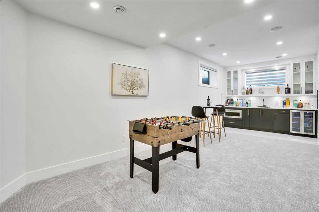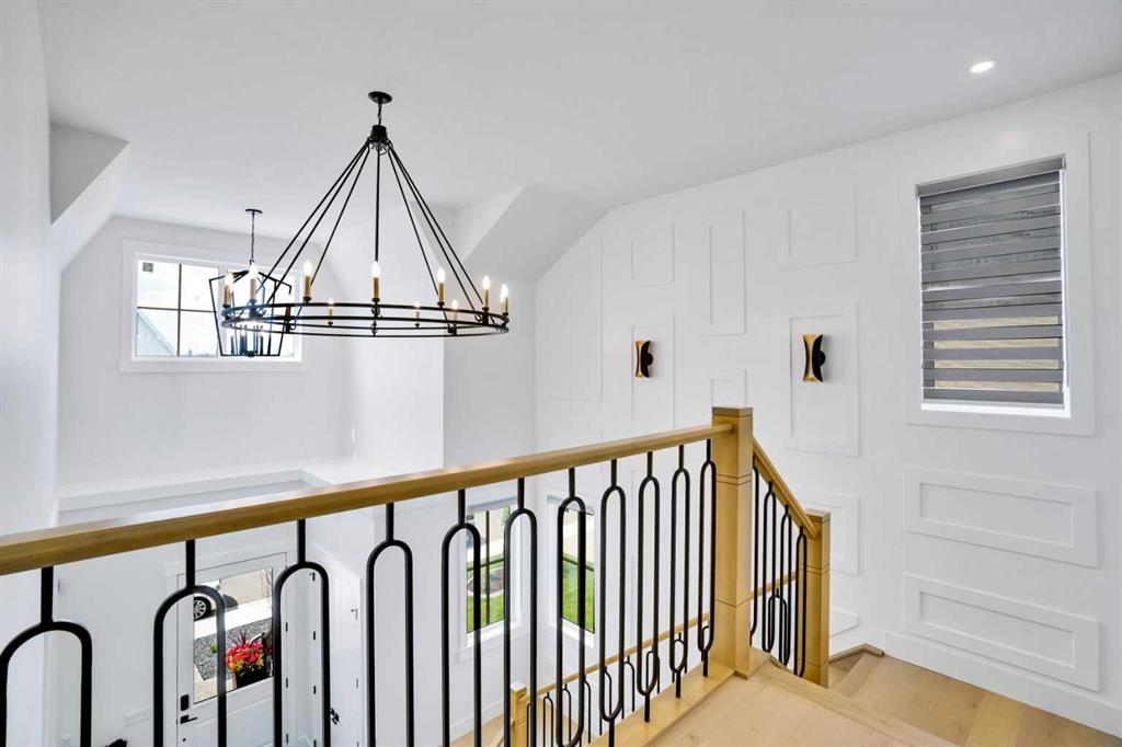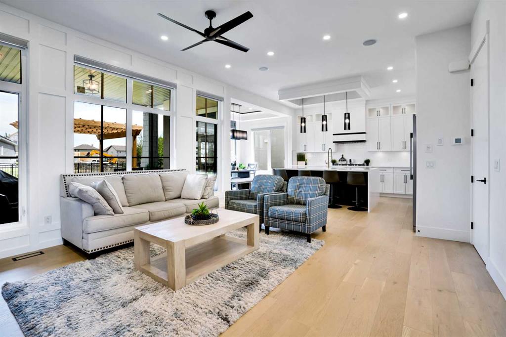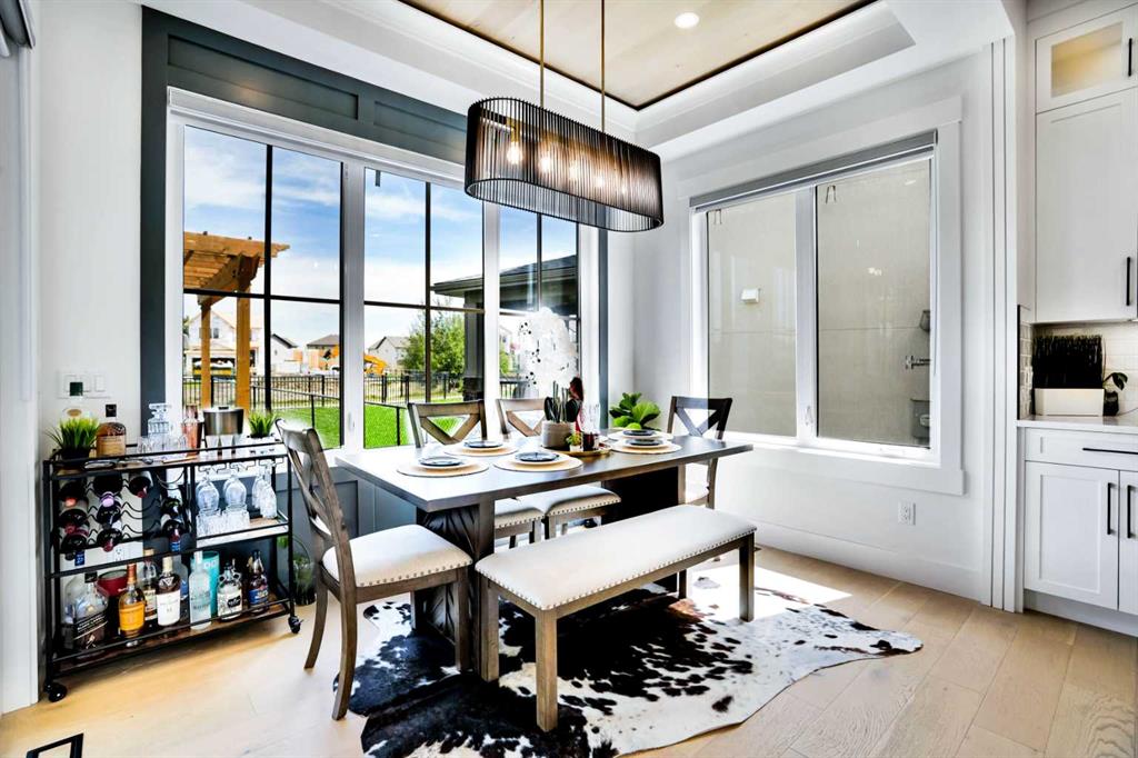 Welcome to Luxury Living in the Desirable Community of Coopers Crossing! This stunning luxury estate home offers over 4,100 square feet of living space in the sought-after community of Coopers Crossing in Airdrie. Upon entering this beautiful home, you'll be greeted by a grand foyer with vaulted ceilings leading to the upper floor. The main floor of the home features 10-foot ceilings and a versatile office space that can be used as a bedroom. A full bathroom is also located on the main floor. The open-concept layout boasts a cozy family room with a gas fireplace and custom feature wall, a formal dining room with coffered ceilings and custom feature walls, and a dream chef's kitchen with a waterfall island and seating area. High-end Kitchen-Aid appliances, built-in oven, gas range, and a large built-in refrigerator are the highlights of this beautiful kitchen. The kitchen area also features a spice kitchen/pantry with a gas range and refrigerator. The entrance from the triple garage that has epoxy floors leads you to your large mudroom with storage for your coats and shoes. The upper floor features 9-foot ceilings, a large chandelier, and a feature wall leading to 4 bedrooms and 3 full bathrooms, including a primary suite with a large walk-in closet. The upper floor also features a large laundry room with a sink. A spacious bonus room with sliding doors leading to the upper balcony completes the upper floor. The fully finished basement has 9-foot ceilings, a built-in custom wet bar with a sink, microwave, and bar fridge, leading to a rec room with a feature wall wired in for a projector setup and surround sound. An additional bedroom and a 4-piece washroom complete the basement. The exterior is now landscaped and wired with custom gemstone lighting that can be used year-round, security system with cameras, and a large lot backing onto a green space walkway, the garage is also wired for an electric car charger. This home is designed and built with many upgrades, including engineered hardwood, custom railing, tile, feature walls, A/C and built-in closets. You don't want to miss the opportunity to own this dream home. Check our the 3D Tour and Schedule your showing today!