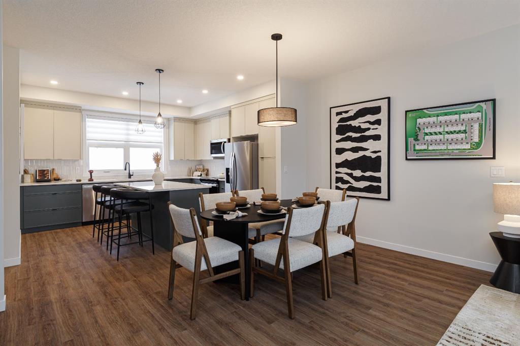 MEET THE JUNIPER **Private showhome available for viewings**Home is more than 4 walls, it’s your comfort zone. The Juniper offers a carefully crafted and thoughtfully designed living space designed for comfort and convenience. Featuring 2 bedrooms, 2.5 bathrooms, and an drive-under garage with abundant storage built to fit your lifestyle. Enjoy the elegance of quartz countertops, the ease of second-floor laundry, and the bonus of a private balcony with extra storage. Because when home is everything, it should have everything. Chose from our designer mood boards and bring your own unit to life with a selection of standard and upgraded finishes. Living in Sirocco means more than just owning a stylish, functional, move-in ready townhome—it’s about being connected to everything you love. Enjoy unbeatable access to major routes like Macleod Trail, making commuting or weekend getaways effortless. Shopping, dining, and services in Shawnessy, Walden, and Legacy are just minutes away, while golf enthusiasts will appreciate the nearby Sirocco Golf Club and other semi-private courses. Equestrian fans are also just a short drive from world-renowned Spruce Meadows. Right outside your door, the community itself offers parks, pathways, playgrounds, and a scenic central pond—perfect for unwinding close to home. Whether you’re looking to shop, golf, explore, or simply relax, Sirocco combines everyday convenience with a welcoming, amenity-rich lifestyle. **PRE-CONSTRUCTION STAGE -ALL images used in this listing are a combination of virtual renderings and photographs taken of a similar completed unit in another Morrison project with Cypress plan model with Mist finishings**
