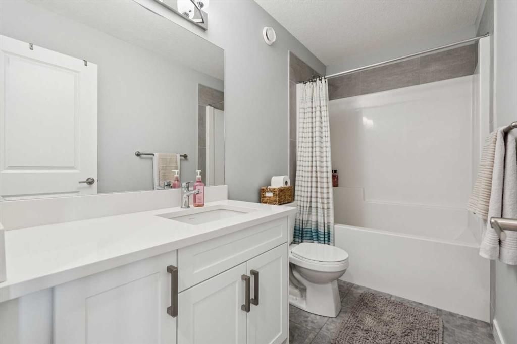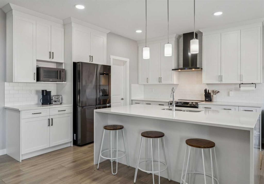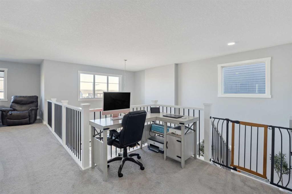 Welcome to this beautifully designed two-storey home in the desirable community of Cobblestone Creek—where style, function, and thoughtful design come together. Step inside to an inviting OPEN-CONCEPT main floor featuring a chef-inspired kitchen that is a showstopper with WATERFALL QUARTZ COUNTERTOPS on the ISLAND with a BREAKFAST BAR, an INDUCTION RANGE, sleek hood fan, BUILT-IN MICROWAVE, and a WALK-THROUGH PANTRY connecting seamlessly to the mudroom. The mudroom offers a BUILT-IN BENCH and convenient access to the TRIPLE ATTACHED GARAGE, complete with an EV CHARGER, SIDE ENTRANCE, and a handy BIN STORAGE SYSTEM. The living room impresses with soaring OPEN-TO-BELOW CEILINGS, an OPEN RAILING, and an ELECTRIC FIREPLACE with a MANTLE, creating a stunning focal point for family gatherings. A dedicated OFFICE on the main floor, is perfect for remote work or homework space. Upstairs, you’ll find a bright BONUS ROOM accented with BOARD and BATTEN detailing, along with two spacious kids’ bedrooms featuring the same custom touch. All bathrooms showcase QUARTZ COUNTERTOPS, adding a touch of luxury throughout. The laundry room is conveniently located upstairs. The primary bedroom is a serene retreat with a 5-piece ENSUITE featuring DOUBLE SINKS, a SOAKING TUB and a STAND ALONE SHOWER. The WALK-IN CLOSET that offers TWO-TIERED SHELVING and a WINDOW for natural light—a rare and thoughtful upgrade. The UNFINISHED BASEMENT includes a BATHROOM ROUGH-IN, ready for your future development. Outside, enjoy the TWO-TIER COMPOSITE DECK, PARTIALLY COVERED for all-weather entertaining, overlooking TWO-TIERED LANDSCAPING with ARTIFICIAL TURF and a PAVED PATHWAY and GREEN SPACE behind—offering privacy and easy outdoor living. This home blends modern comfort, designer details, and practical upgrades in one of Airdrie’s fastest-growing communities.