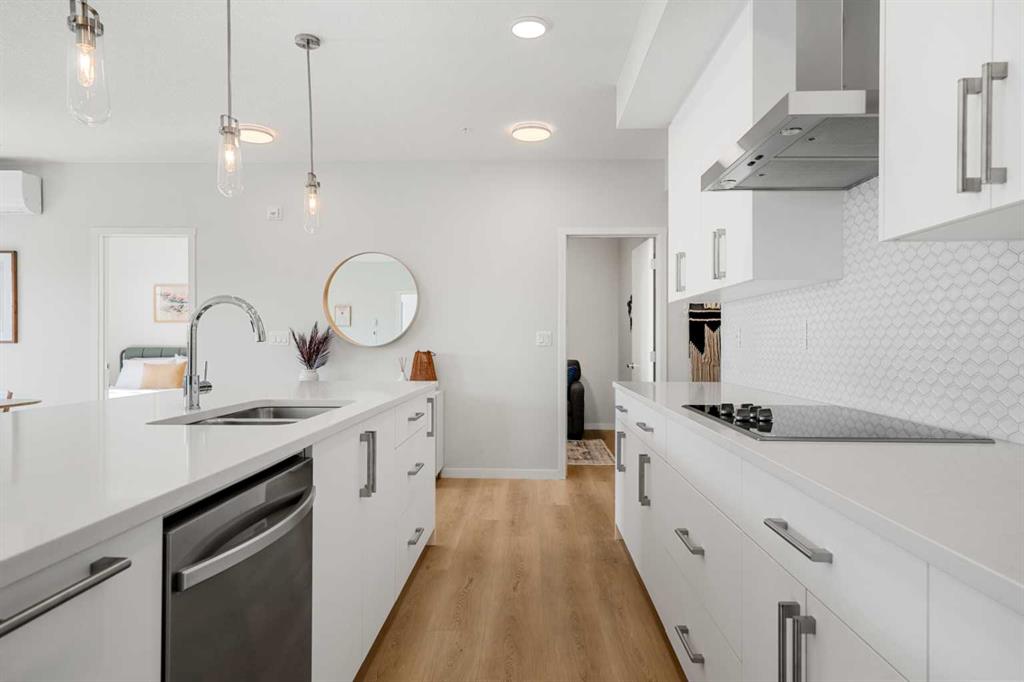 Welcome to Belmont Plaza by Cedarglen Living, where modern design meets comfort and quality. This beautifully upgraded 3-bedroom, 2-bathroom main floor condo offers over $40,000 in premium upgrades and a bright, open-concept layout perfect for contemporary living. Step inside to discover a gourmet kitchen featuring a full-height tile backsplash, soft-close drawers, pot and pan storage, a recycle center, upgraded stainless steel appliances, and elegant stone countertops. The inviting living and dining area flows seamlessly onto your south-facing deck, ideal for morning coffee or evening relaxation. Stylish finishes include luxury vinyl plank flooring throughout, modern lighting, and 9-foot ceilings that enhance the sense of space and light. The spacious primary bedroom features a large ensuite and a convenient walk-in closet. Two additional well-sized bedrooms offer flexibility for guests or a home office, along with a second full 4-piece bathroom. This thoughtfully designed home also includes air conditioning, enhanced sound dampening, and roller blinds throughout. Enjoy the convenience of in-suite laundry, a titled underground parking stall, and a titled storage locker. Belmont Plaza offers beautifully landscaped grounds, walking paths, a community garden, bike storage, and ample guest parking. Located close to shopping, restaurants, quick access to Hwy 2A, and transit, this home provides the perfect balance of quiet living and urban convenience in Calgary’s desirable SW. Rental, Pet & Short Term (Air BNB) Friendly with approvals/fees. Quick possession available.