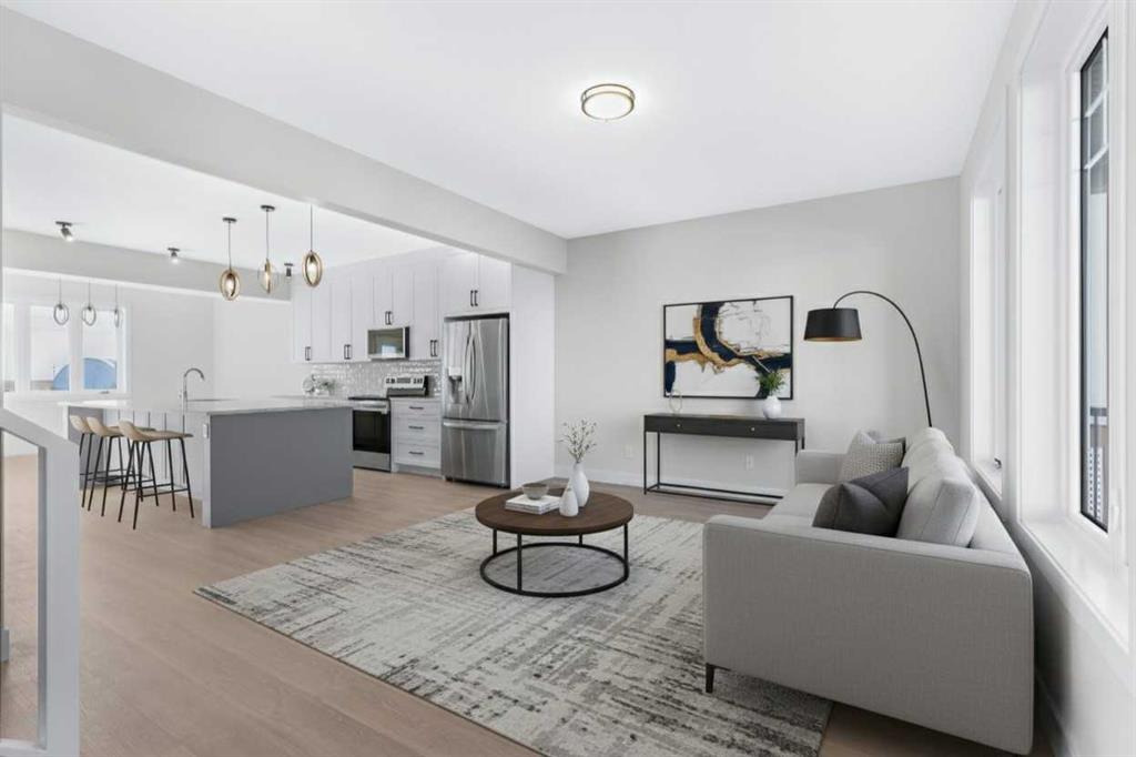 Quality new construction home built by a local Master Builder in Crossfield, who has lived in the community for 30+ years! Situated on what is arguably the best lot in this new development, this West facing end unit provides additional parking options and overlooks the baseball diamond and adjacent green space. Additionally, this location offers walking distance two schools, the local Community Centre and just minutes from the quaint downtown offering a multitude of amenities. This 3 bedroom, 3 bathroom semi-detached home spans over 1500 sq ft and features an open main floor layout. The Kitchen boasts abundant cabinetry, high-end appliances, and a beautiful, functional center island, ideal for extra counter space, homework, and entertaining guests. A patio door off the dining area leads directly to the deck and back yard, uncommonly found in this price point. This home has back lane access and a parking pad, a garage could still be added at an additional cost. Upstairs, the Primary Bedroom includes a walk-in closet and full ensuite bathroom. The two additional bedrooms are generously sized with convenient access to the centrally located main bathroom. Laundry is also conveniently located on this upper floor. Additionally, the home features side door access for private entry to the unfinished basement, allowing for additional future living space and includes bathroom rough-in. What sets this home apart is its construction by a Local Master Builder, employing Journeyman Tradesmen in all aspects of the build. These builders, along with their families, have been part of this community for multiple generations and take pride in constructing quality homes for local families. No expense has been spared in the use of upgraded materials during both the building process and the finishing touches. Features include Lux windows, stone countertops, upgraded plumbing fixtures and lighting fixtures, as well as higher-end appliances which includes the washer and dryer, also not a common inclusion. This home is currently under construction. There is still some opportunity for custom upgrades, if you act fast! The area size was calculated by applying the RMS to the blueprints provided by the builder.