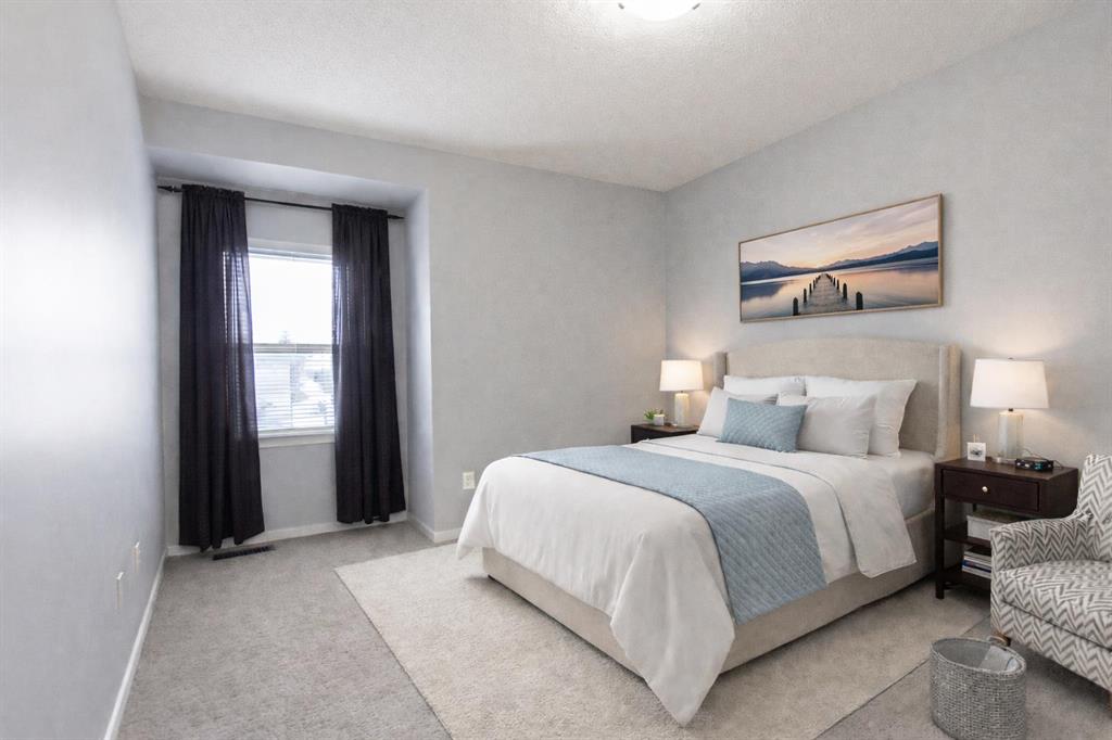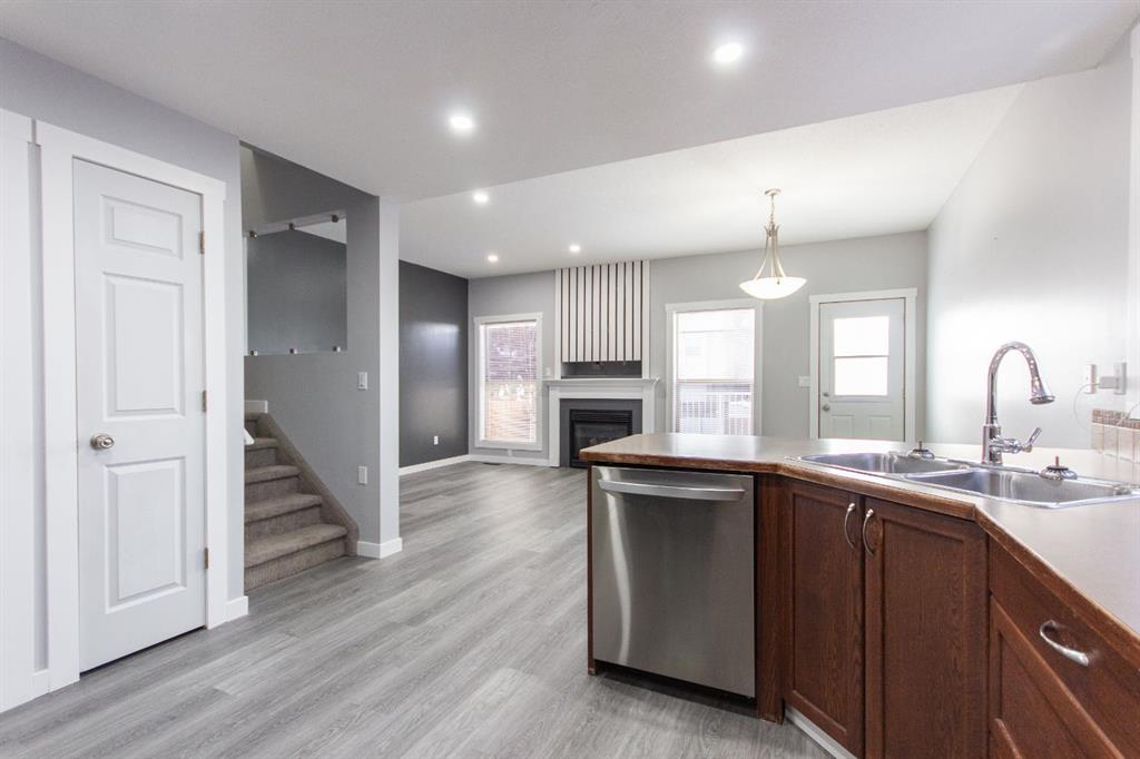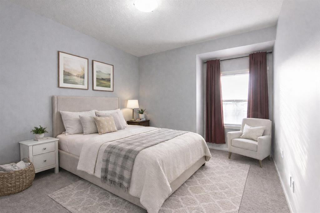No condo fees! This beautiful end-unit townhouse is tucked away in one of Red Deer’s most sought-after neighborhoods, Aspen Ridge. Perfectly positioned across from a park and just moments from restaurants, shopping, and every amenity you could need, this home offers the perfect balance of comfort, style, and convenience. Step inside to a bright and inviting main floor featuring new vinyl flooring, modern paint, and an open-concept design that feels spacious and welcoming. The kitchen showcases rich dark cabinetry, black appliances, and plenty of counter space. It flows seamlessly into the dining and living areas, where large windows fill the home with natural light and create a warm, airy atmosphere. Upstairs, you’ll find two generous bedrooms, each with space for a king or queen bed. The primary suite feels like a retreat, offering a large walk-in closet and a four-piece ensuite complete with a relaxing jet tub. The main bathroom is also a four-piece and the expanded hallway linen closet provides extra storage for everyday convenience. Downstairs, the basement adds even more living space with a flexible area currently set up as a gym, rough-ins for another bathroom, and a soundproofed theatre room featuring an electric fireplace. Whether you’re hosting movie night or cheering on your favorite team, this space was designed for comfort and fun. Outside, enjoy the beautifully landscaped and low-maintenance yard with updated fencing, a concrete patio, and a variety of mature trees and shrubs. It’s the perfect space to unwind or entertain guests.