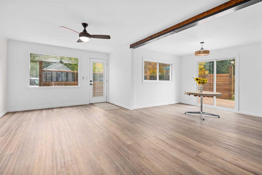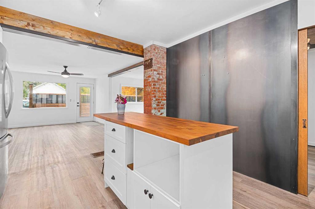 Fully renovated bungalow on a double lot in East Coulee! Keep cozy this winter with brand new R40 insulation installed in the attic of this one bedroom, one bath gem. This house is perfect for those looking for a stylish contemporary home. Remodelled top to bottom, the house is full of custom features. The spacious kitchen boasts walnut countertops, quality stainless steel appliances, original exposed brick chimney and metal feature wall, enhanced by beautiful natural light. You will love the heated floors in the tiled bathroom/ mudroom area, and enjoy the deep soaker tub. The bedroom features a walk in closet, with built in storage and original barn door. The basement provides good dry storage. The outside is as impressive as the inside, with a huge wrap around deck, modern fencing, cosy fire pit and cute shed sitting on a large double lot, with room for rv pull through or garage. If you are thinking of trading city life for the country, the vibrant community of East Coulee in the scenic Drumheller Valley is a quick 1 1/2 hr drive from Calgary, with many recreational opportunities, including hiking, swimming, kayaking and birdwatching. This unique community appeals to creative people, with museums, clay studio, pancake breakfasts, seasonal outdoor cafe and great neighbours-this home really does stand out from the rest!